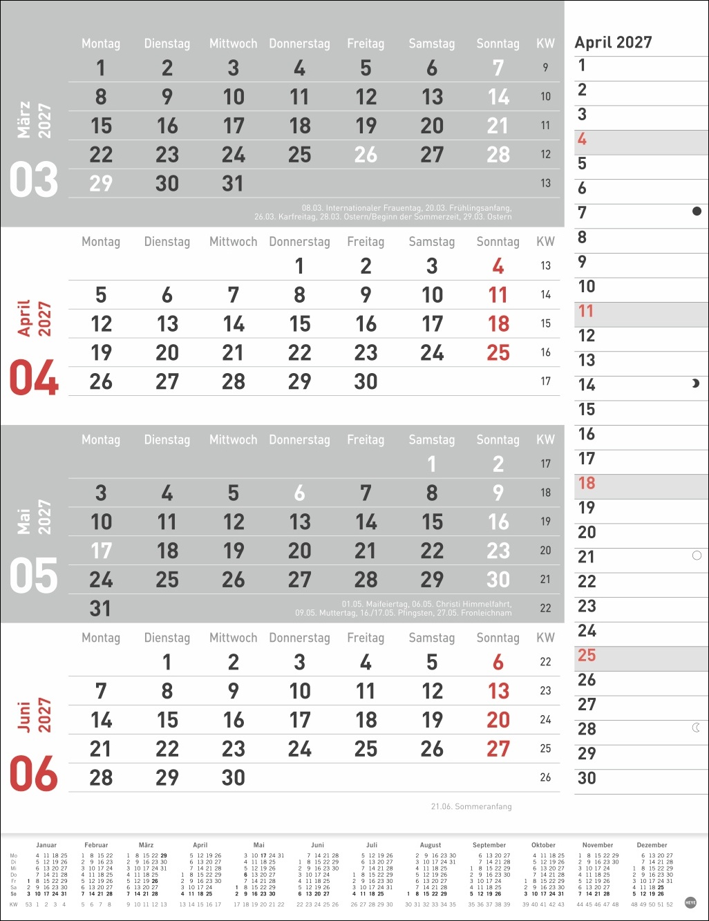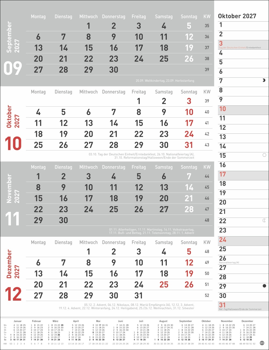 - Alle Deadlines, Meetings und andere Termine im Blick mit diesem Büro-Wandkalender 2027 im Hochformat 30 x 39 cm