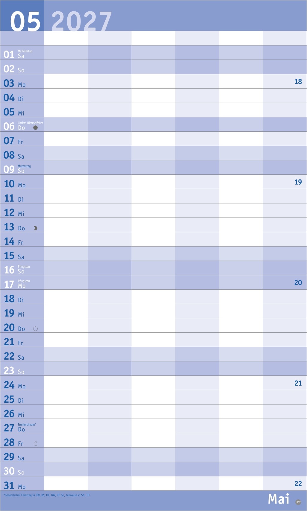 - Farbenfroh, übersichtlich und neutral: Kalender ohne störende Designelemente, der Freiraum für das Wesentliche schafft