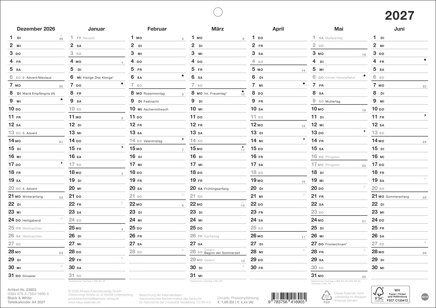 Black&White Tafelkalender A4 2027