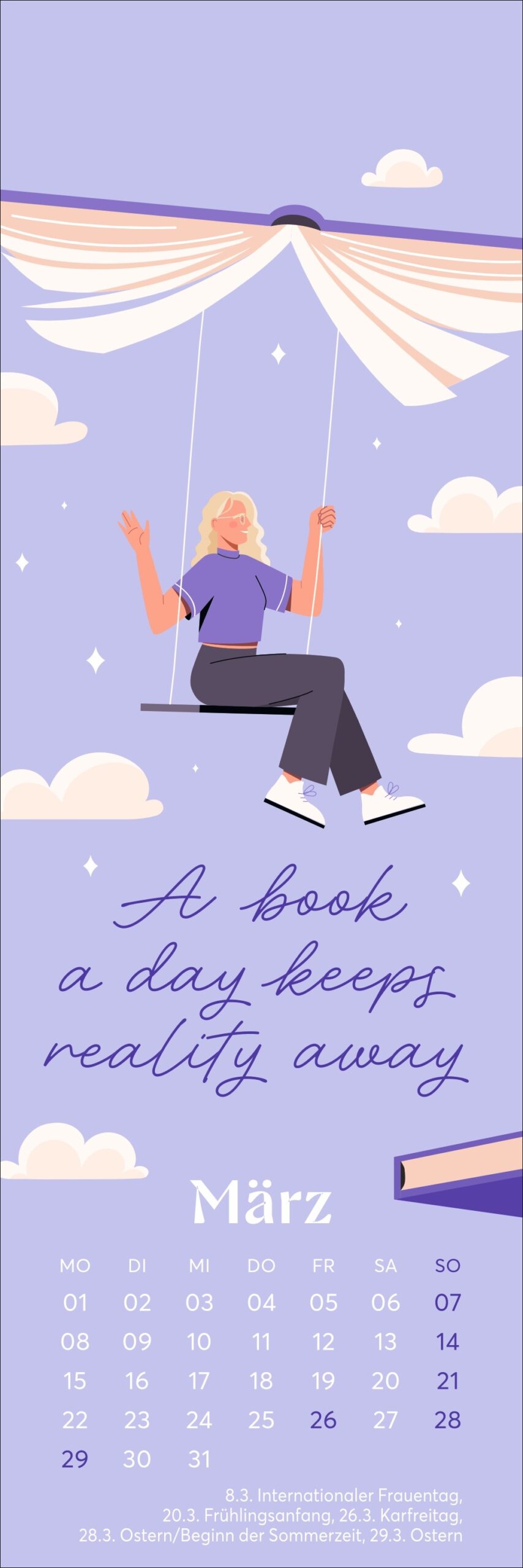 • Die kleine Aufmerksamkeit für zwischendurch: Kalender und Lesezeichen in einem im Format 6 x 18 cm für alle mit SuB, WuLi und Book-Boyfriend