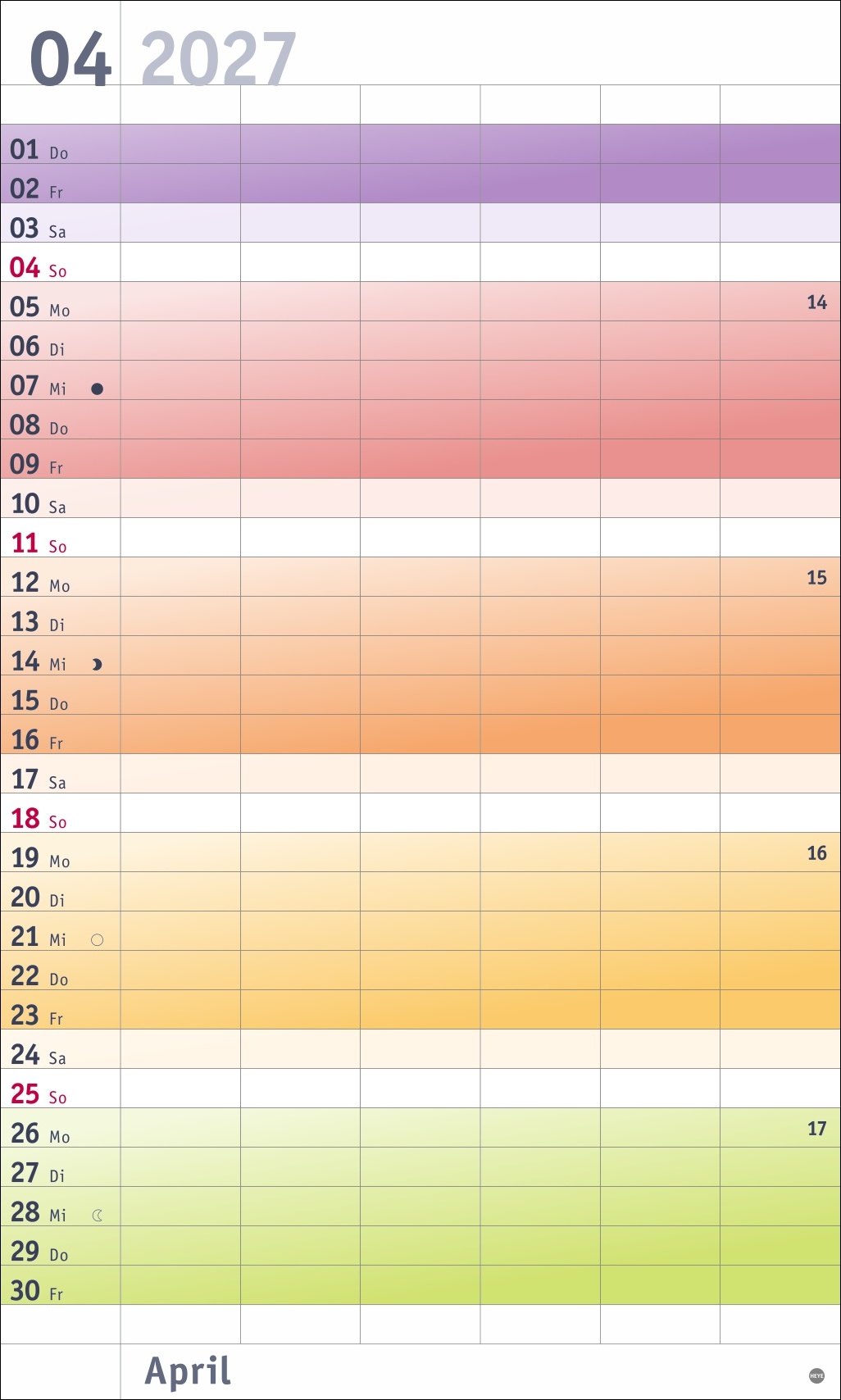 - Bunt wie das Leben in der Großfamilie: Woche für Woche ein neuer Farbakzent, der für besseren Überblick sorgt