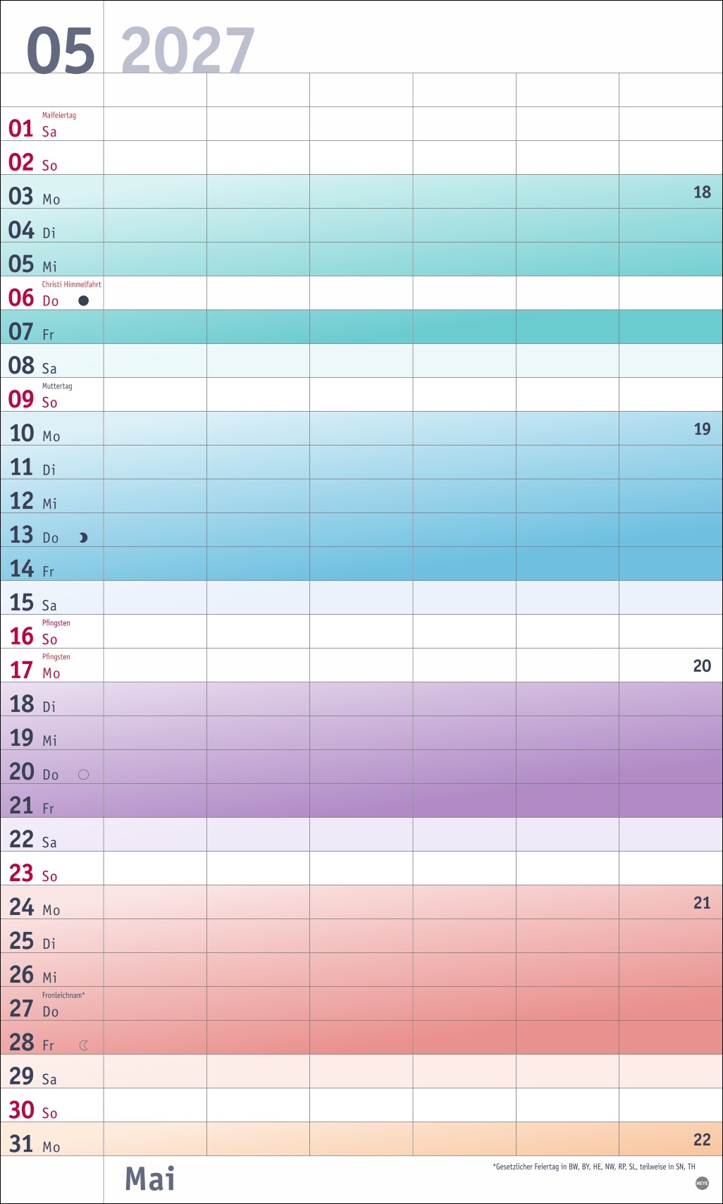 - Farbenfrohes Design, neutrale Gestaltung: Kalender ohne platzraubende Muster im Format 27 x 45 cm, der Freiraum für das Wesentliche schafft