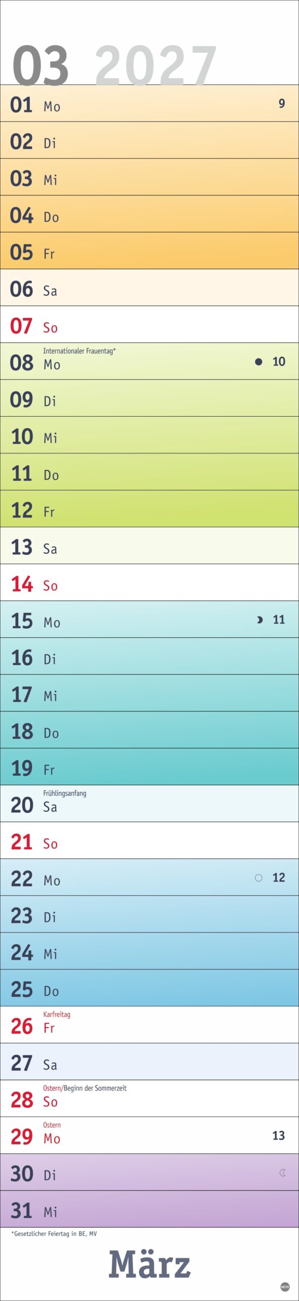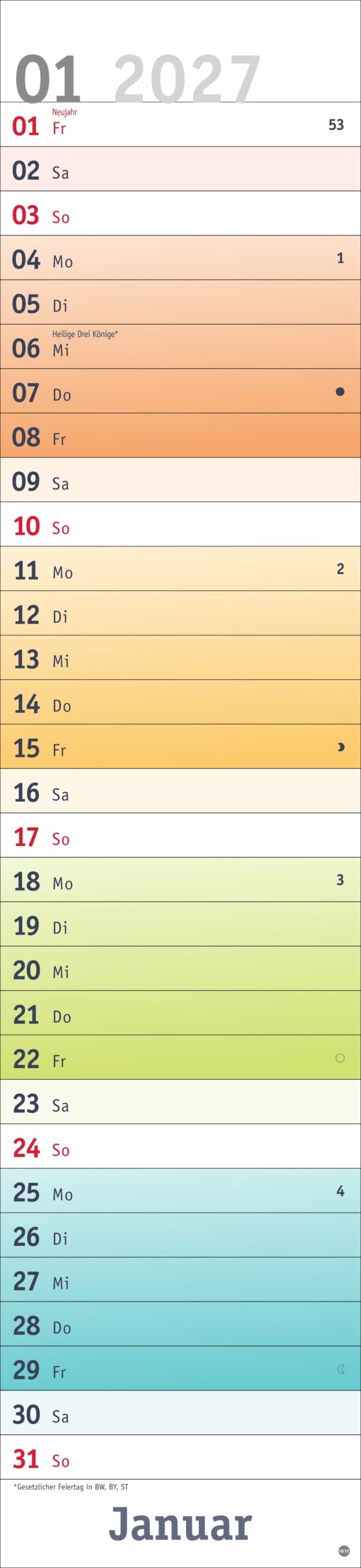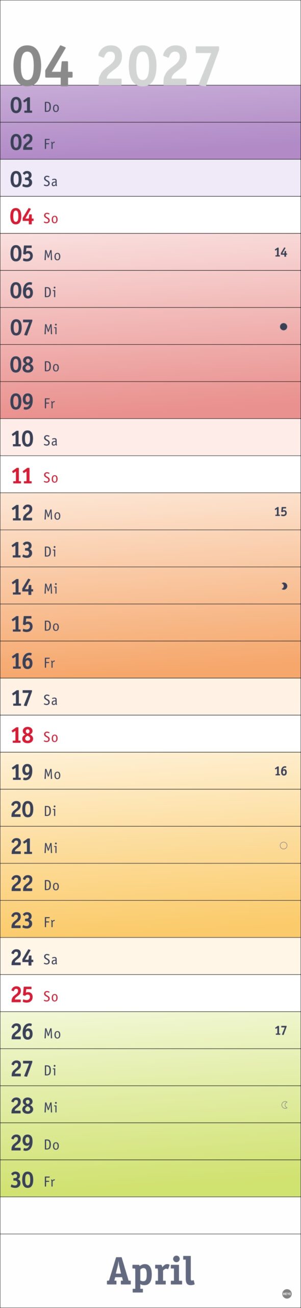 - Fröhlich-bunter Streifenkalender von Heye aus dem Athesia Kalenderverlag
