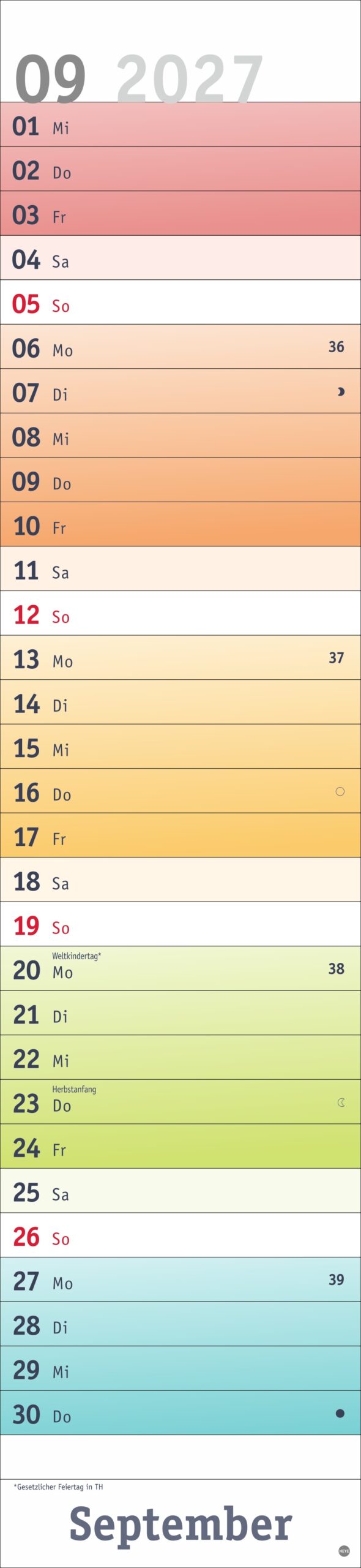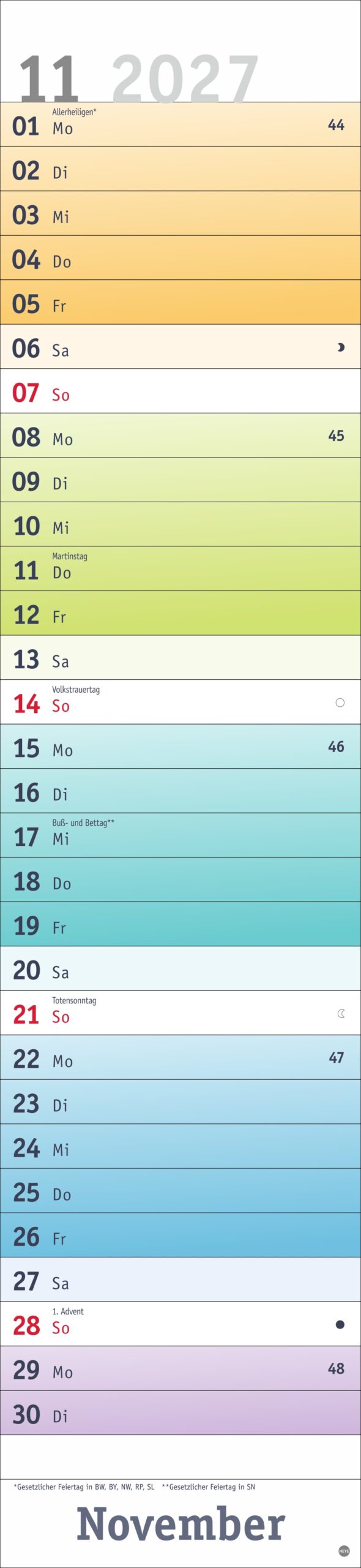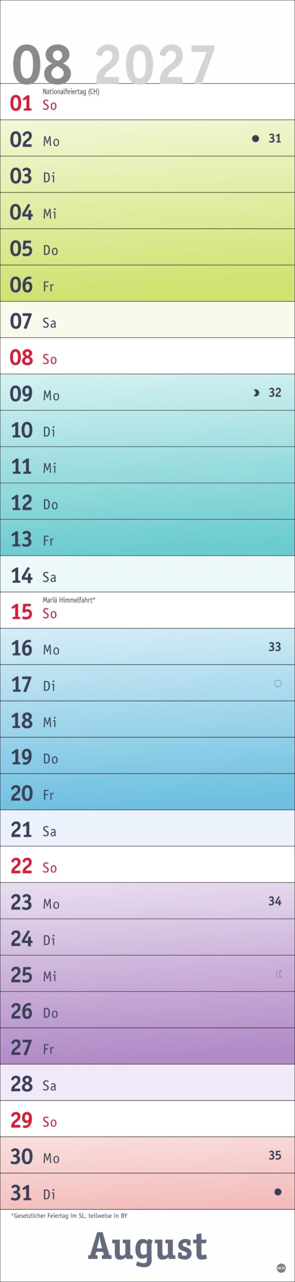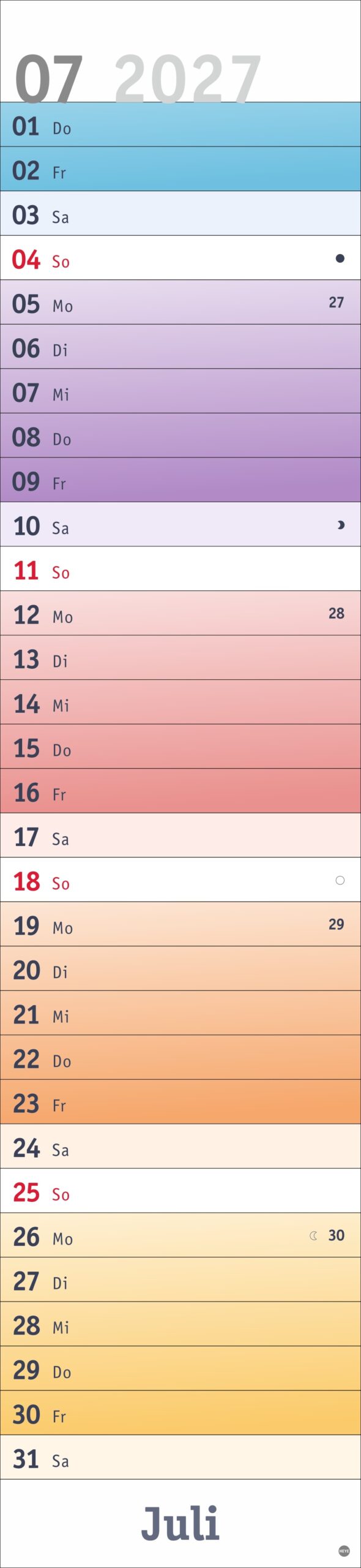 - Fröhlich-bunter Streifenkalender von Heye aus dem Athesia Kalenderverlag