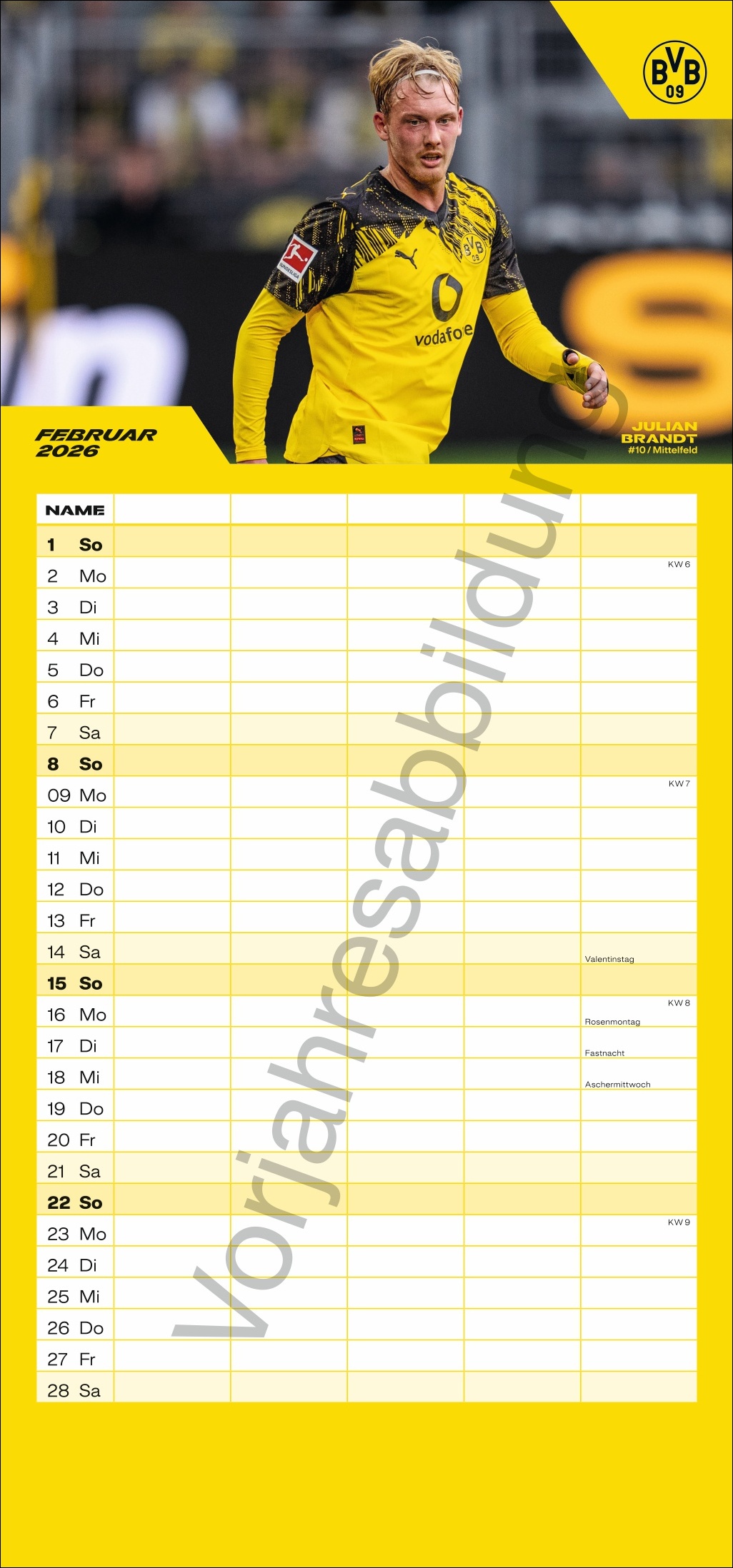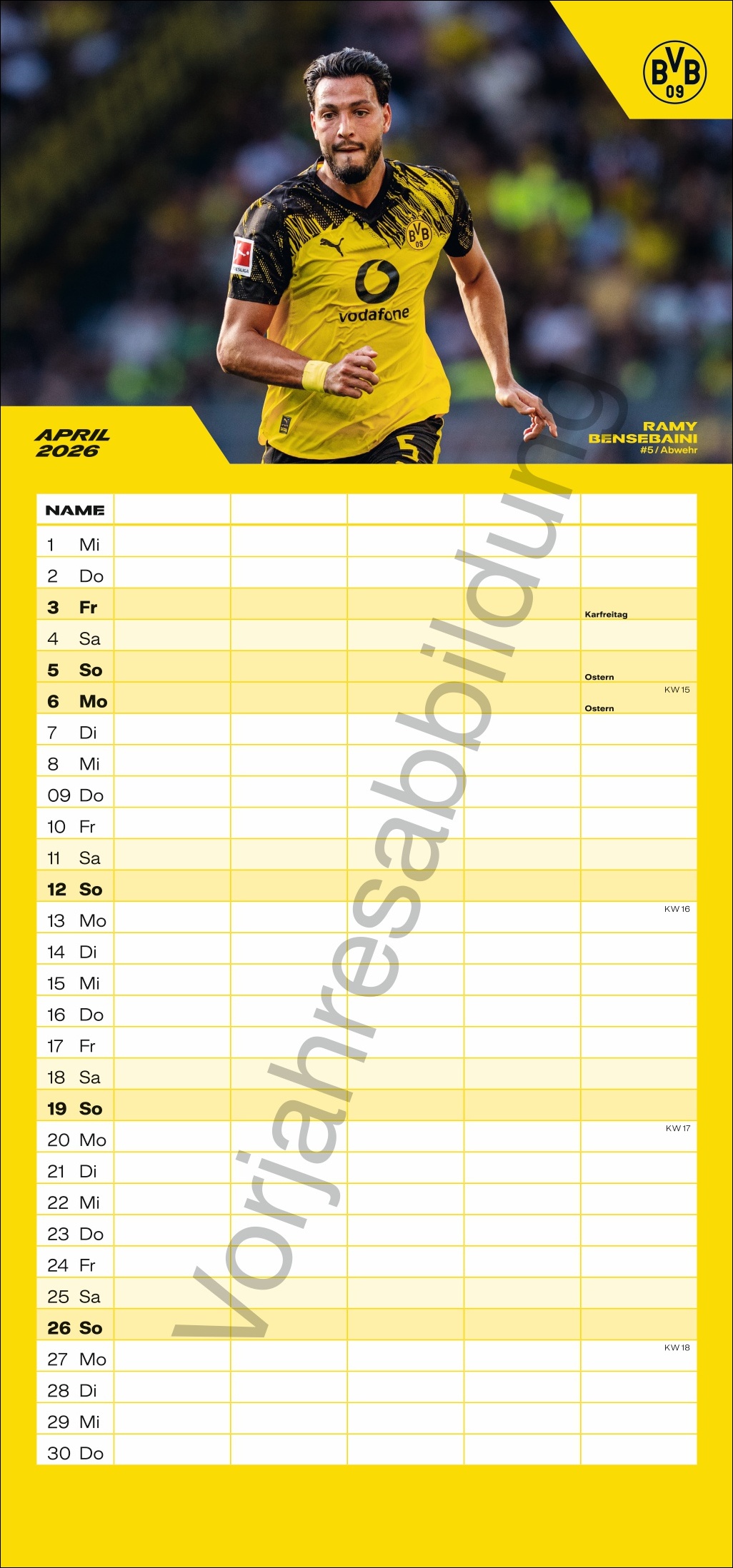 - Ein Volltreffer für fußballverrückte Familien: Wandkalender mit den BVB-Stars von Heye aus dem Athesia Kalenderverlag