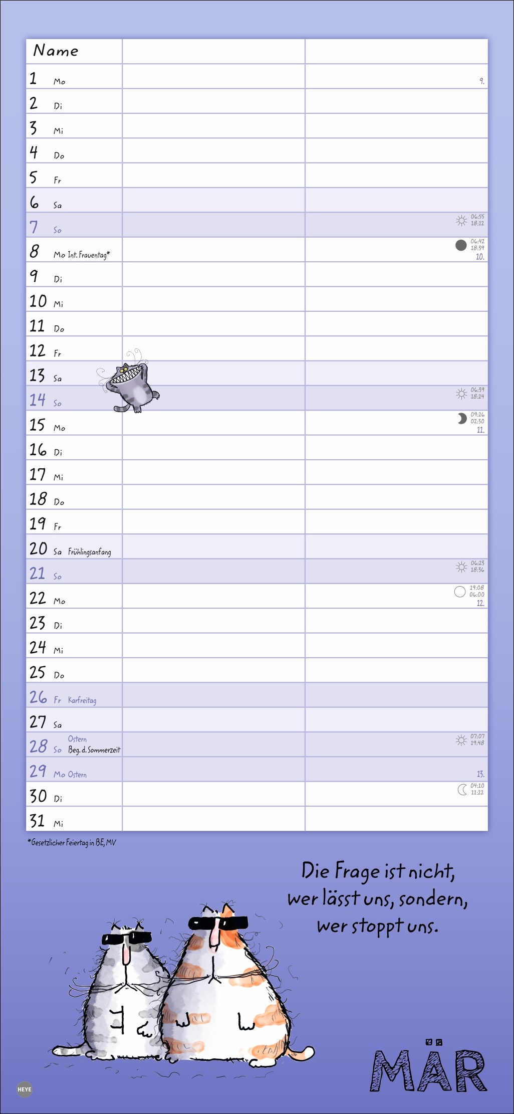 • Humor ist, wenn selbst die coolste Katze lacht: Der Catzz-Planer für zwei