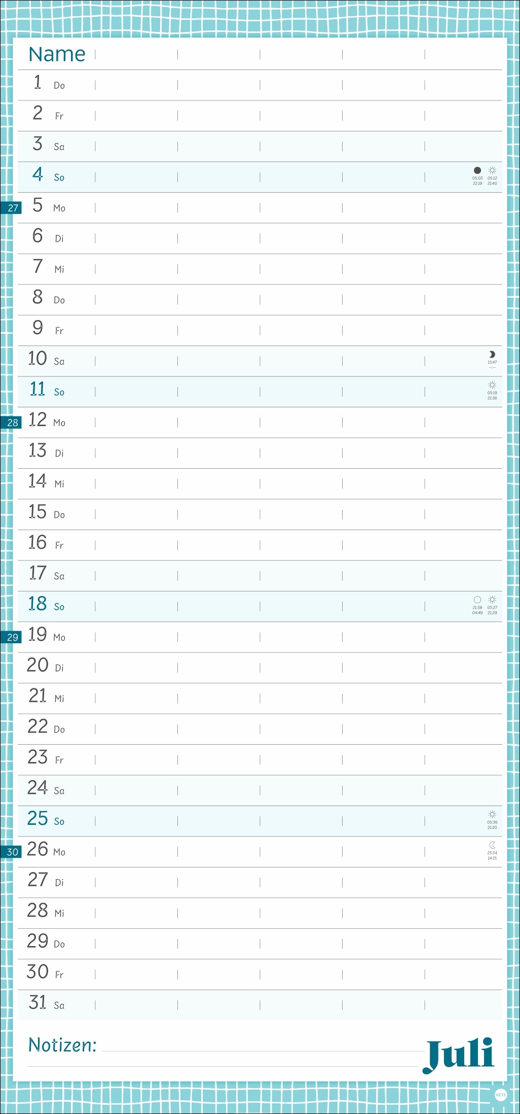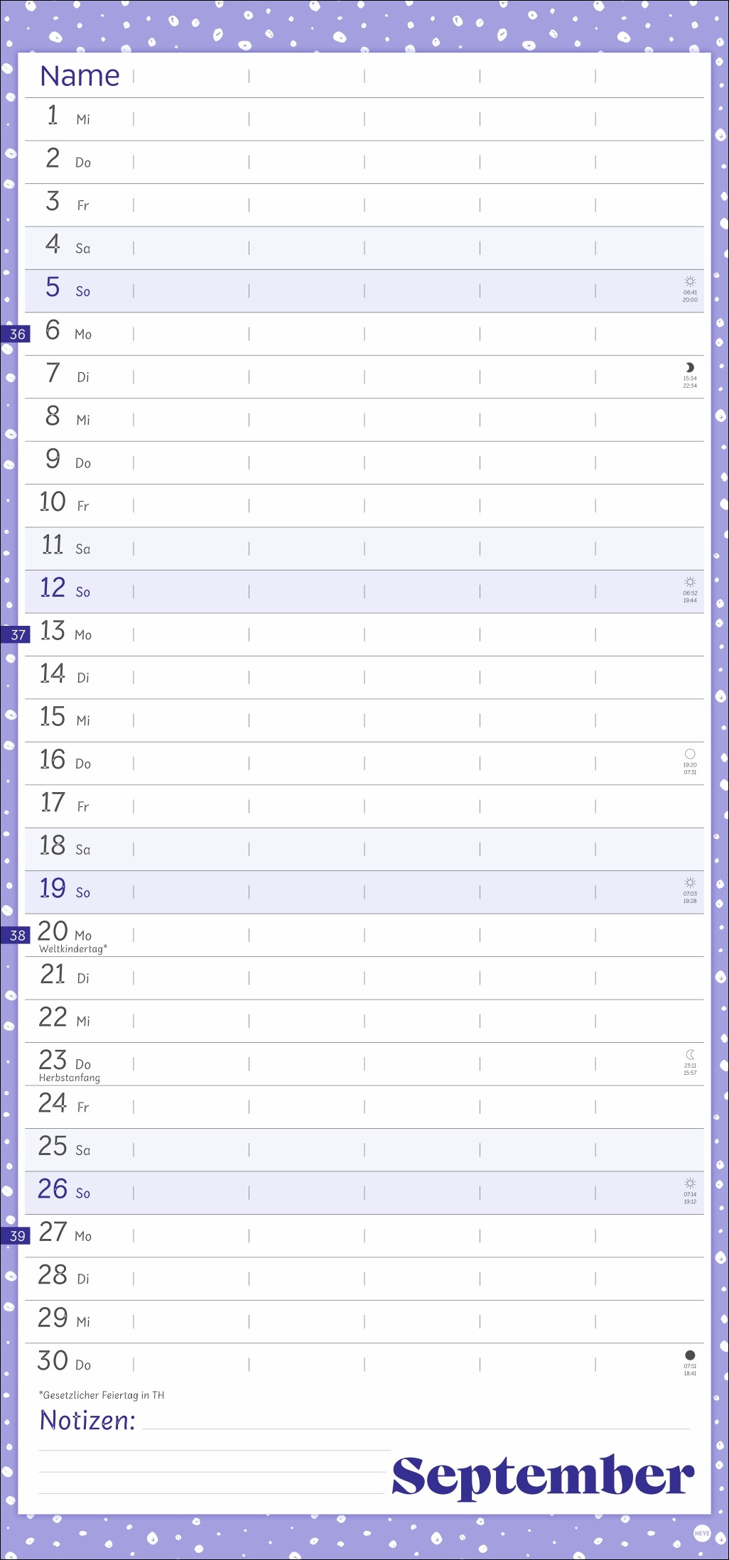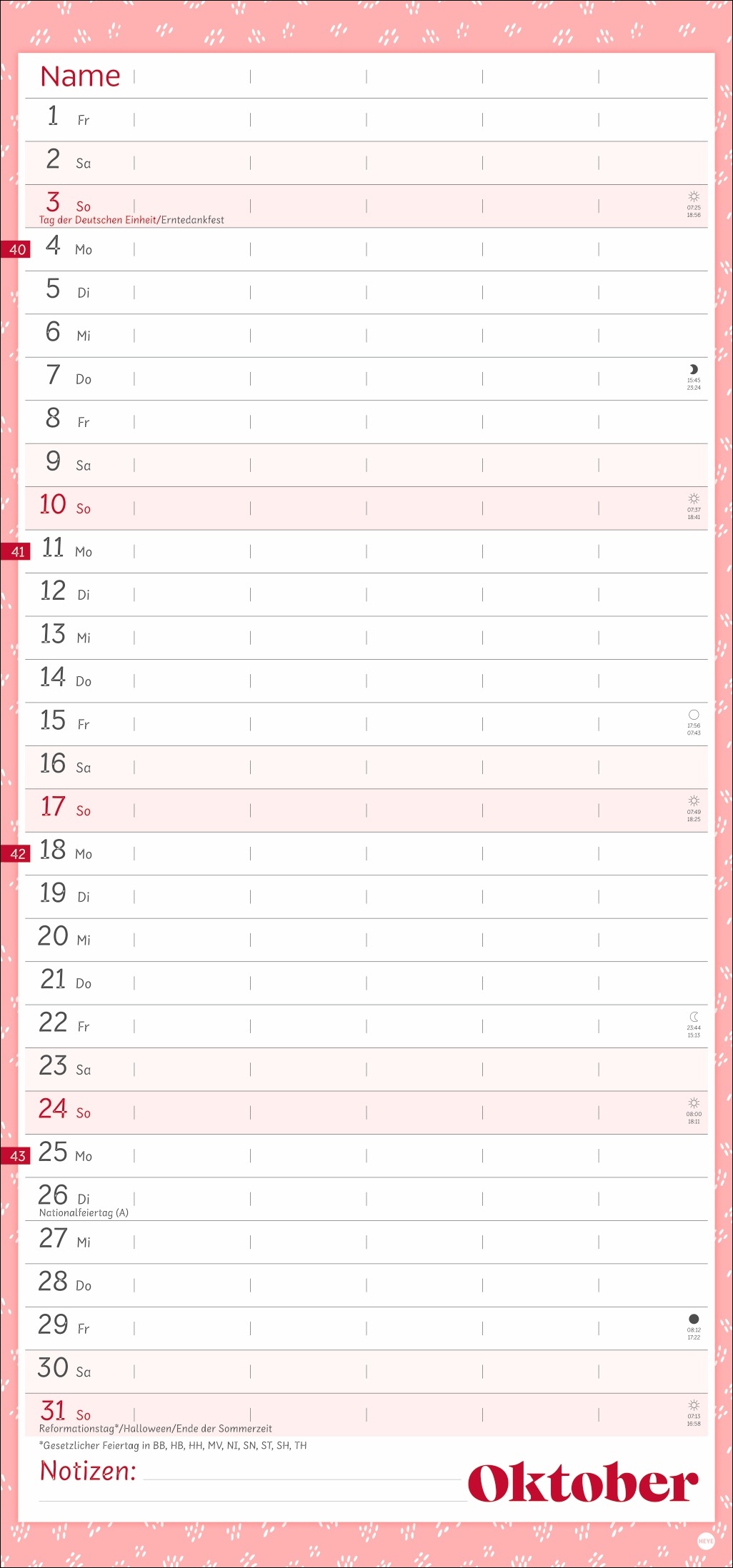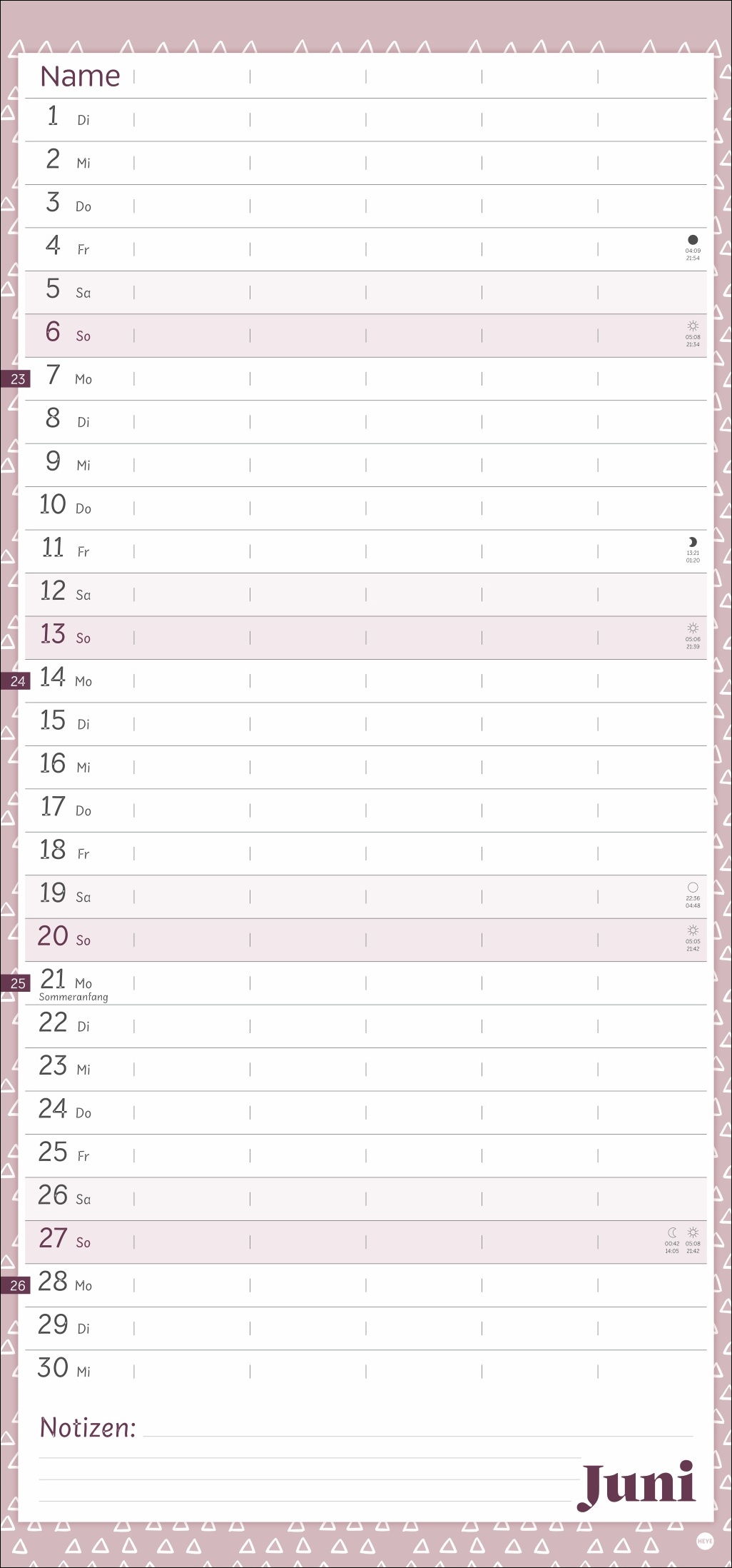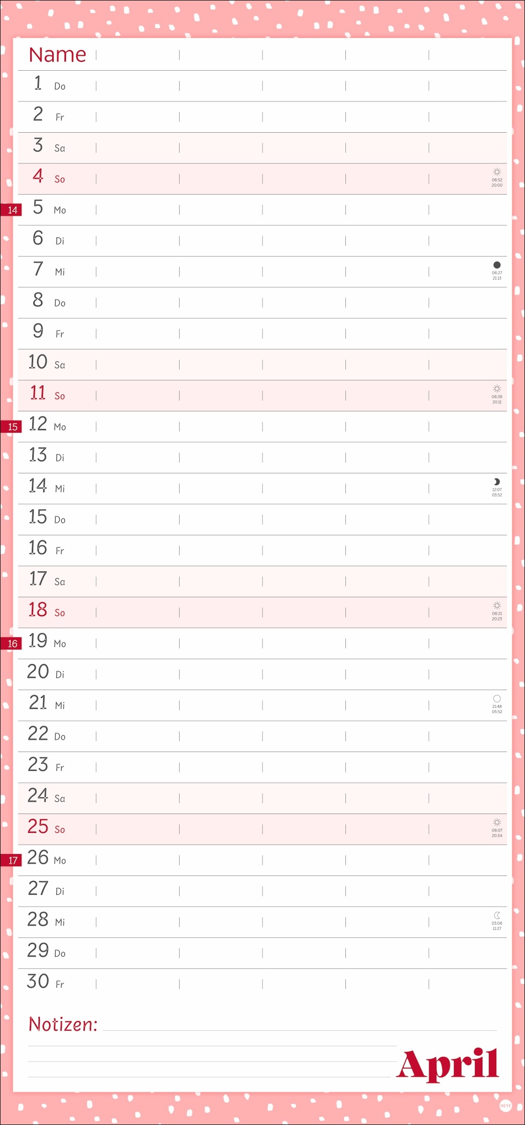 - Unser erfolgreiches Konzept für Familienplaner: 5 Spalten mit ausreichend Platz für alle im Haus, im übersichtlichen 21 x 45 cm-Format