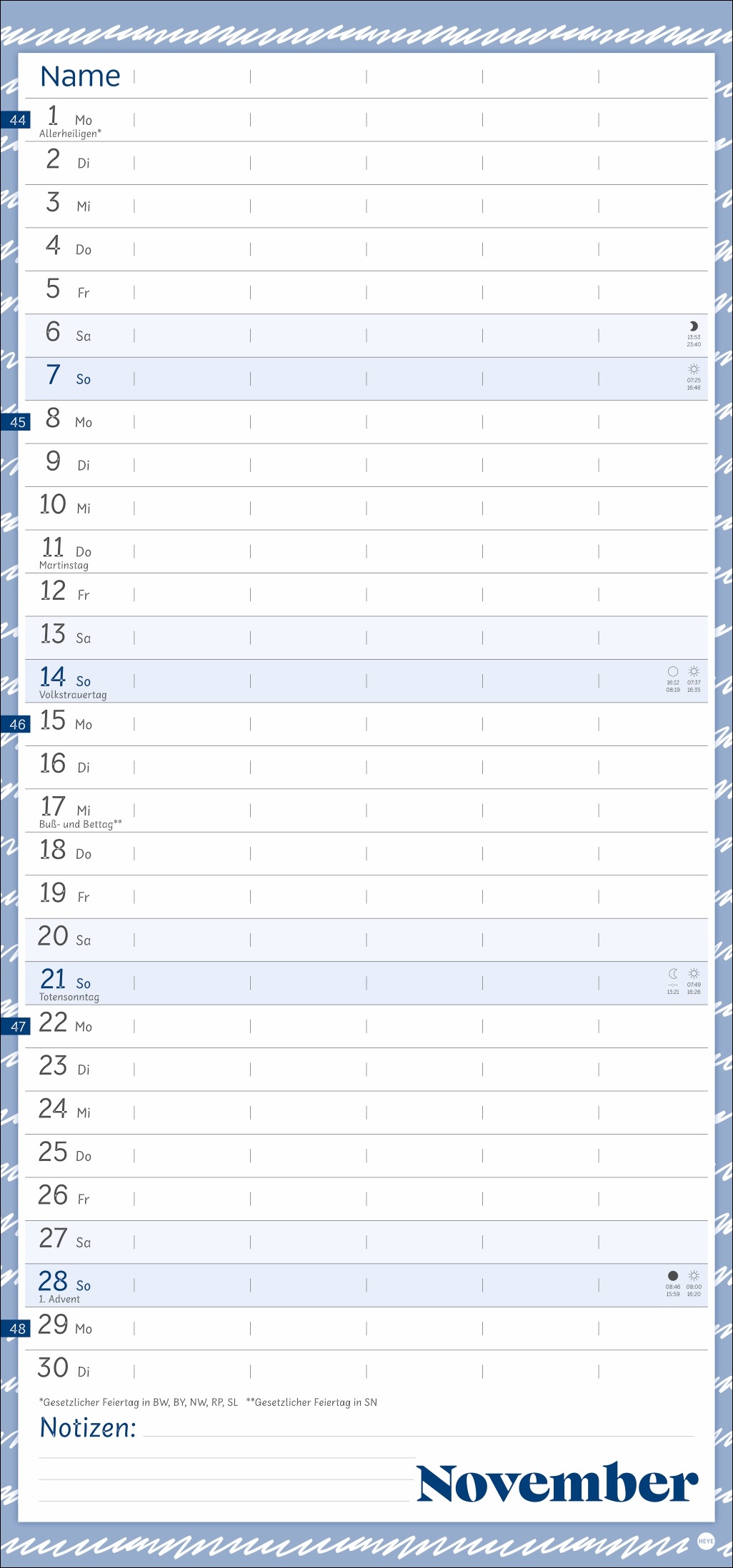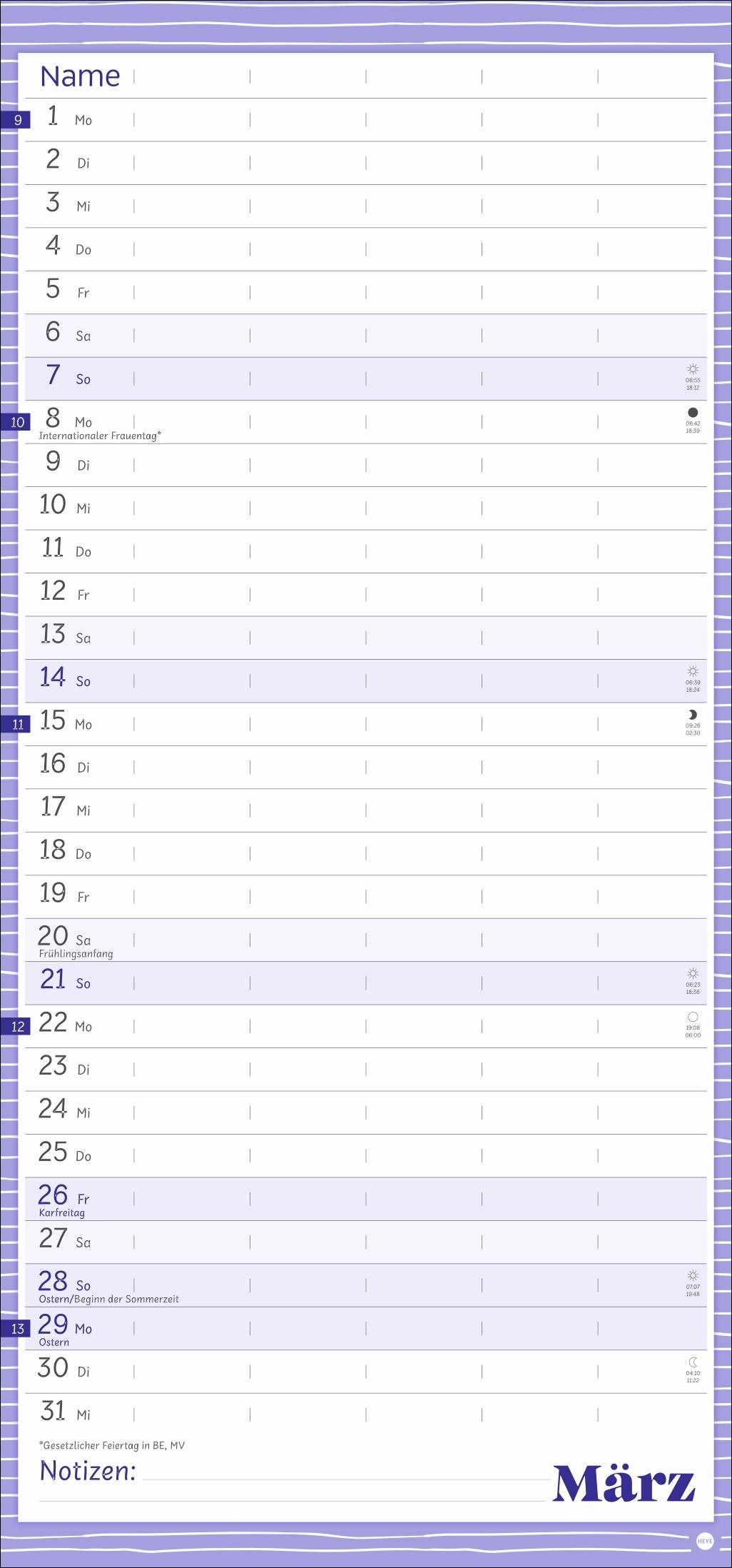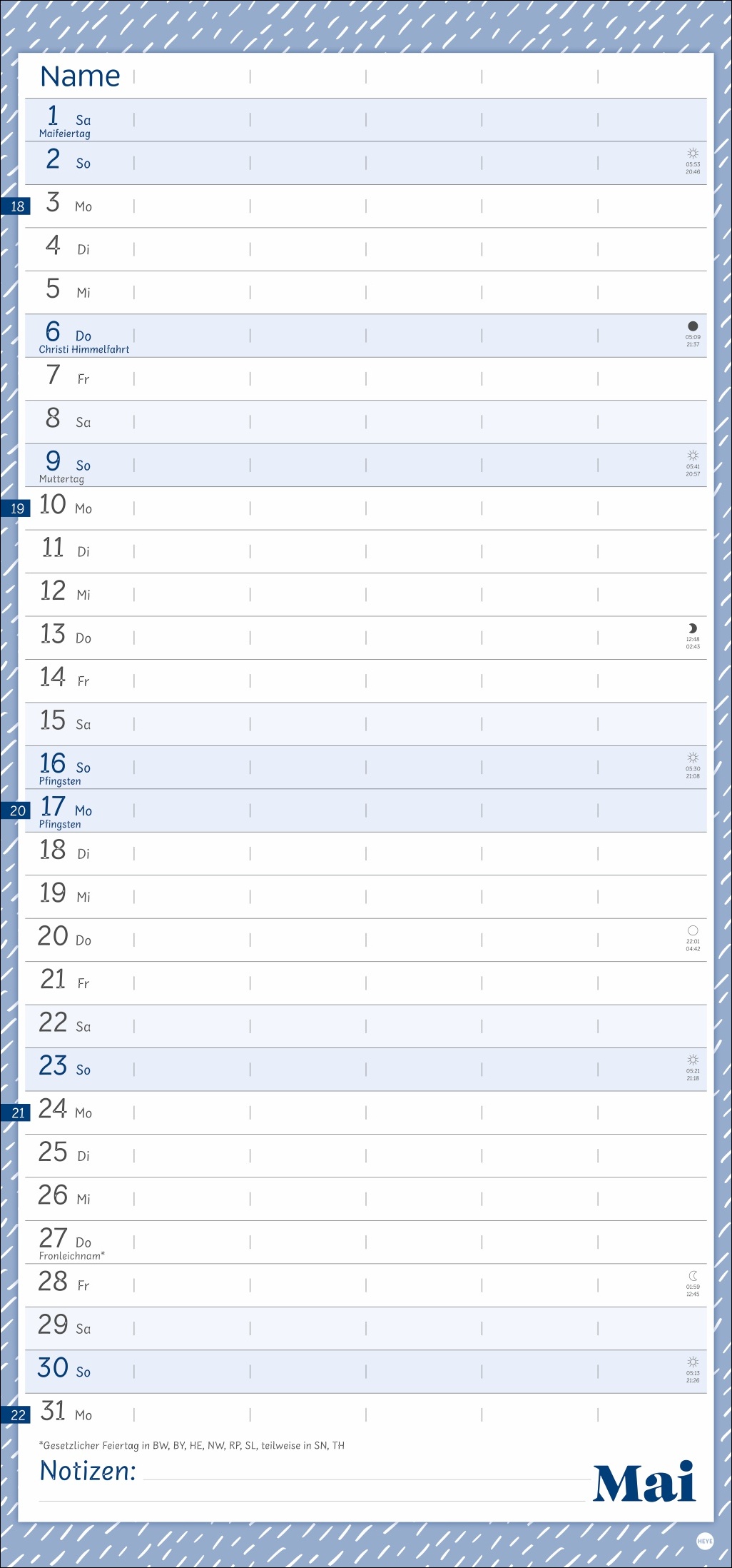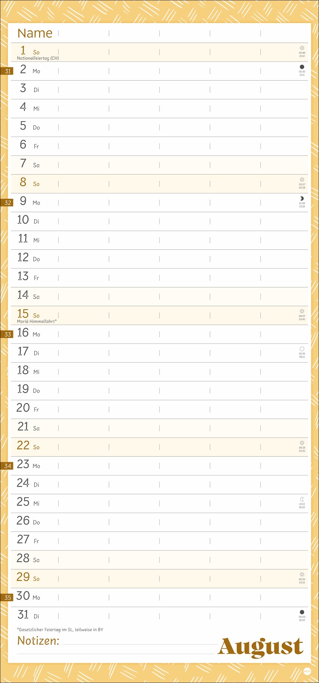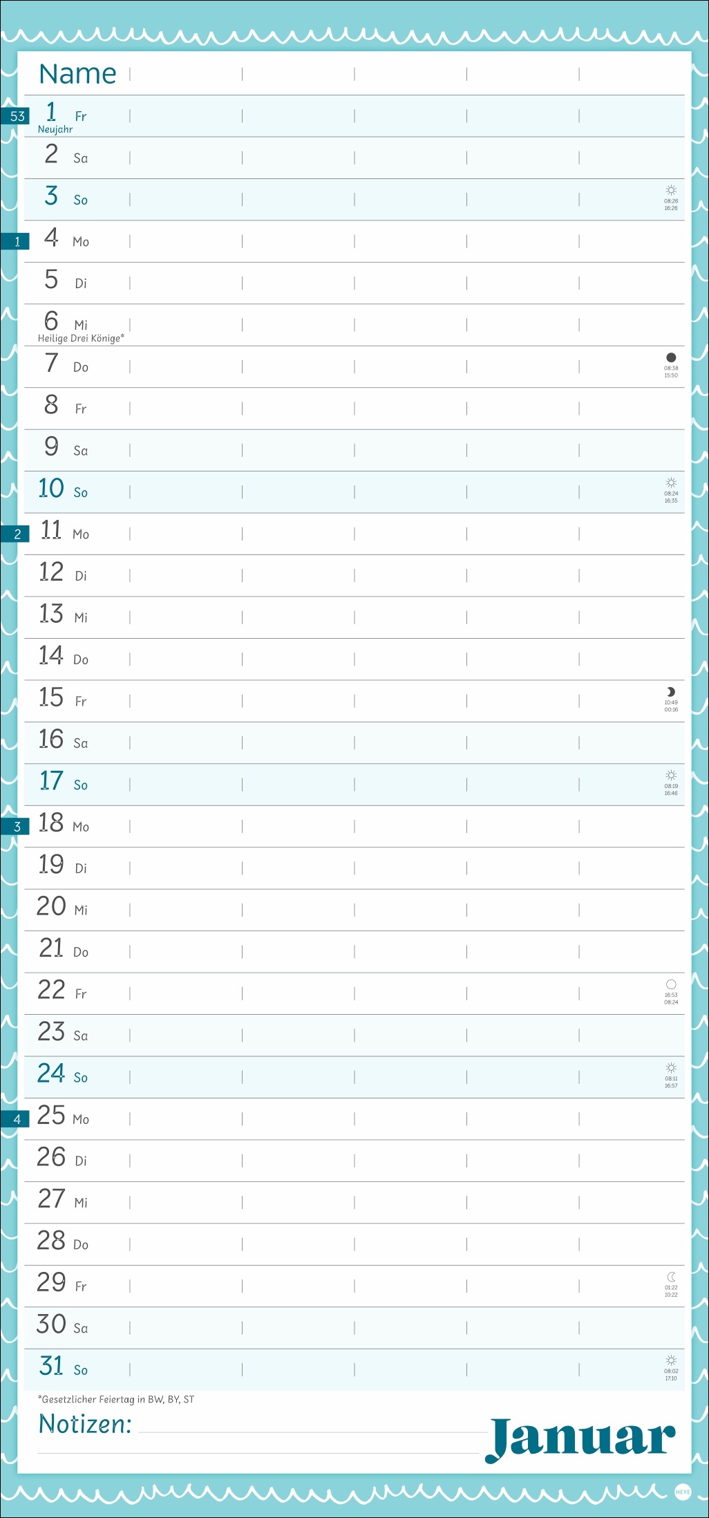 - Unser erfolgreiches Konzept für Familienplaner: 5 Spalten mit ausreichend Platz für alle im Haus, im übersichtlichen 21 x 45 cm-Format