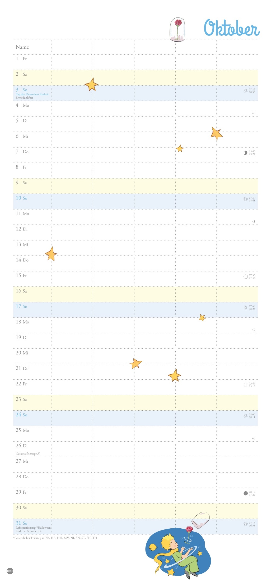- Monat für Monat die beliebtesten Motive aus dem modernen Märchen entdecken: Der Kleine Prinz, seine Rose und der Wert von Liebe und Freundschaft