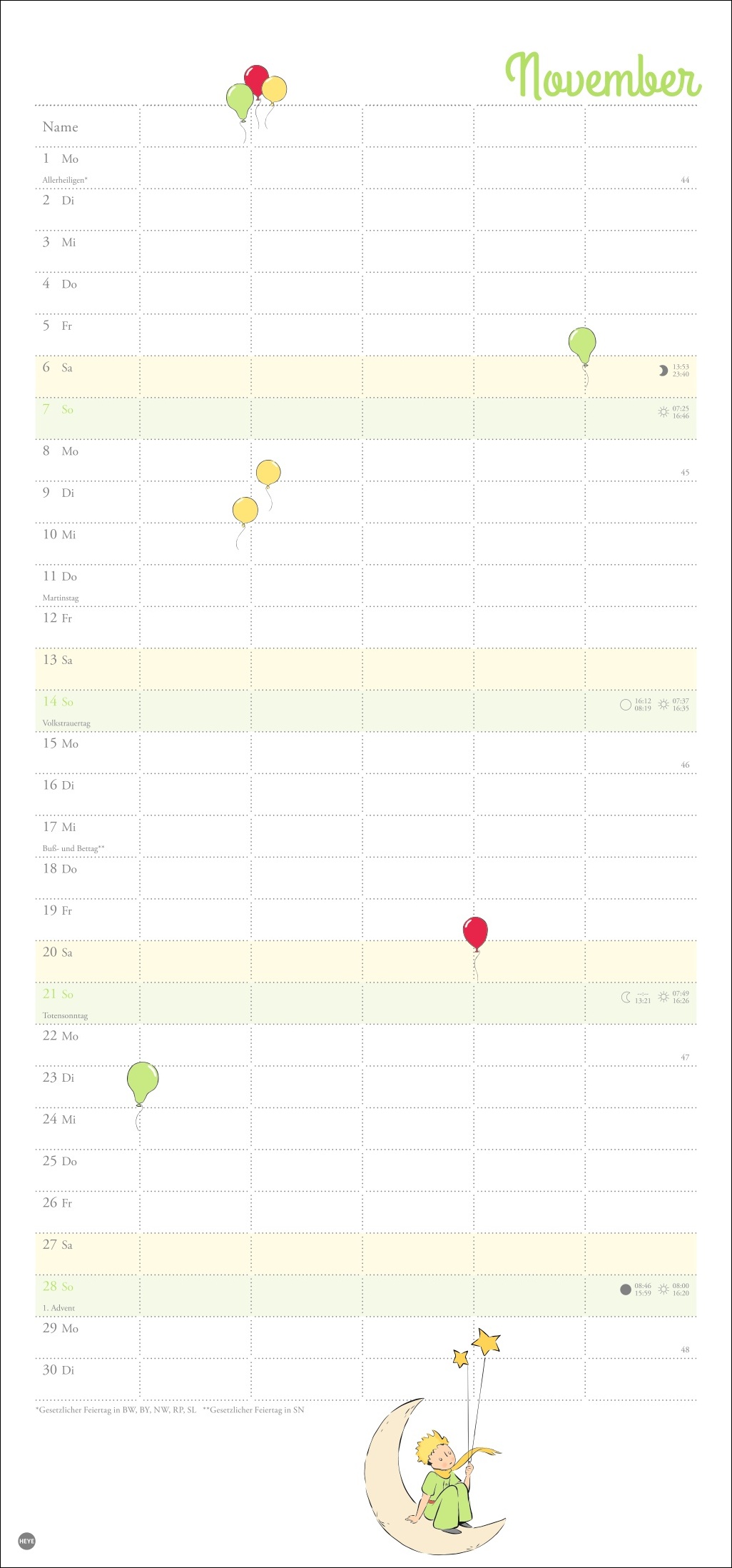 Der Kleine Prinz Familienplaner 2027