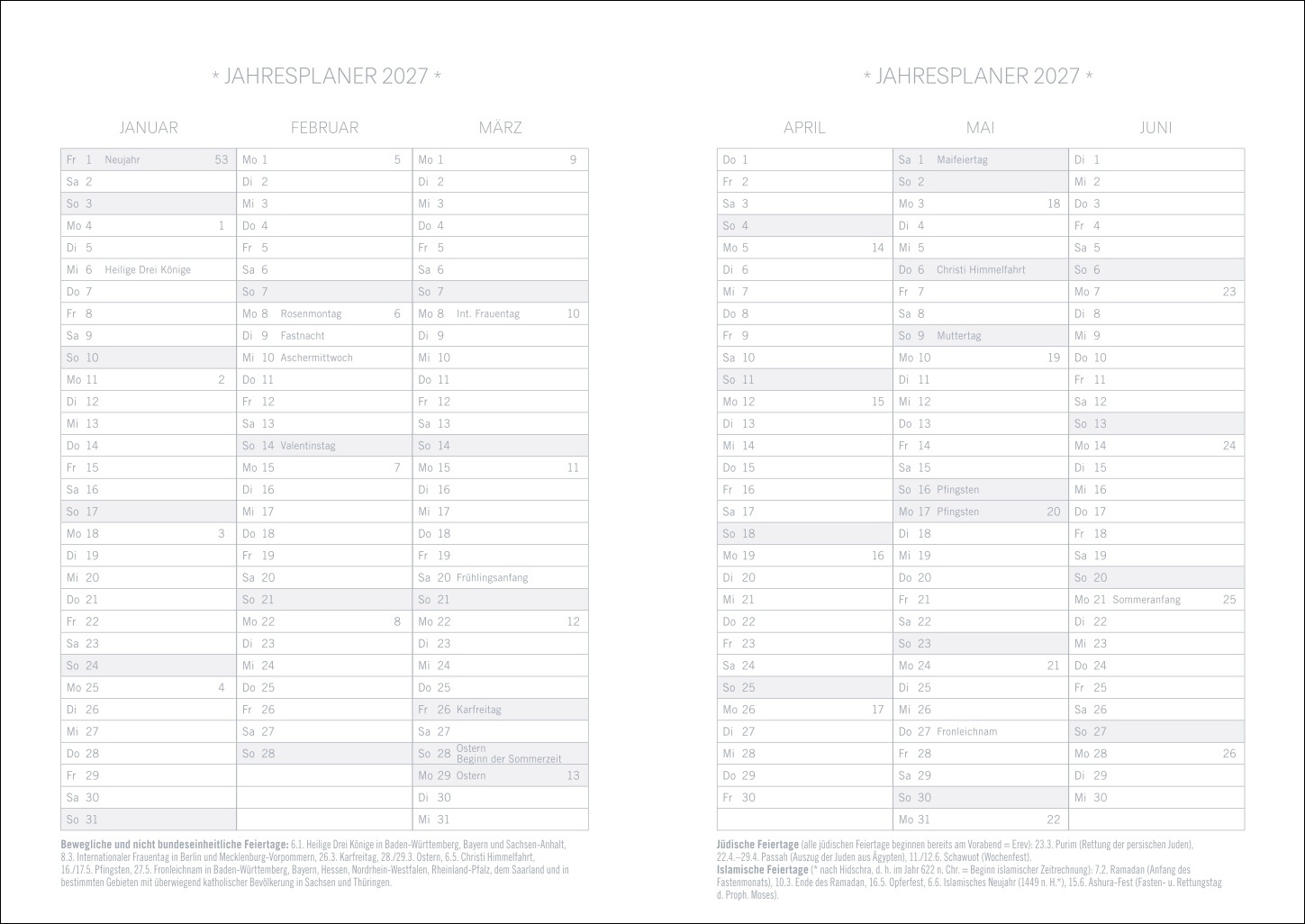 | Kalendarium | Wochenkalendarium |