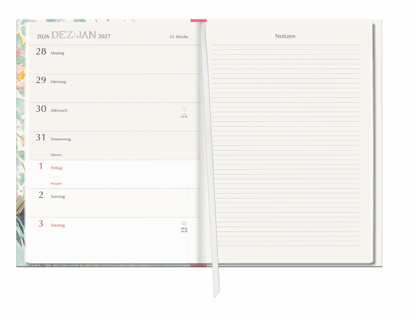• Wunderschön und praktisch gestaltet: der Terminplaner in A5 passt in jede Tasche und bietet viel Platz für Eintragungen