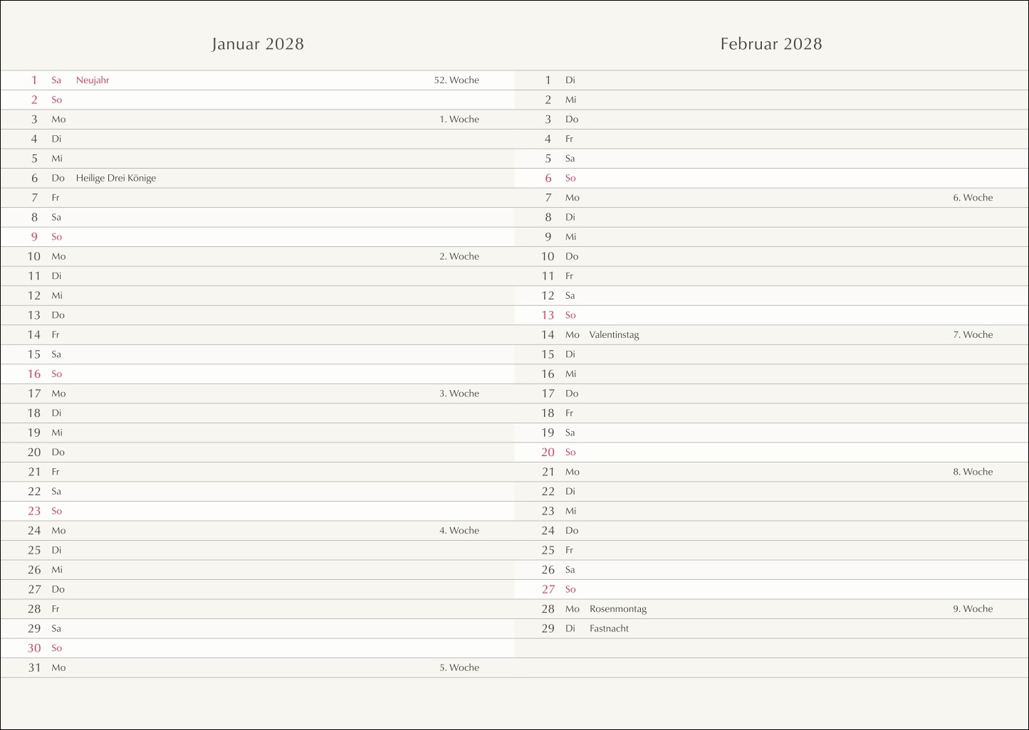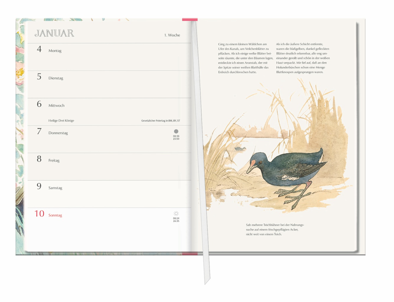 • Jede zweite Woche Notizseiten für Tagebucheinträge, die andere Woche Illustrationen und inspirierende Worte der britischen Künstlerin