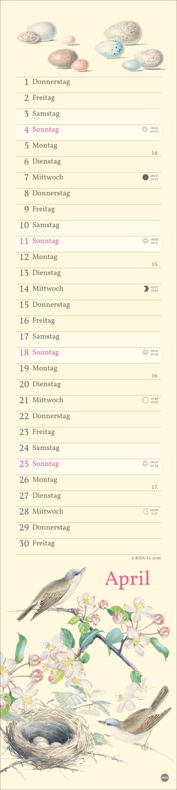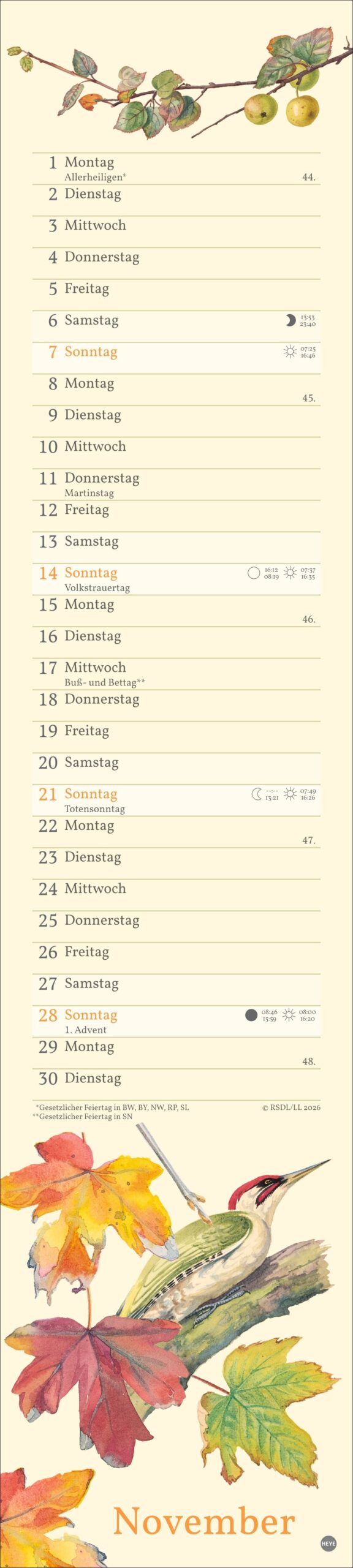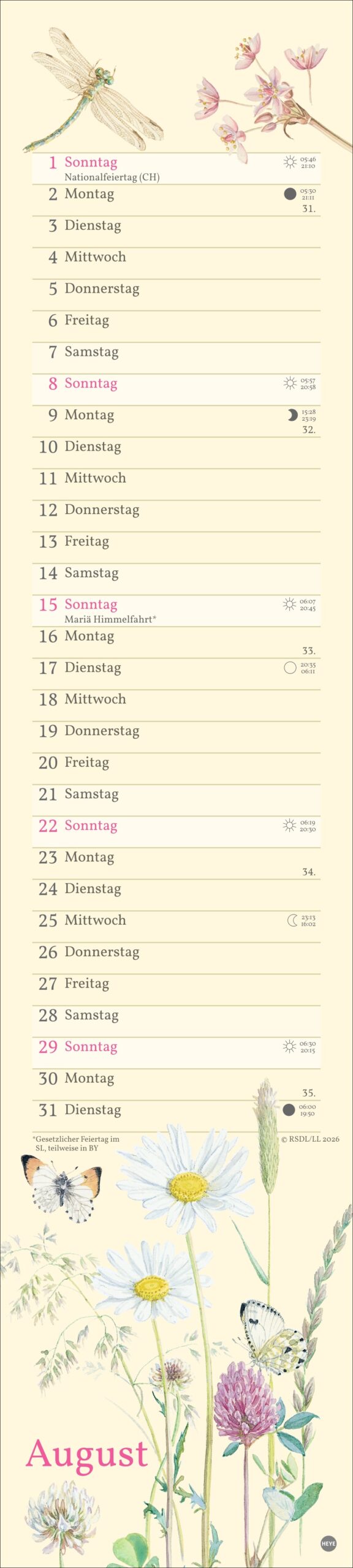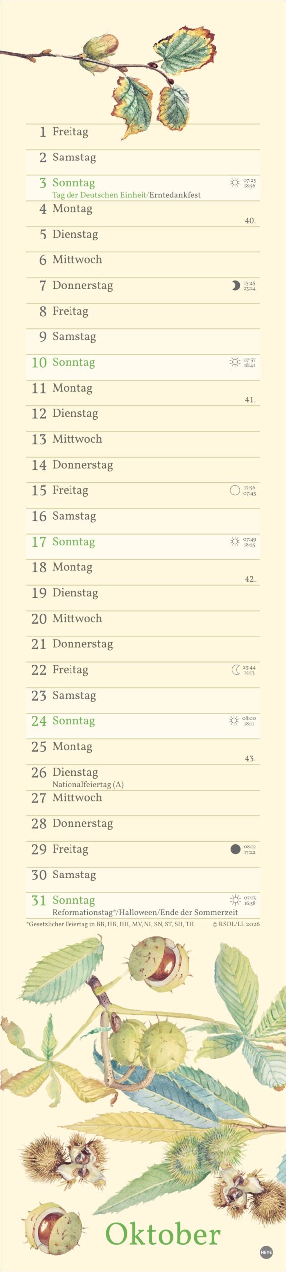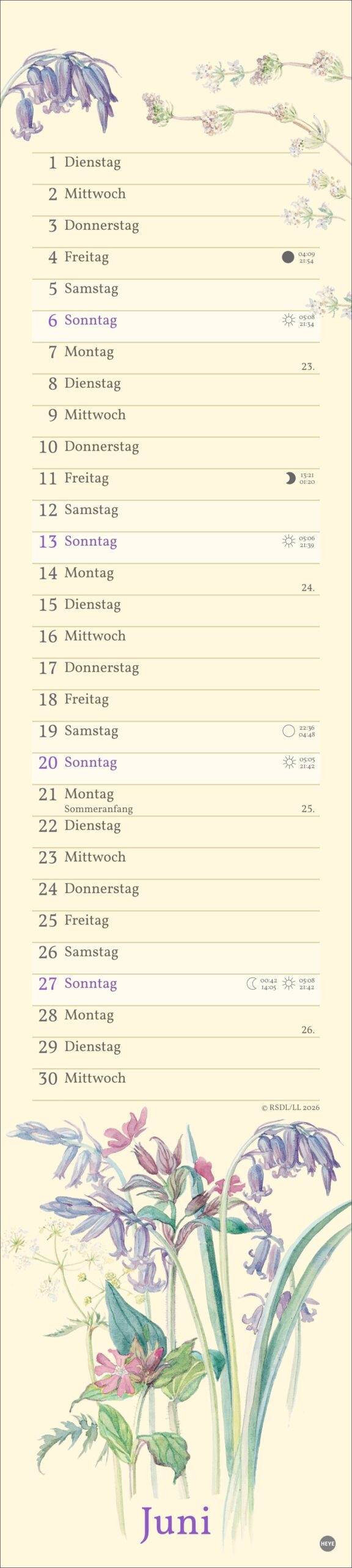 - Übersichtlich und klar strukturierter Streifenkalender: die schönen Tier- und Pflanzenzeichnungen sorgt dafür, dass Sie keinen Termin übersehen