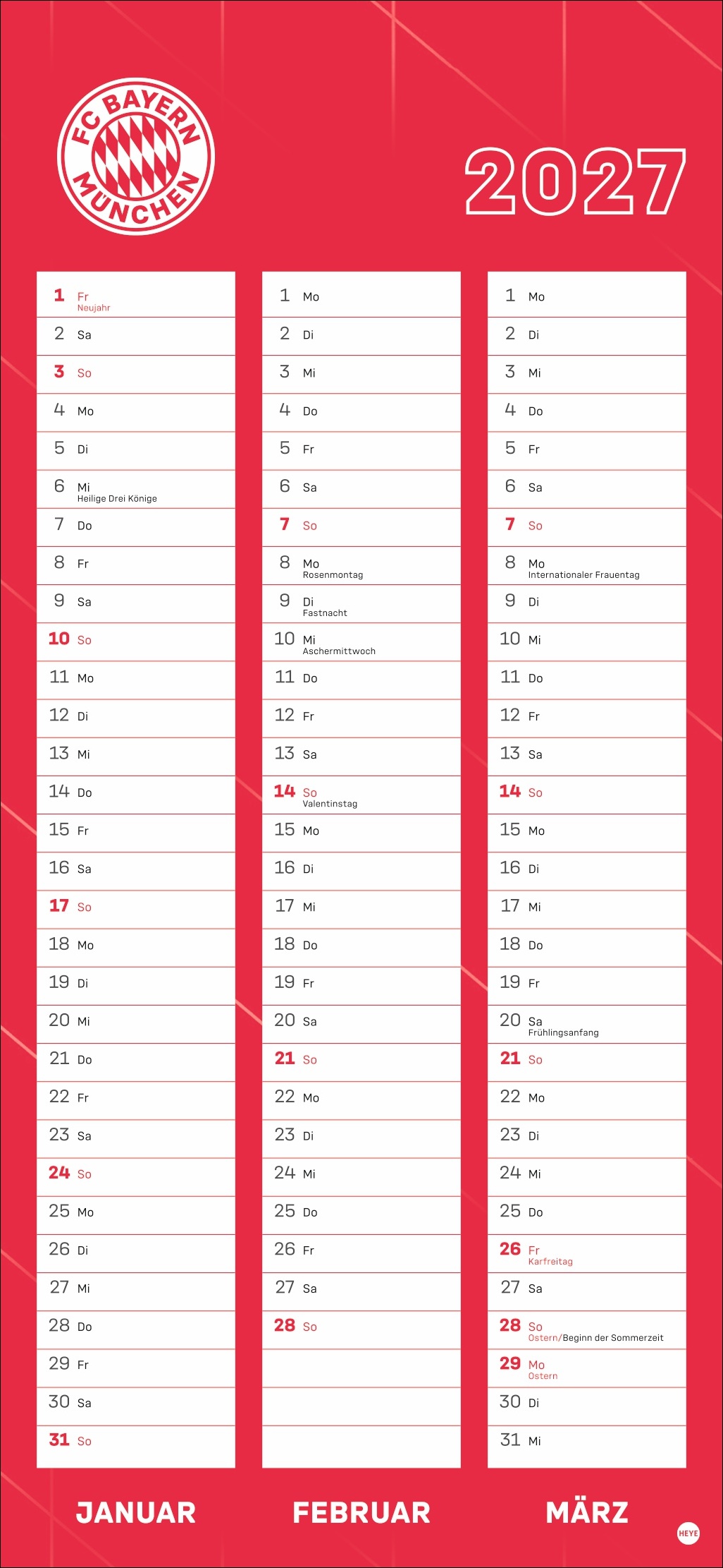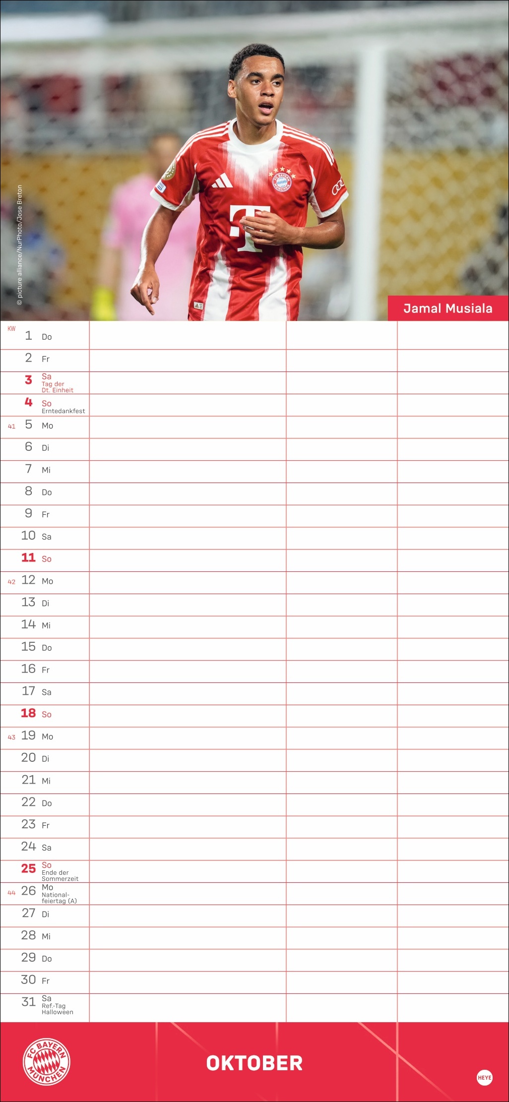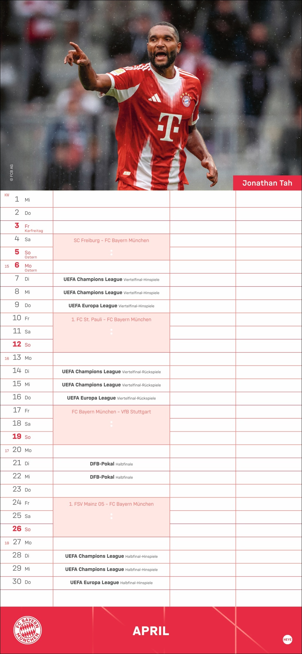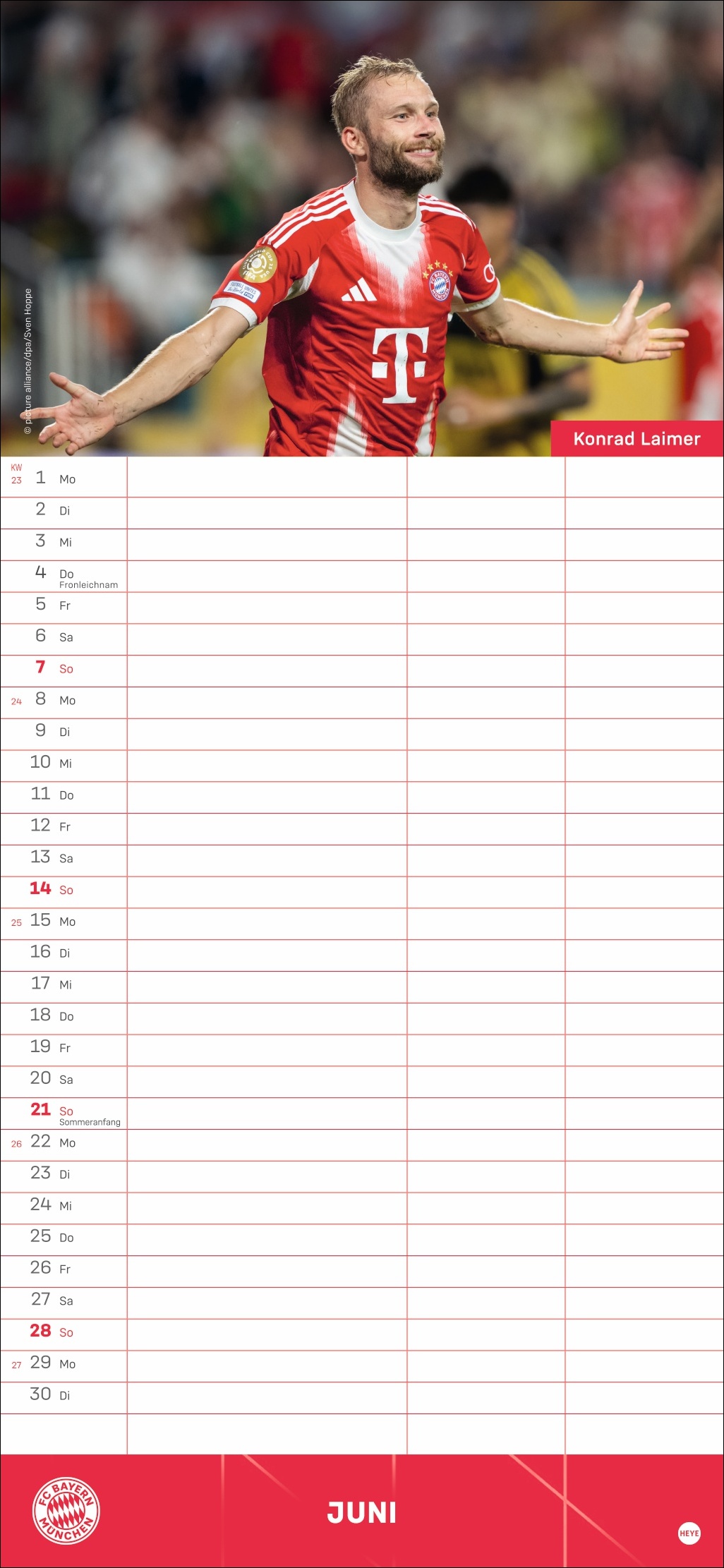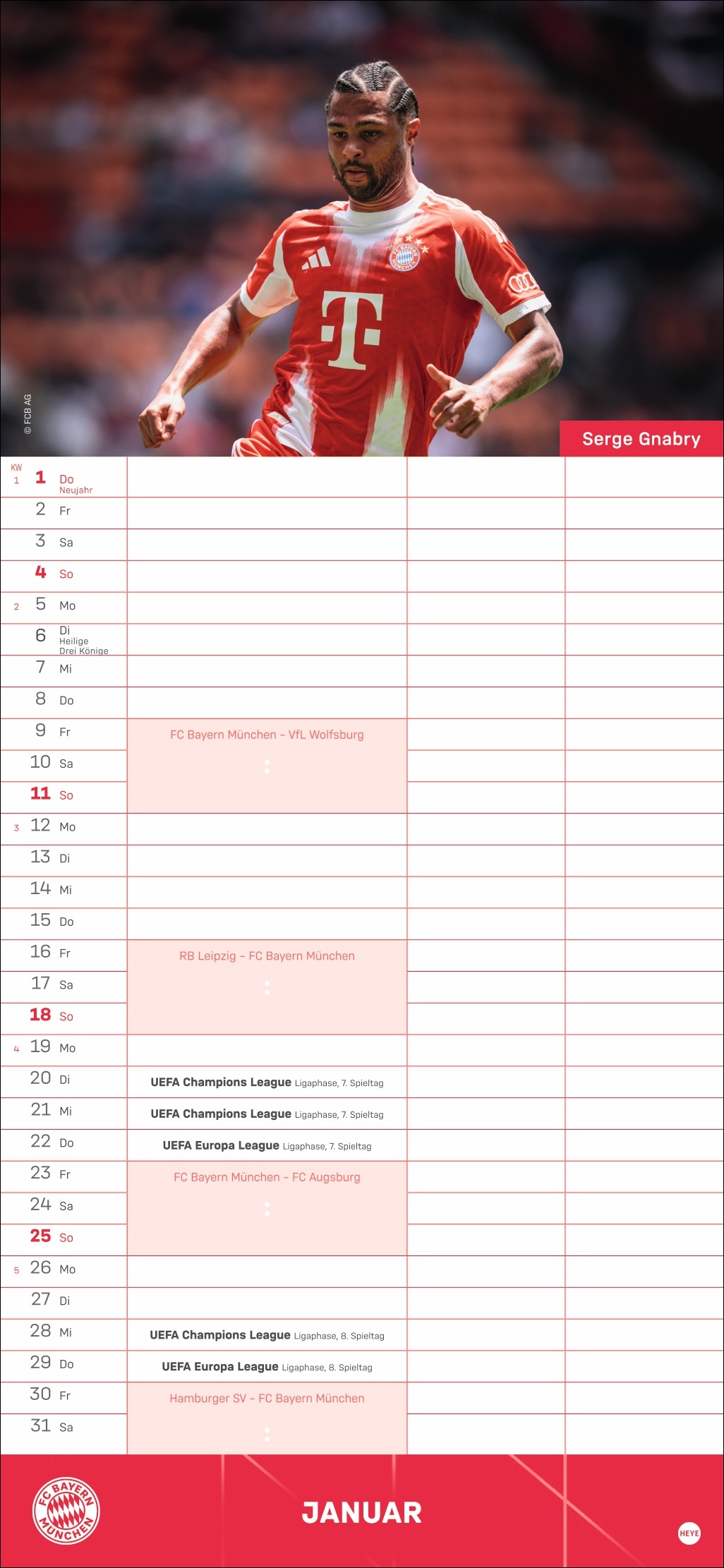 • Besser planen mit den Fußball-Stars des Rekordmeisters: Monatlich neue Porträts von Neuer, Kimmich, Müller und Co.