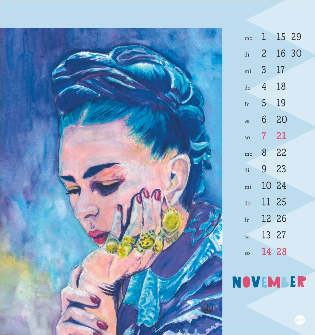 • Kunstkalender mit farbenfrohen Porträts, der den Alltag in Büro oder zuhause bunter macht