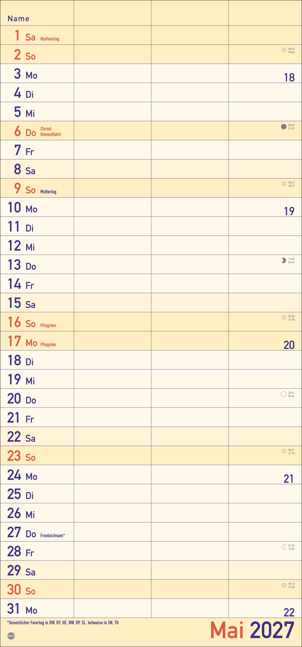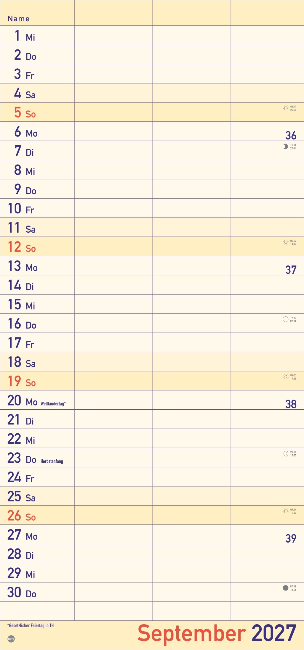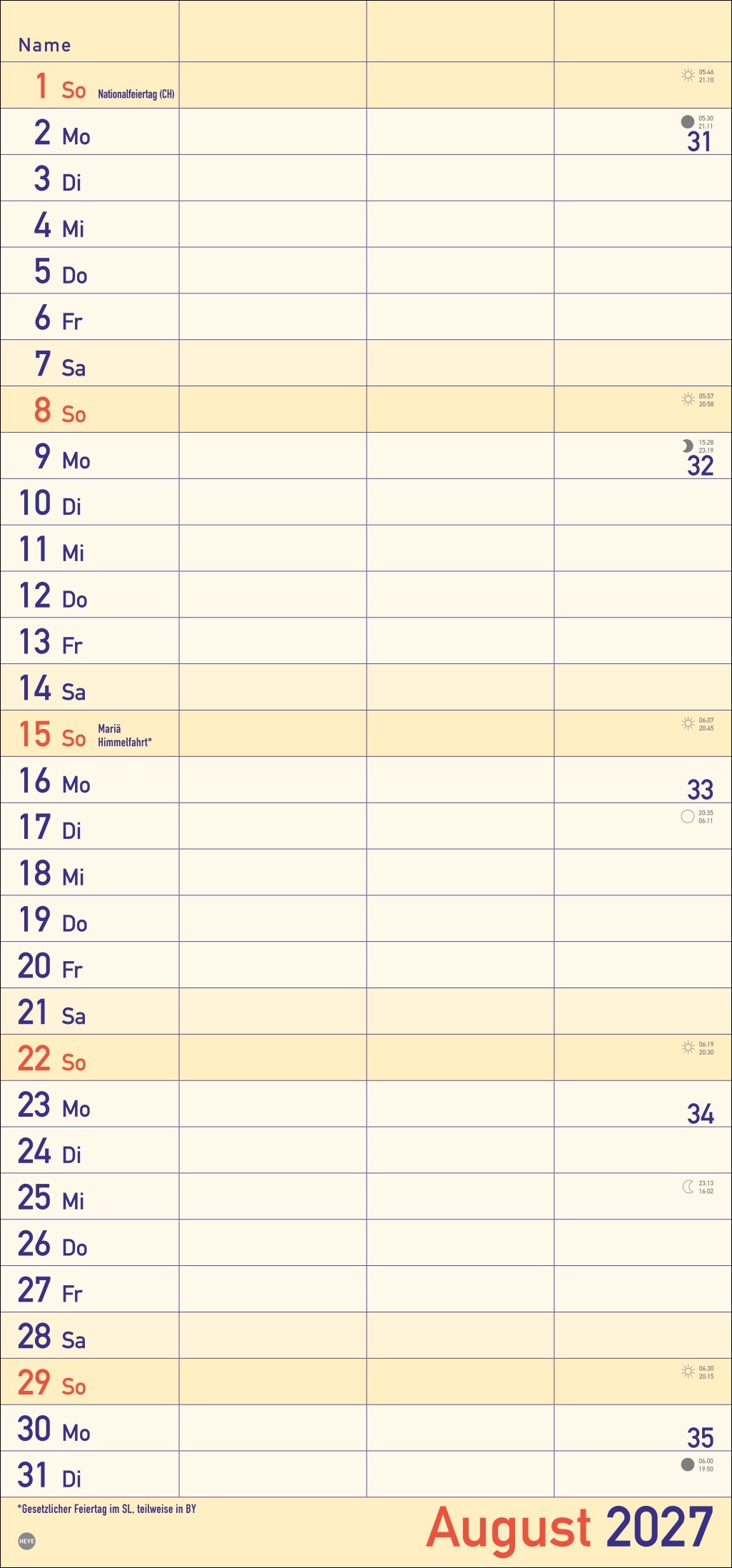 - Alle Termine im Blick: länglicher Monatskalender – groß gedruckt und mit breiten Spalten für eine gute Lesbarkeit