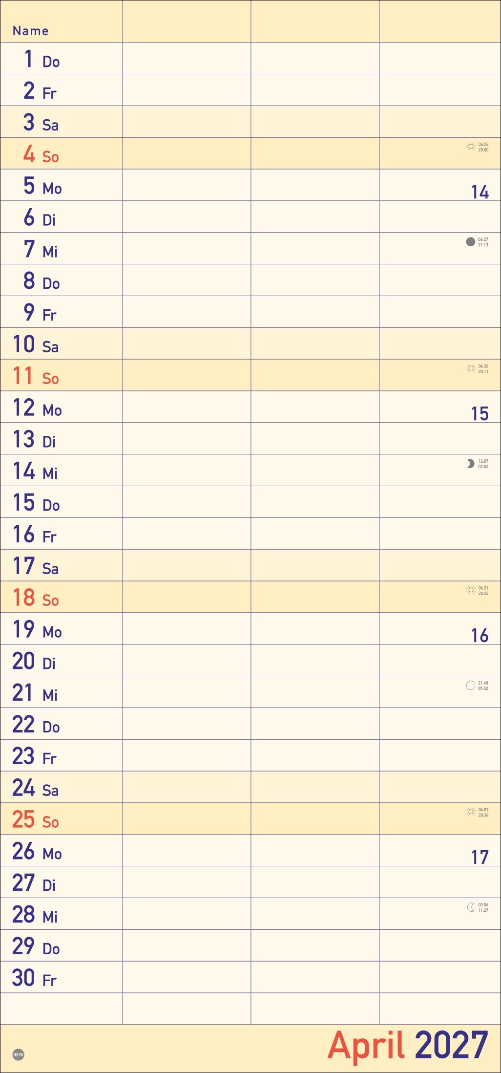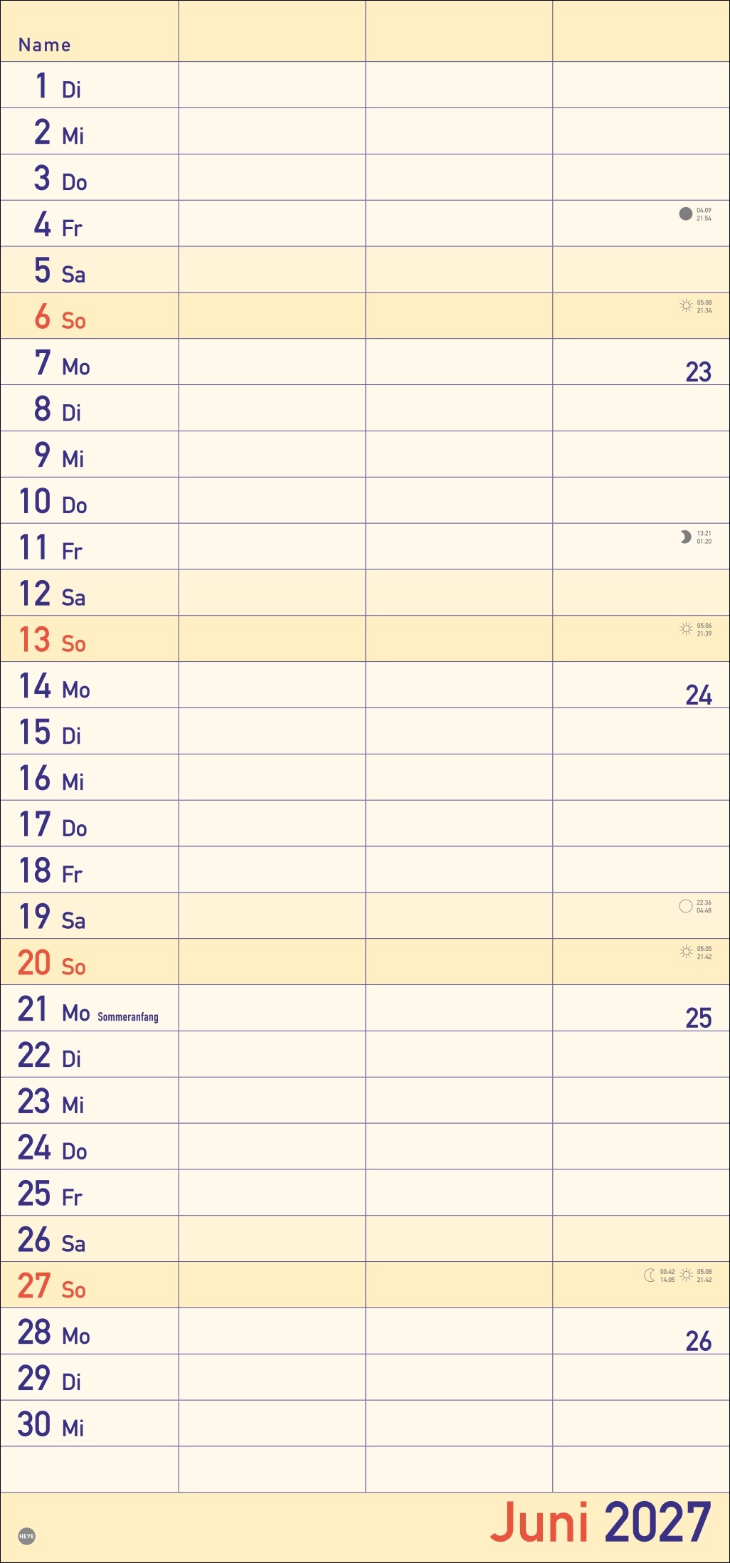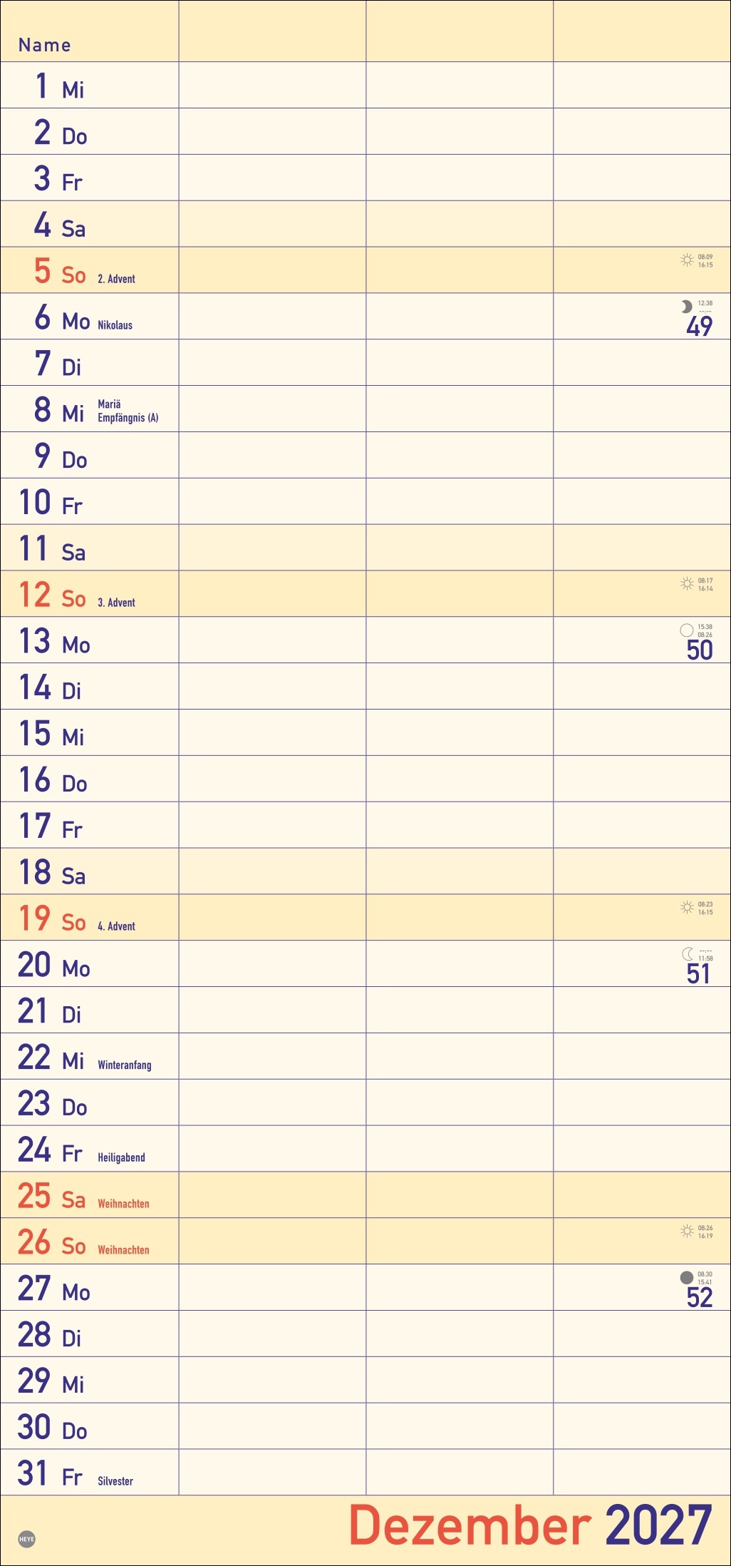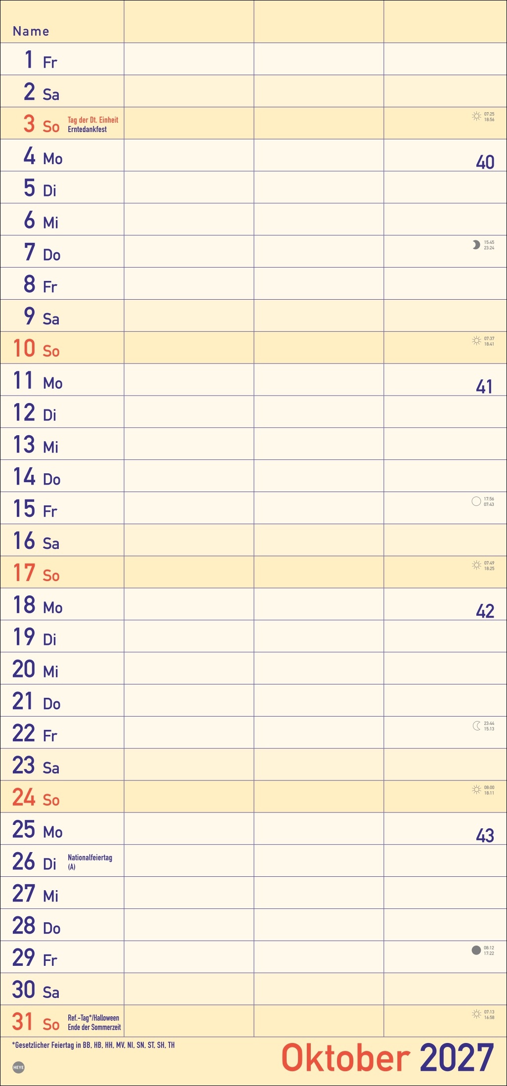- Alle Termine im Blick: länglicher Monatskalender – groß gedruckt und mit breiten Spalten für eine gute Lesbarkeit