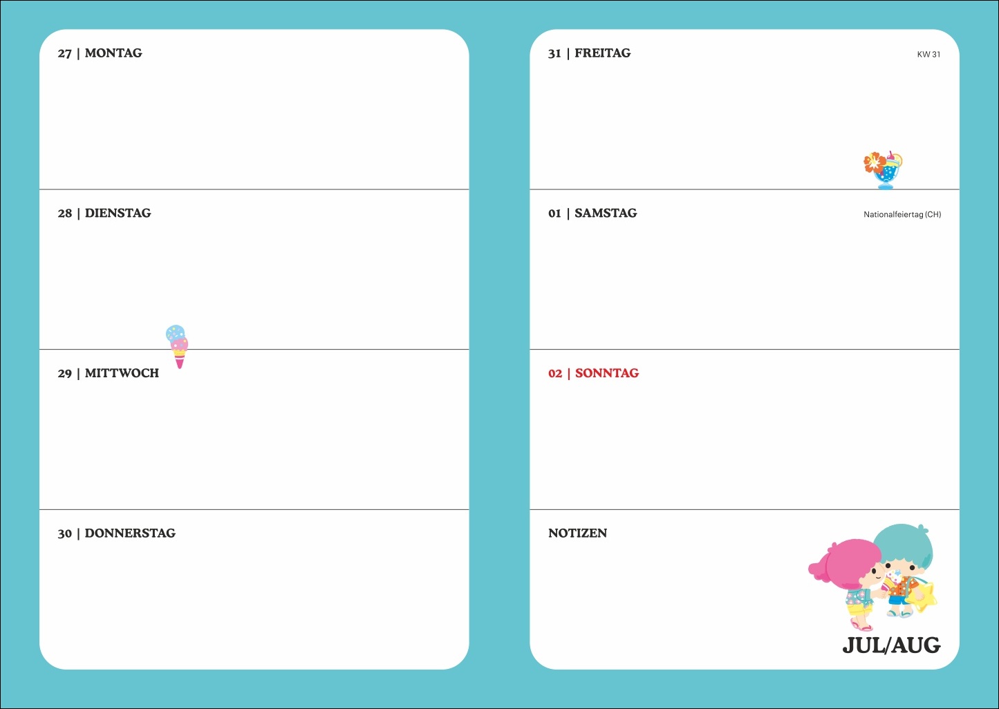- Praktischer Terminkalender für 17 Monate (ab August 2026) mit tollen Extras wie Lesebändchen, Adressen- und Notenübersicht und besonders viel Platz für Notizen