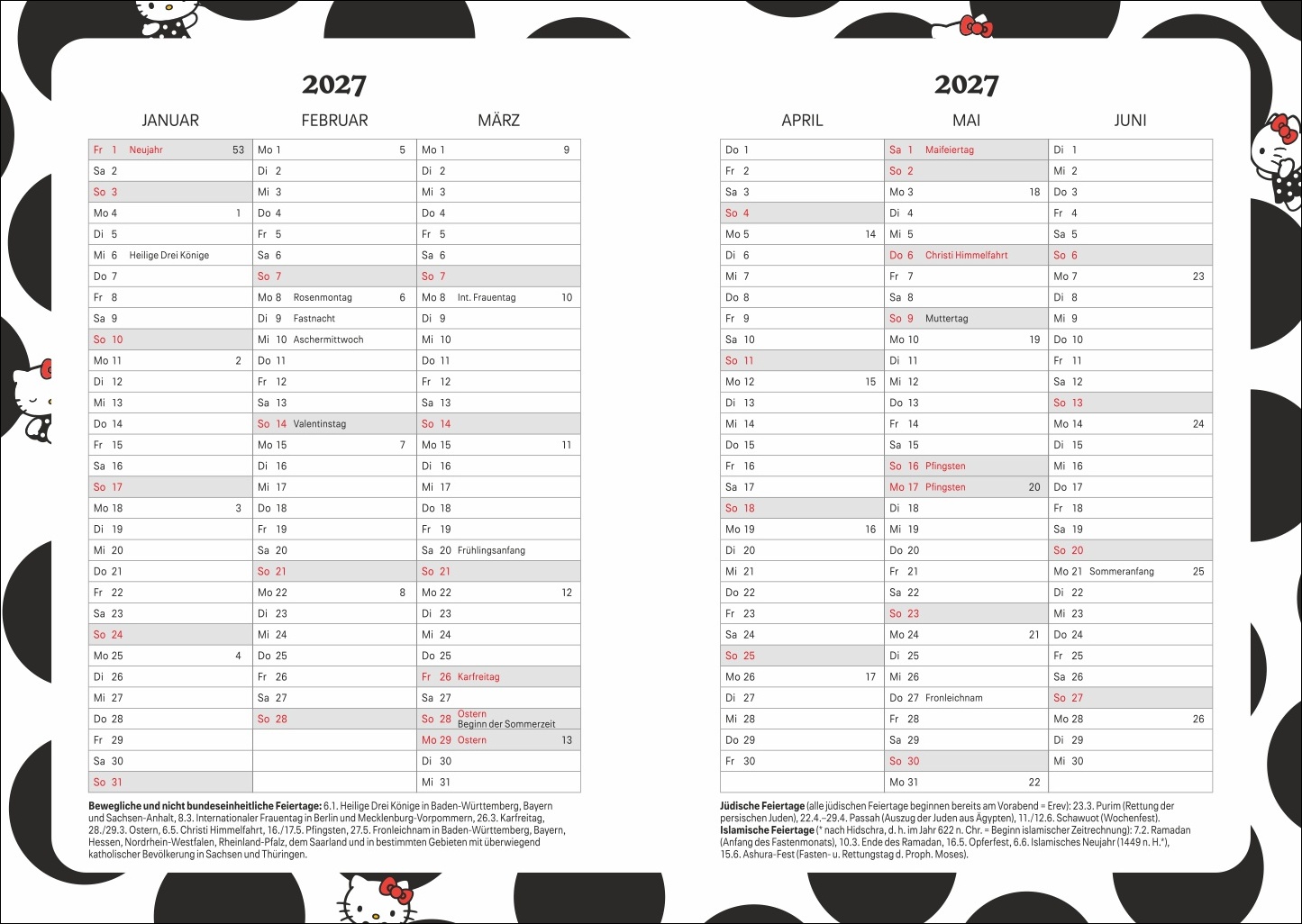 Hello Kitty 17-Monats-Kalenderbuch A5 2027