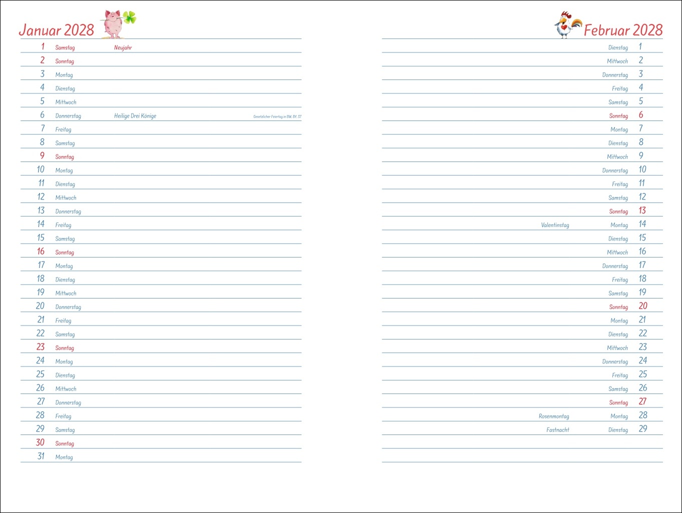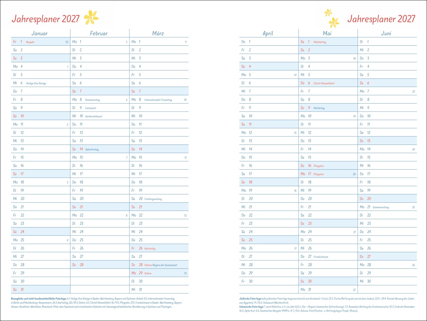 • Ein Kalenderbuch für alle Ansprüche: Mit zahlreichen Extras wie Einstecktasche, Stundenplänen, Reiseplanung und vielem mehr