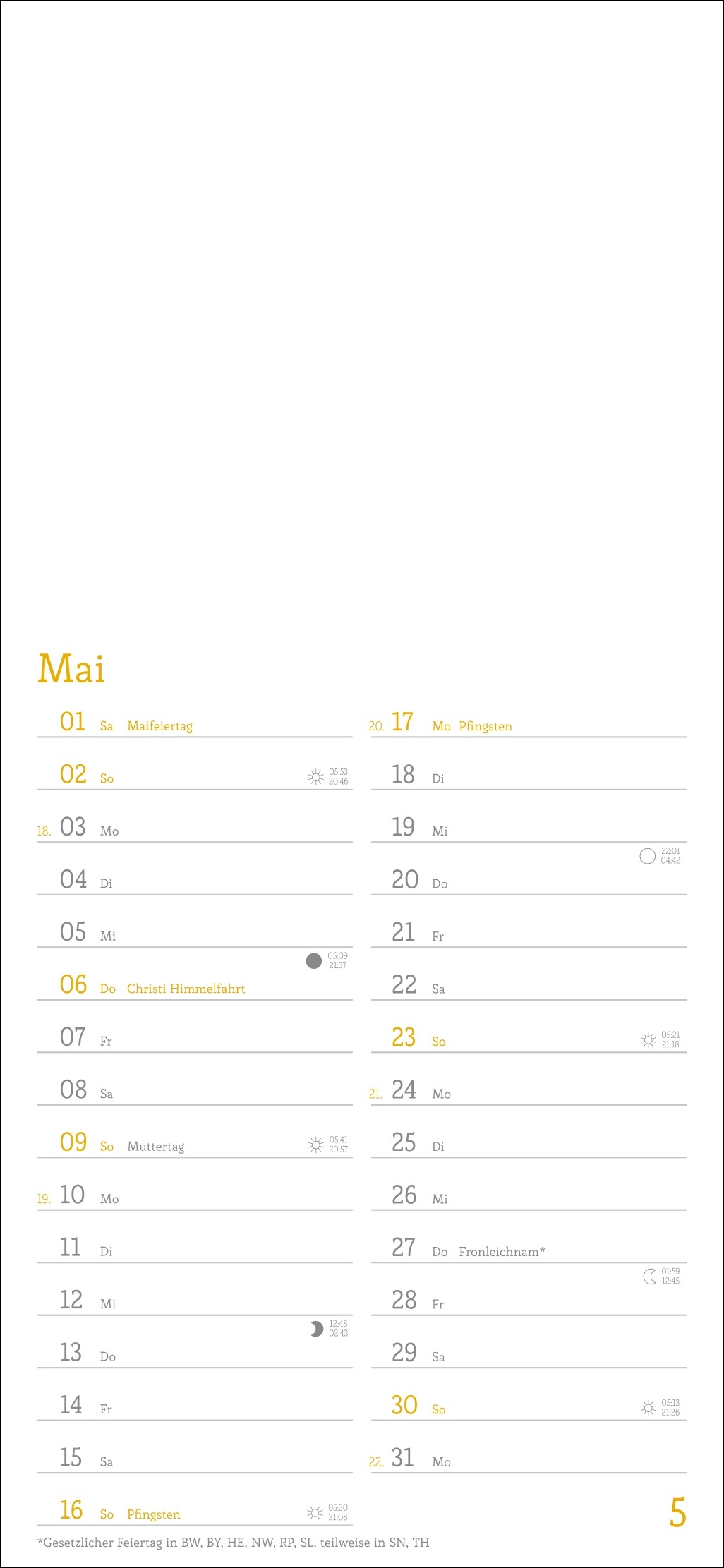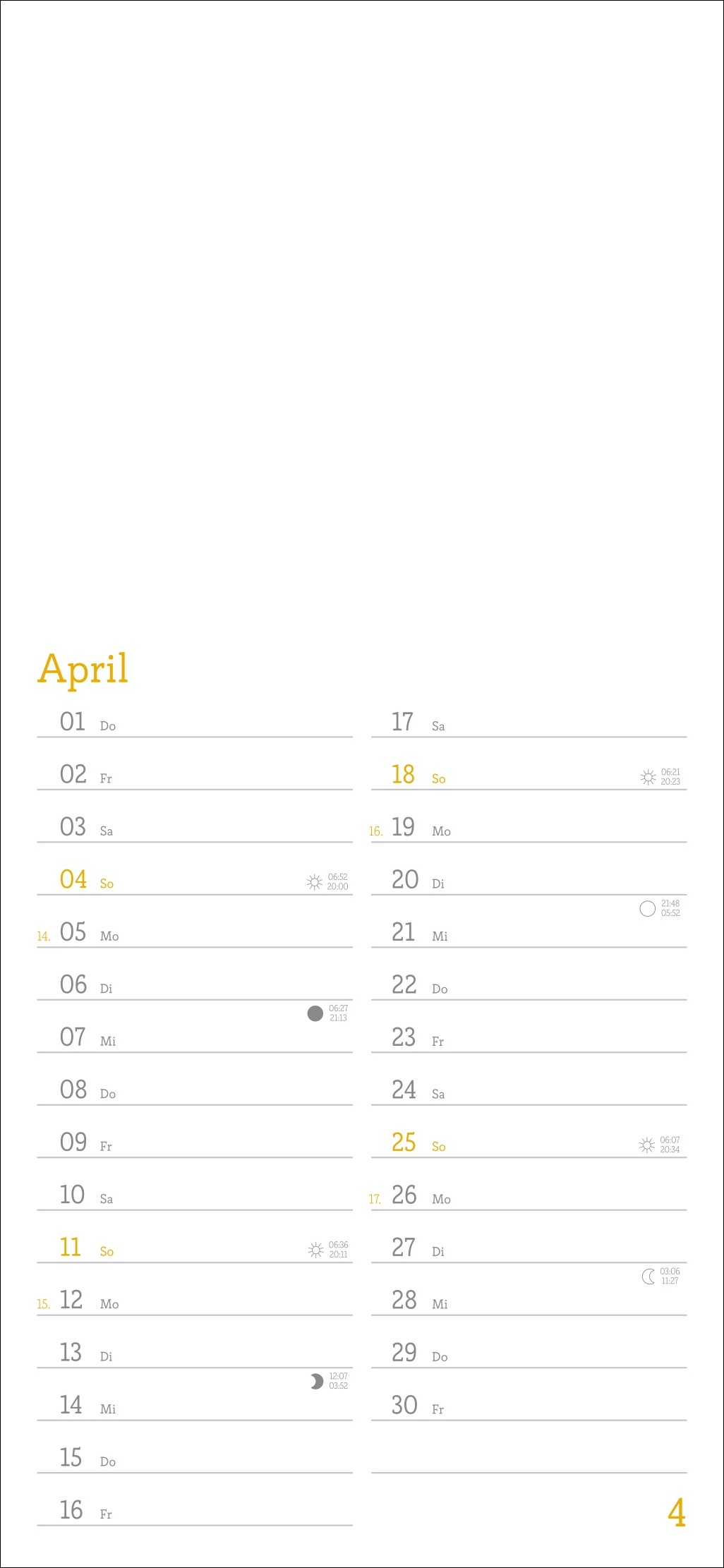 • Monatskalender mit viel Platz für Eintragungen im praktischen 16 x 34,7 cm-Langformat: Eine Bereicherung selbst für die kleinste Küche