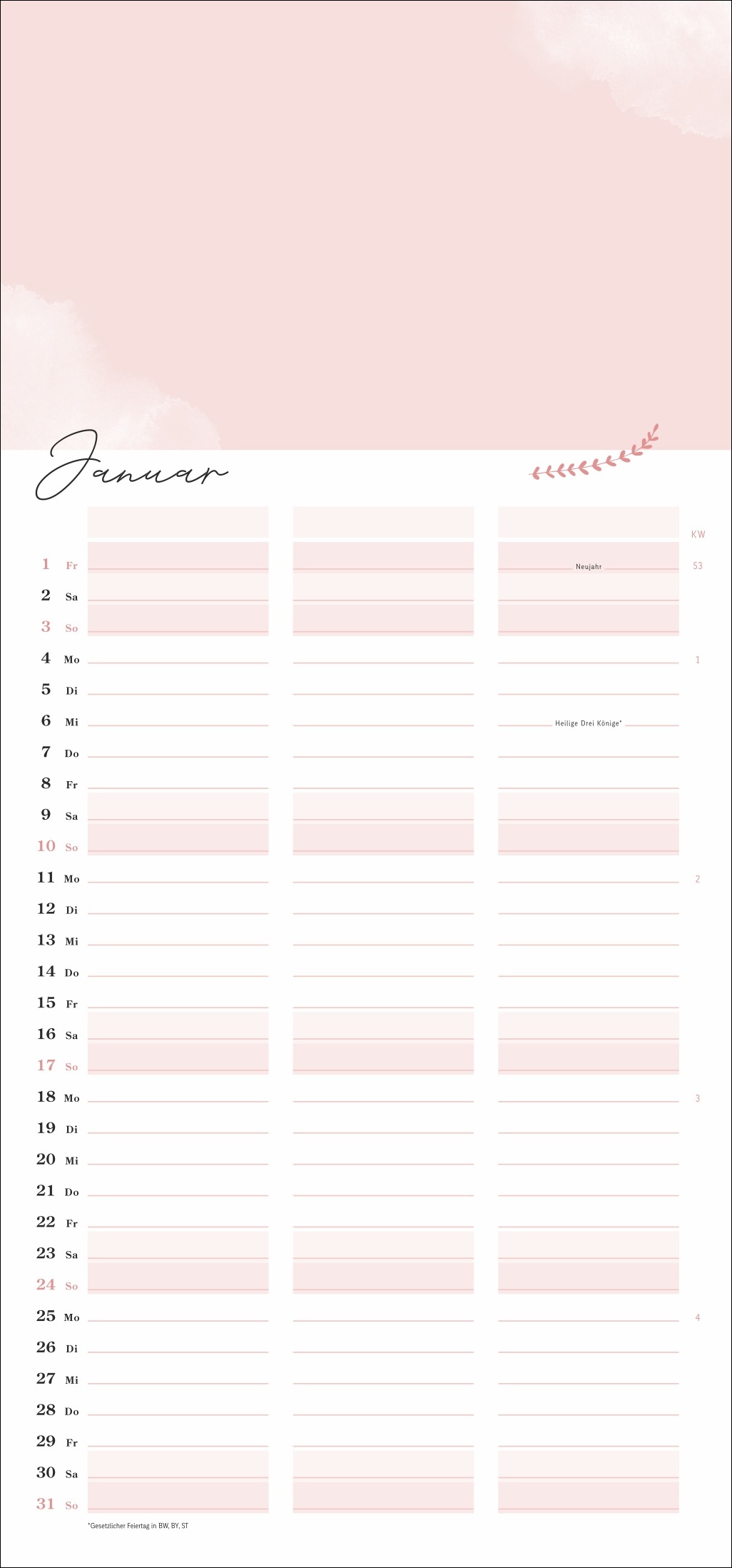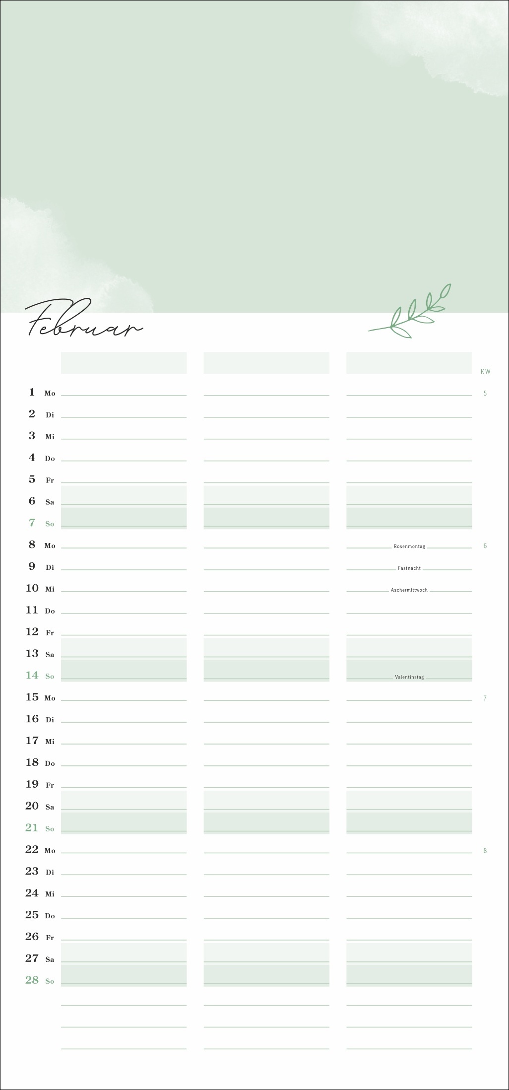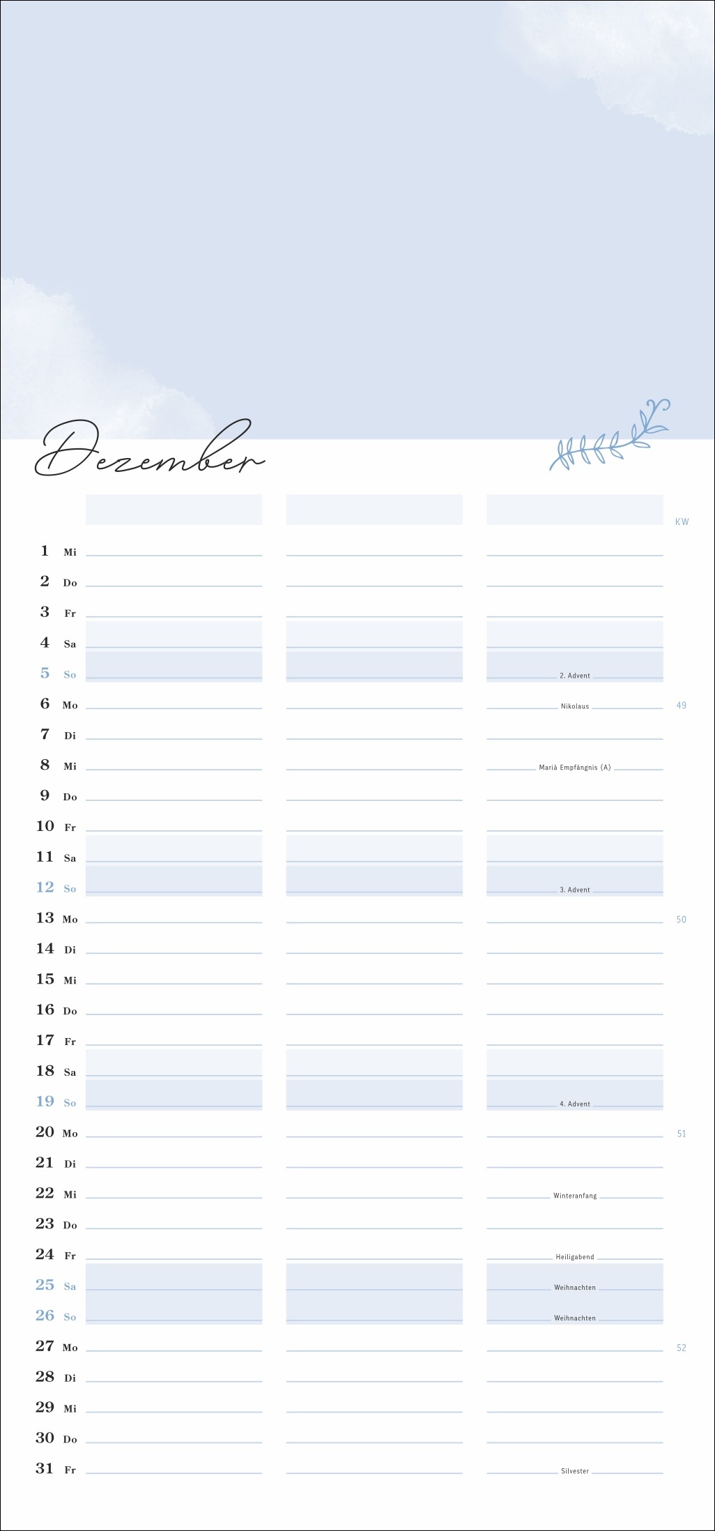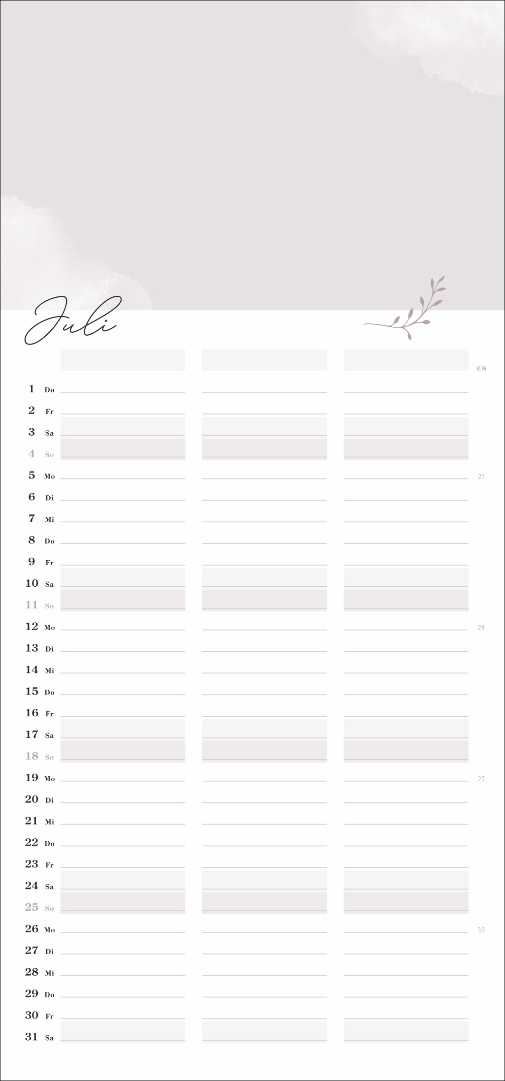 - Drei Spalten für Termine: Der Planer für zwei 2027 bietet viel Platz für Organisatorisches
