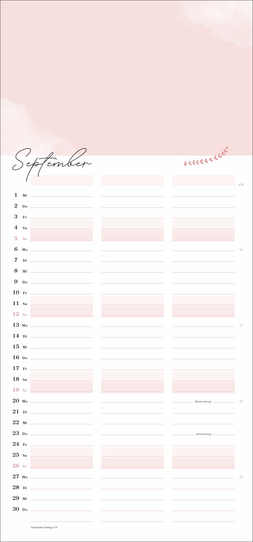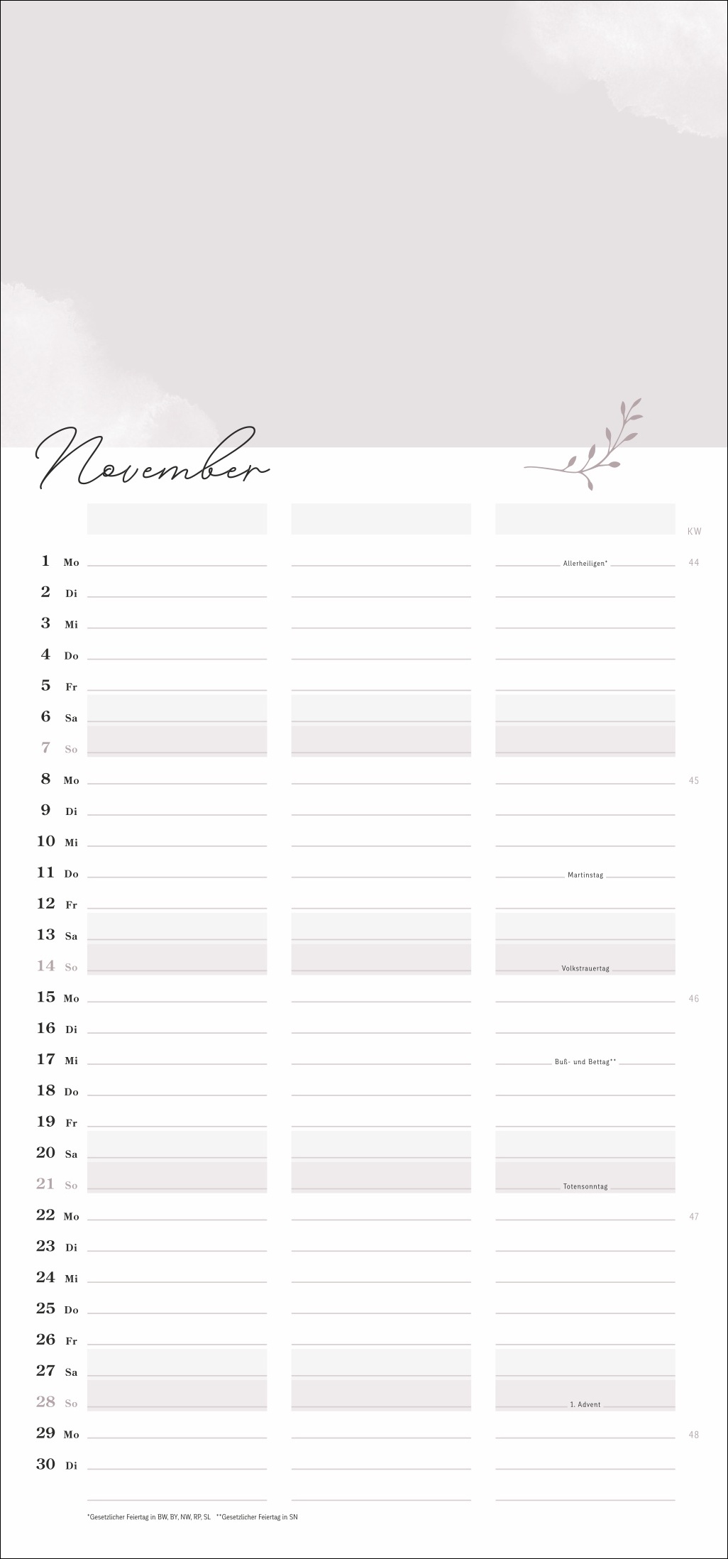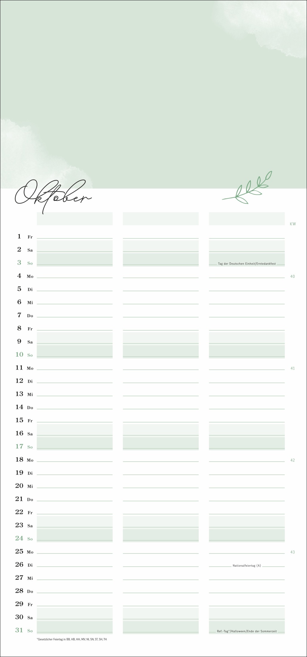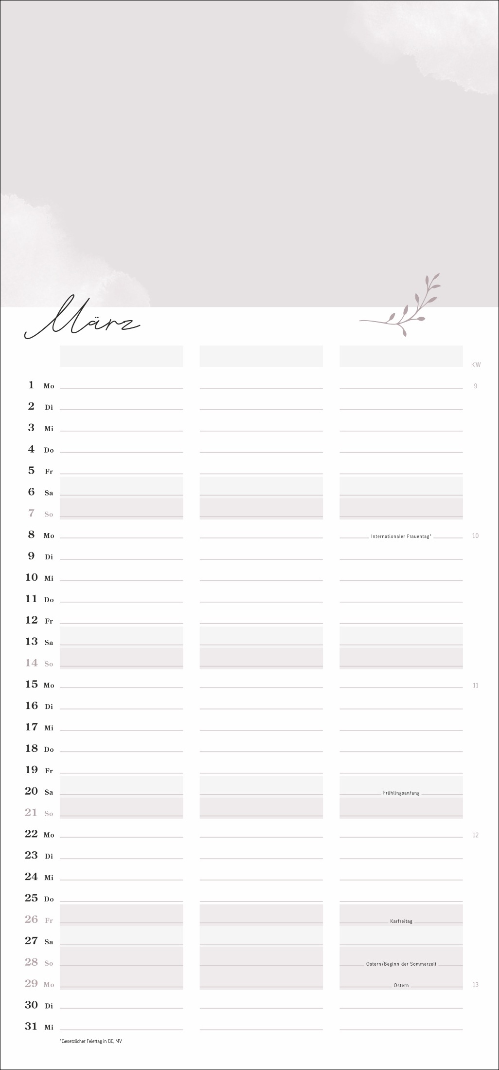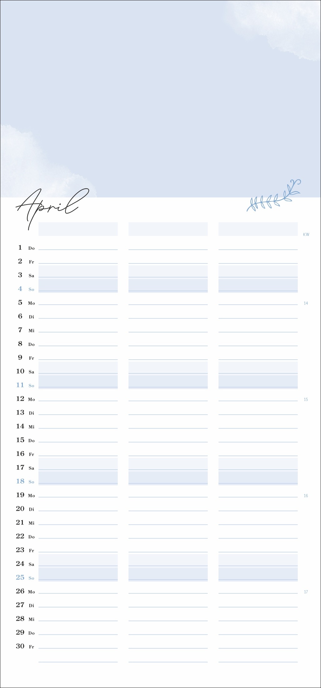 - Drei Spalten für Termine: Der Planer für zwei 2027 bietet viel Platz für Organisatorisches