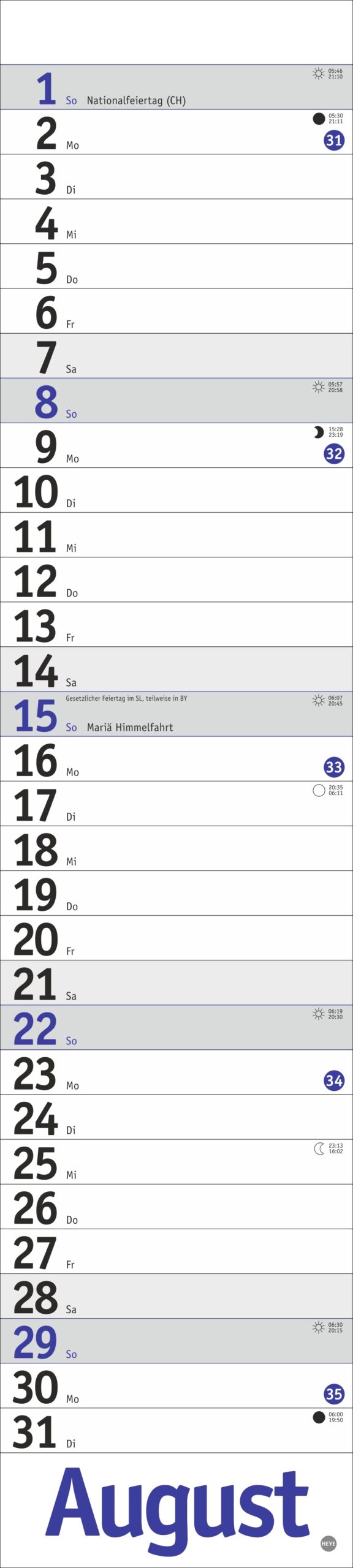 - Für alle, die das Terminchaos schlicht und einfach im Griff haben wollen: Die neutralen Kalender von Heye im Athesia Kalenderverlag