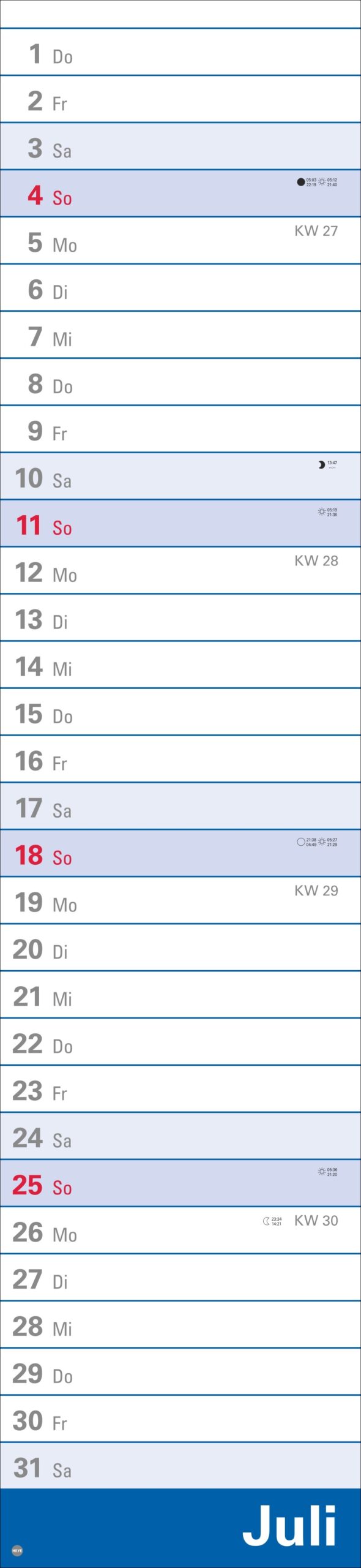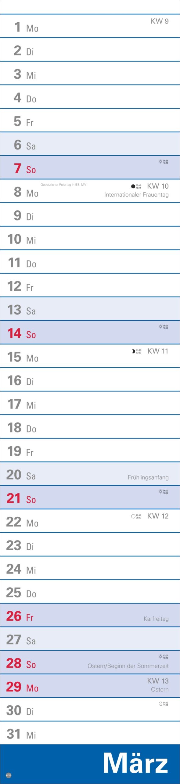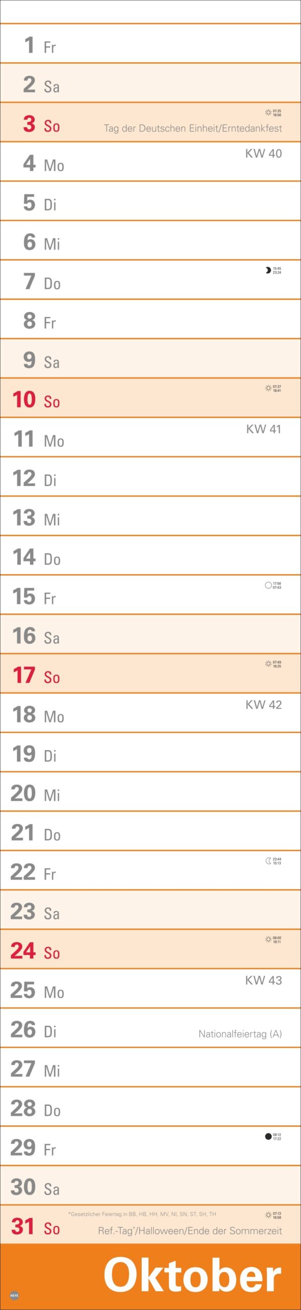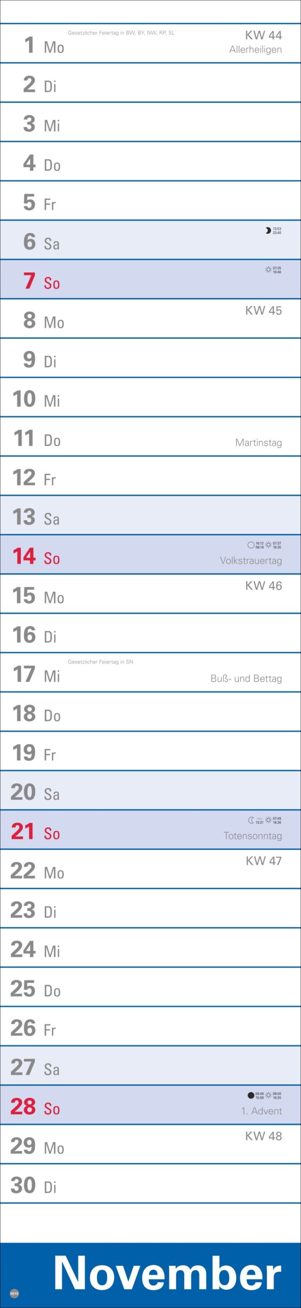 - 16 x 70 cm sind viel Raum für Terminübersicht, wichtige Daten und vorausschauende Planung