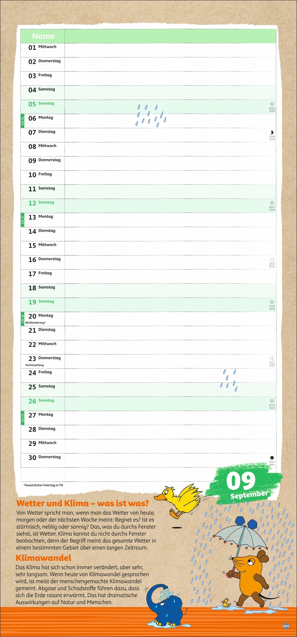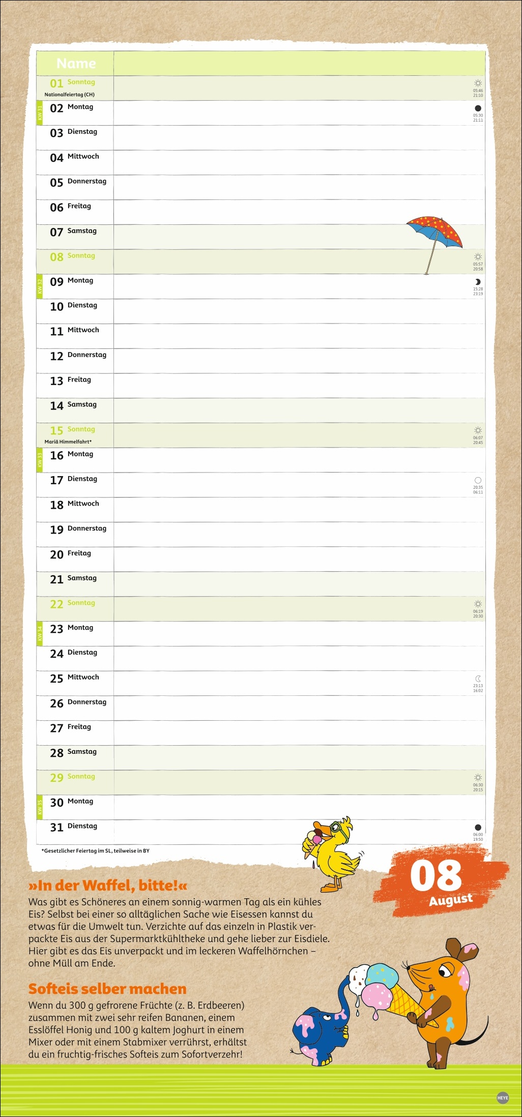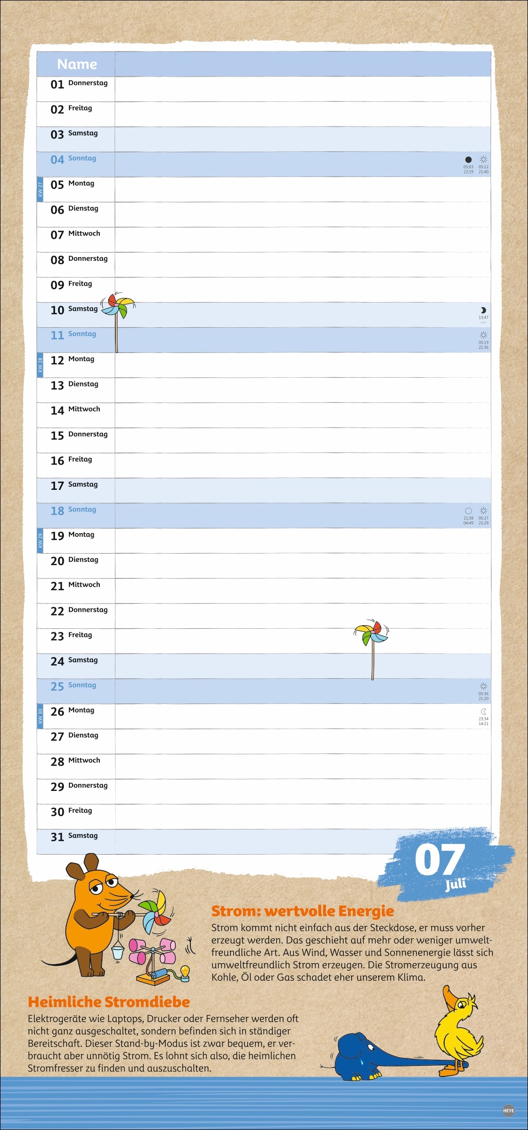 • Die Maus jetzt auch im Familienplaner: Umweltbildung und Organisationshilfe in einem