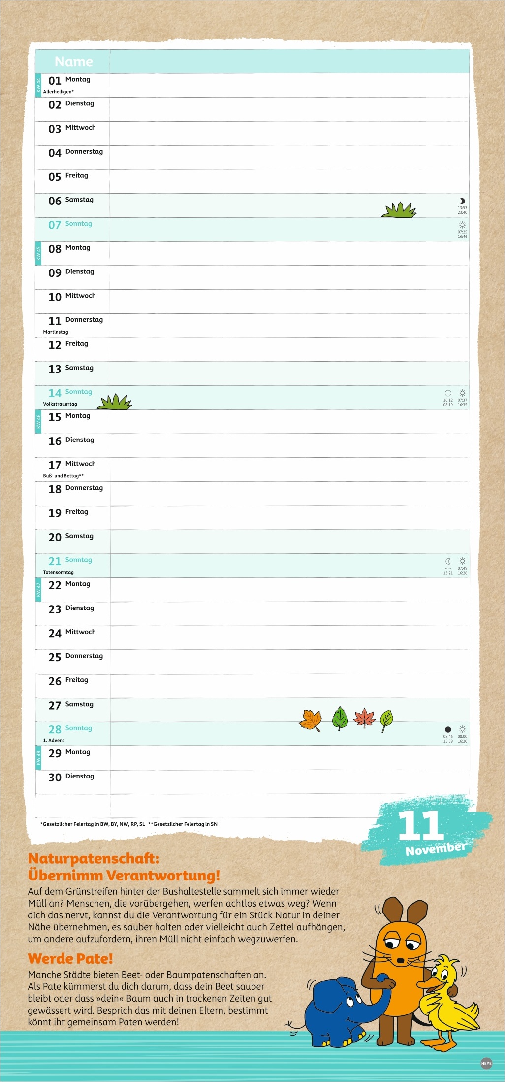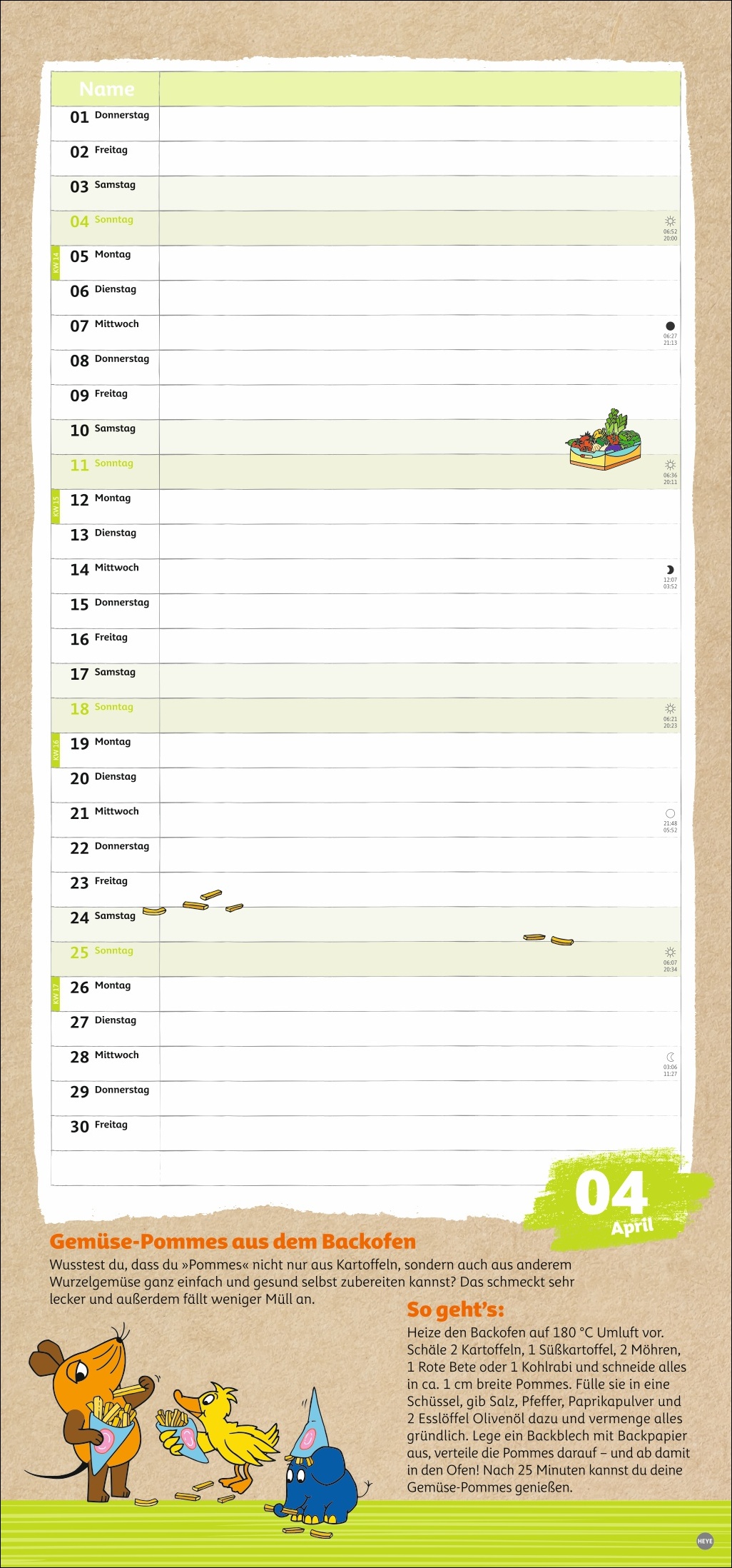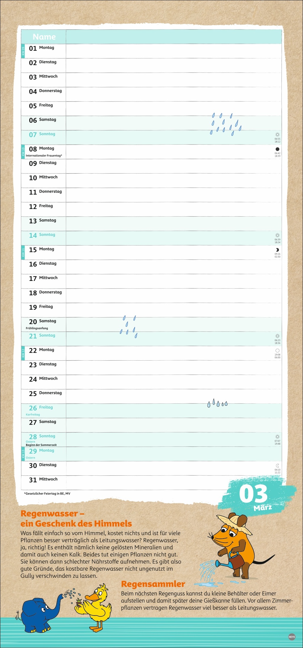 • Die Maus jetzt auch im Familienplaner: Umweltbildung und Organisationshilfe in einem