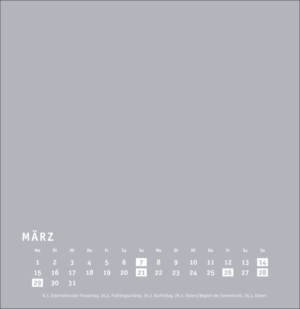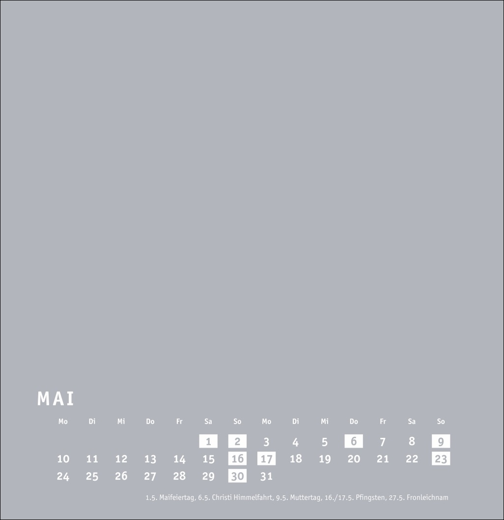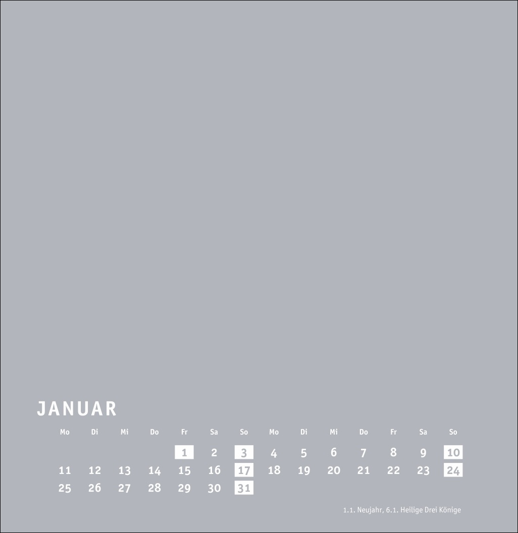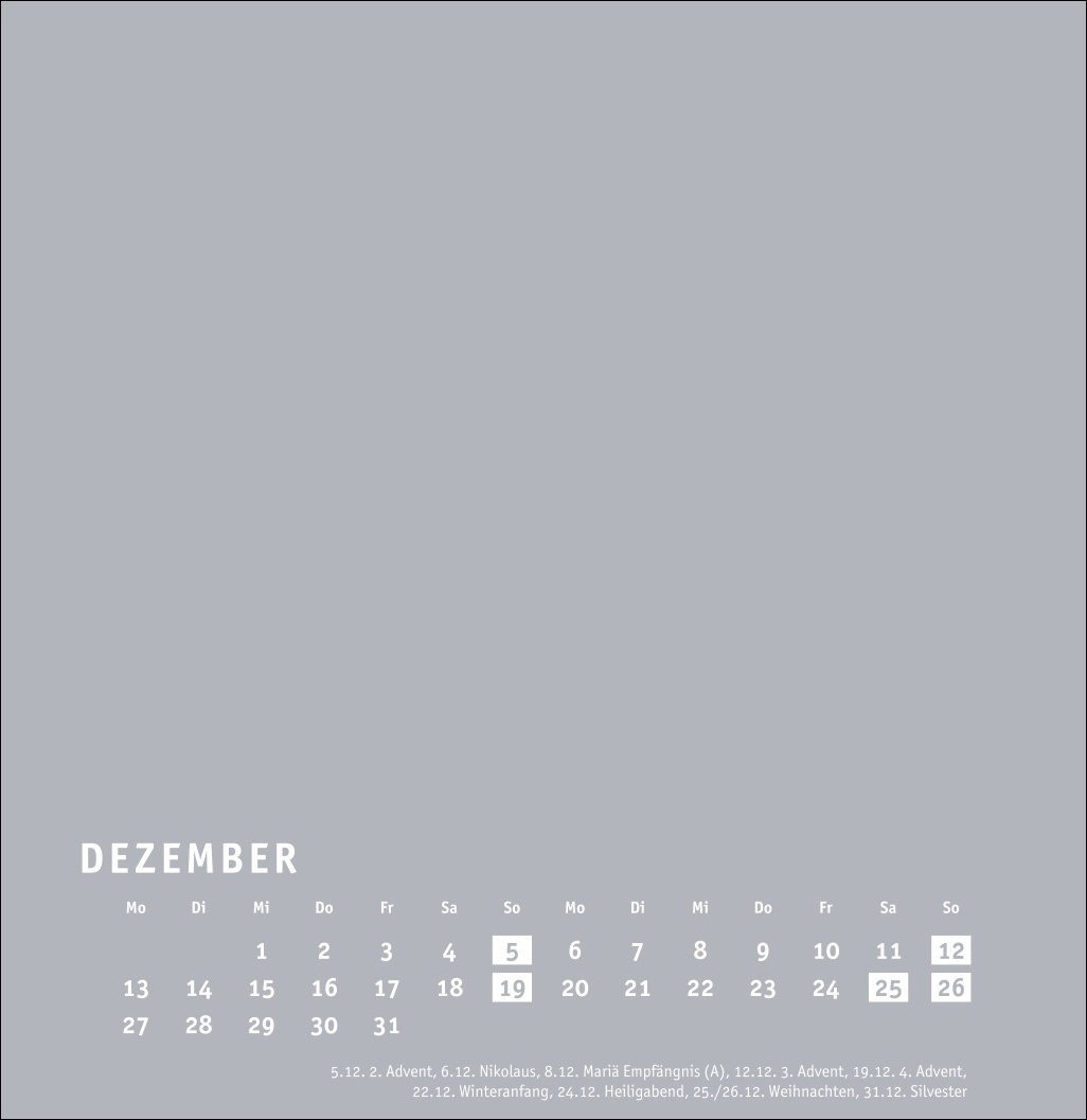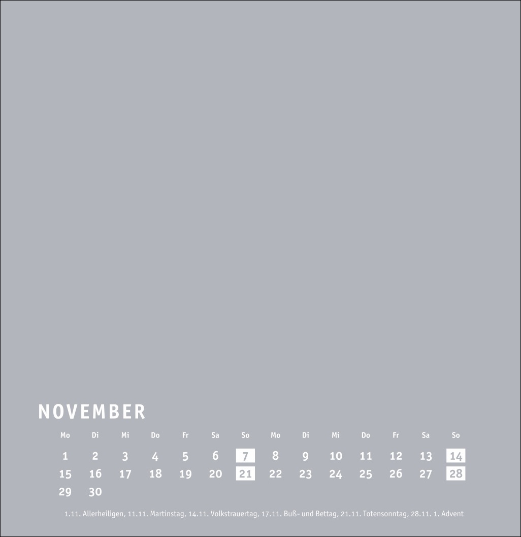 - Großer neutraler Monatskalender (32 x 33cm) in edlem Silbergrau und auf hochwertigem Karton