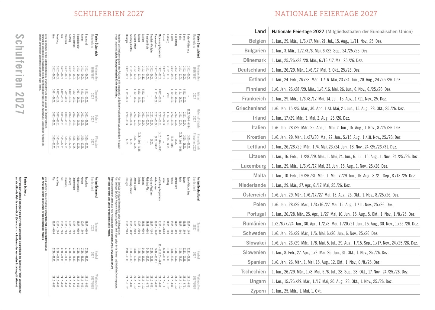 - Das Büro für unterwegs: Taschenkalender mit zahlreichen Extras wie Jahresübersichten 2027 und 2028, Schulferien und Geburtstagsübersicht