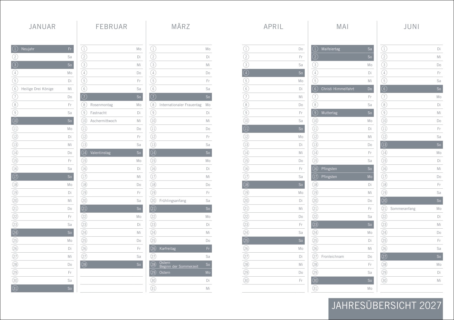 - Edle Timer im frischen Design: Taschenplaner 2027 im Format 11 x 15 cm mit einer Doppelseite Platz pro Woche und Monatsübersichten