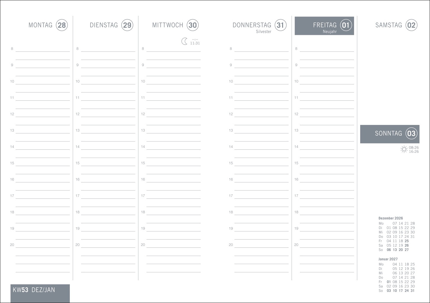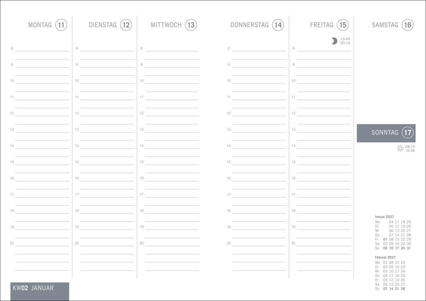 • Edler Timer im unauffälligen Design: Taschenplaner 2027 im Format 11 x 15 cm mit einer Doppelseite Platz pro Woche und Monatsübersichten