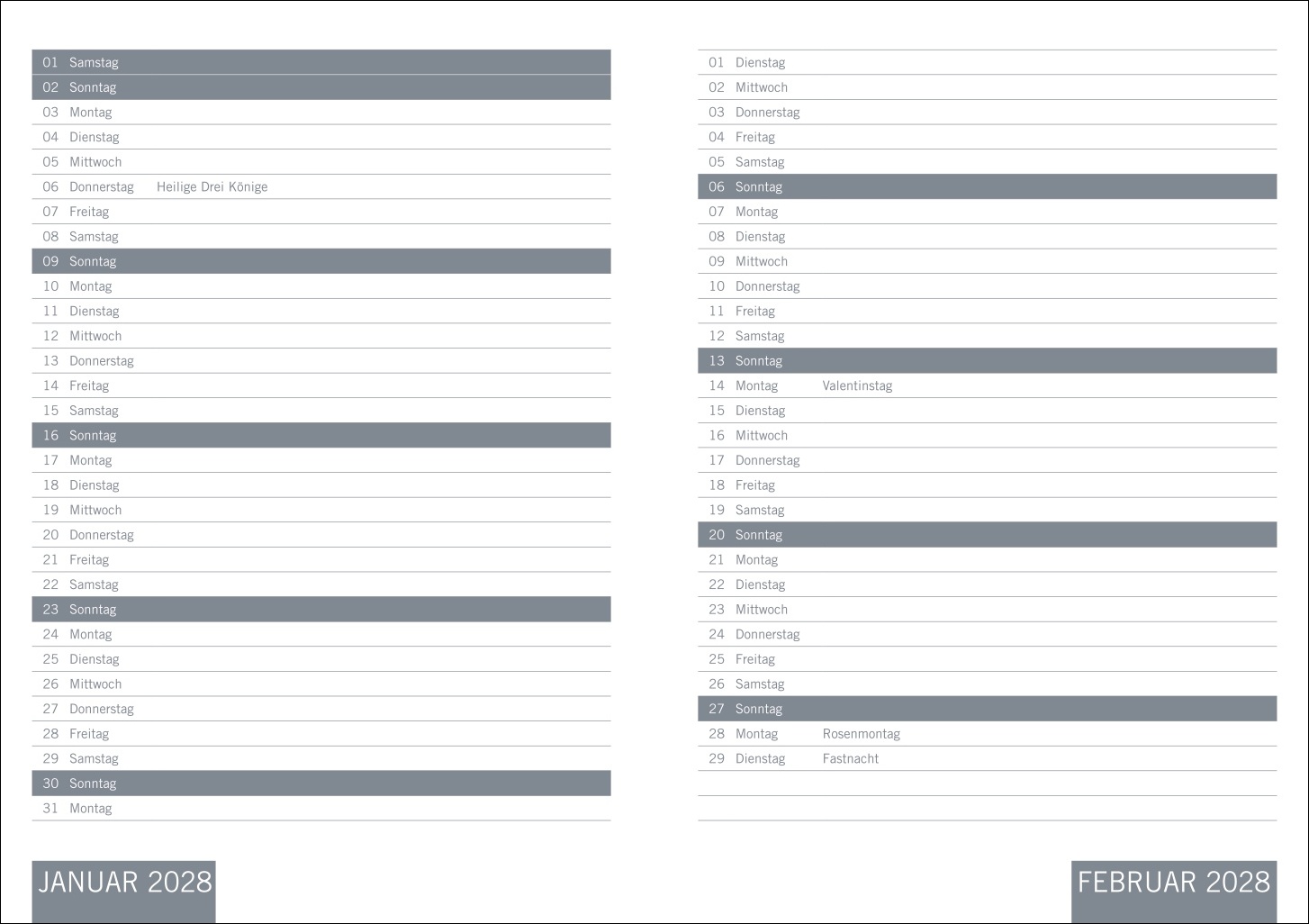 • Bringt Struktur in den Alltag: Organisationshilfe im klassischen Schwarz mit Jahresübersichten und praktischer Vorschau auf 2028