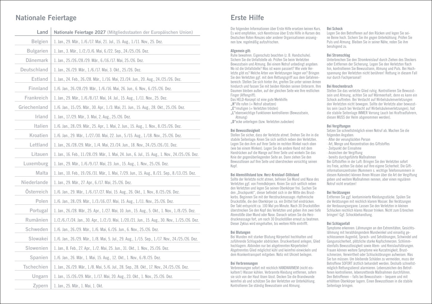 • Das Büro für unterwegs: Terminplaner für die Handtasche mit nationalen Feiertagen, mit dem Sie von überall ihre Verabredungen organisieren können