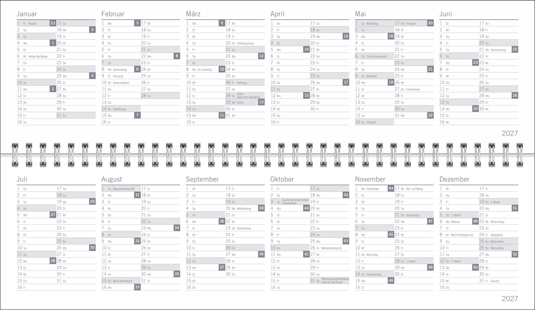 • So geht Planen praktisch von alleine: Spiral-Kalender 2027 für alle wichtigen Meetings, Verabredungen und Geburtstage der Woche