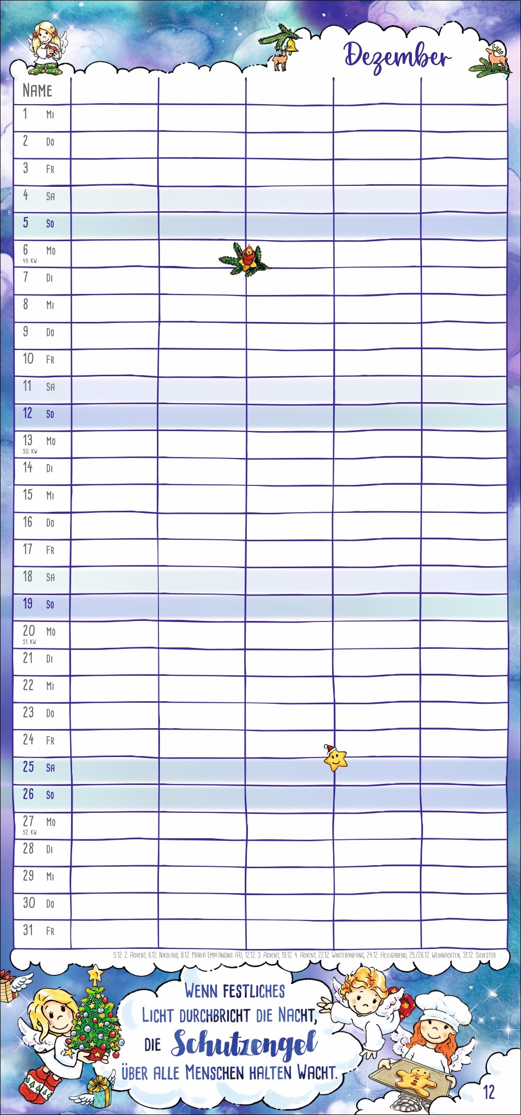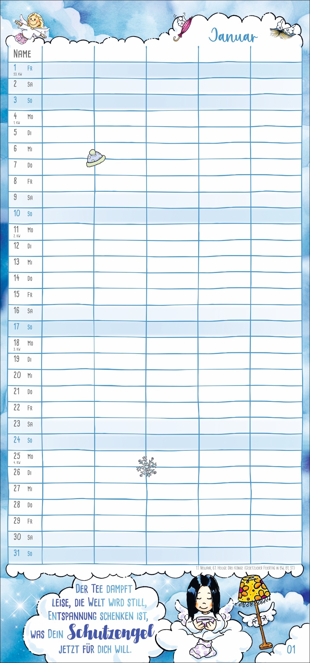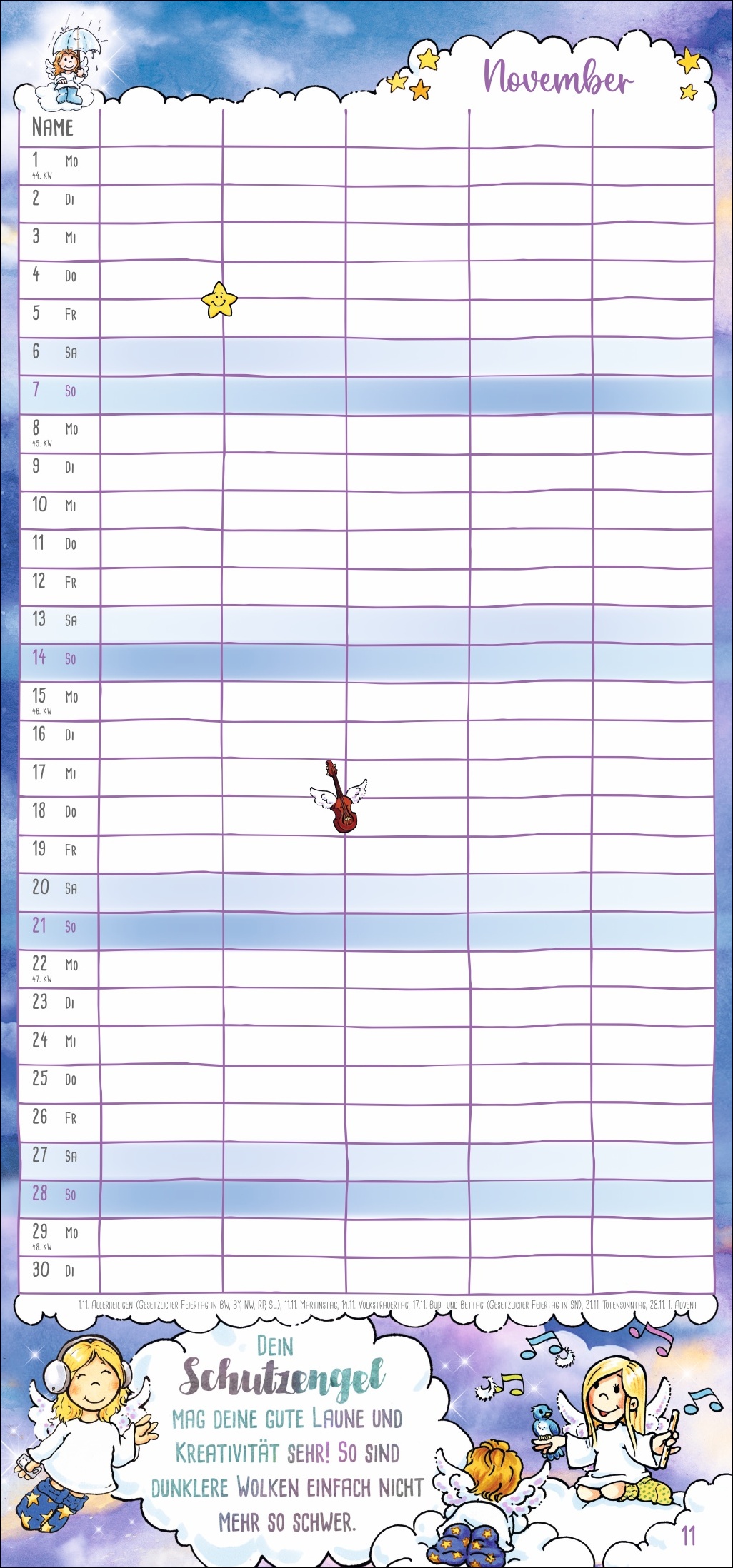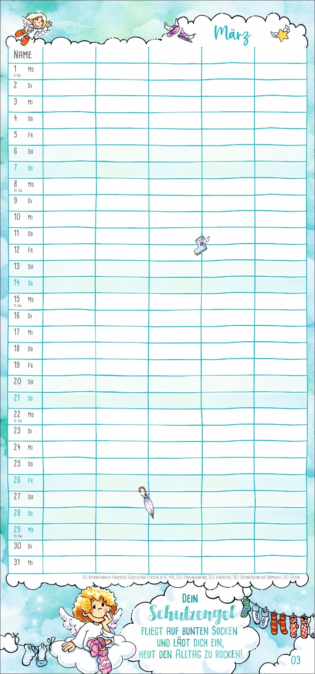 • Himmlische Freude bei jedem Umblättern: Monats-Planer mit niedlichen Beschützern auf Wollsocken und inspirierenden Segenswünschen