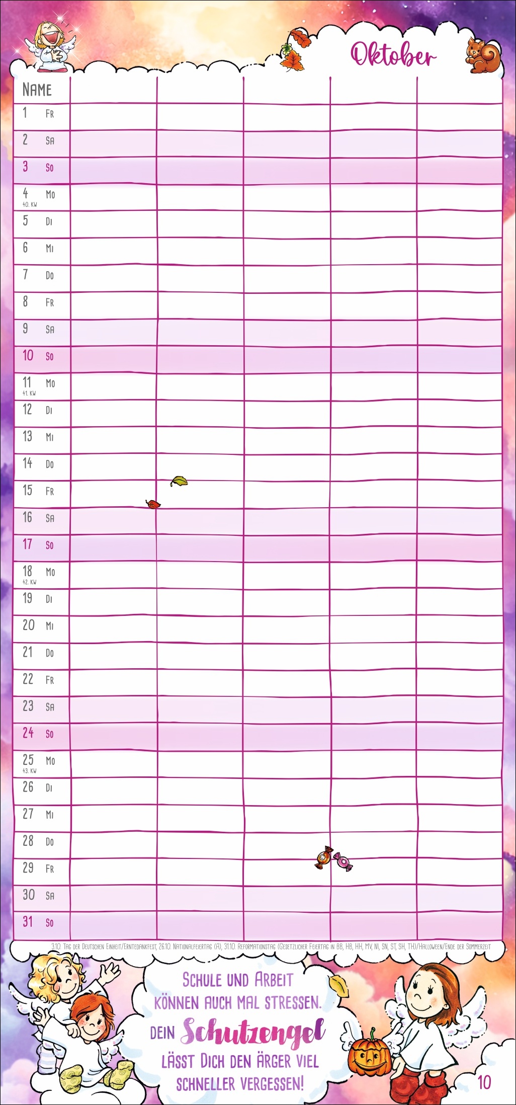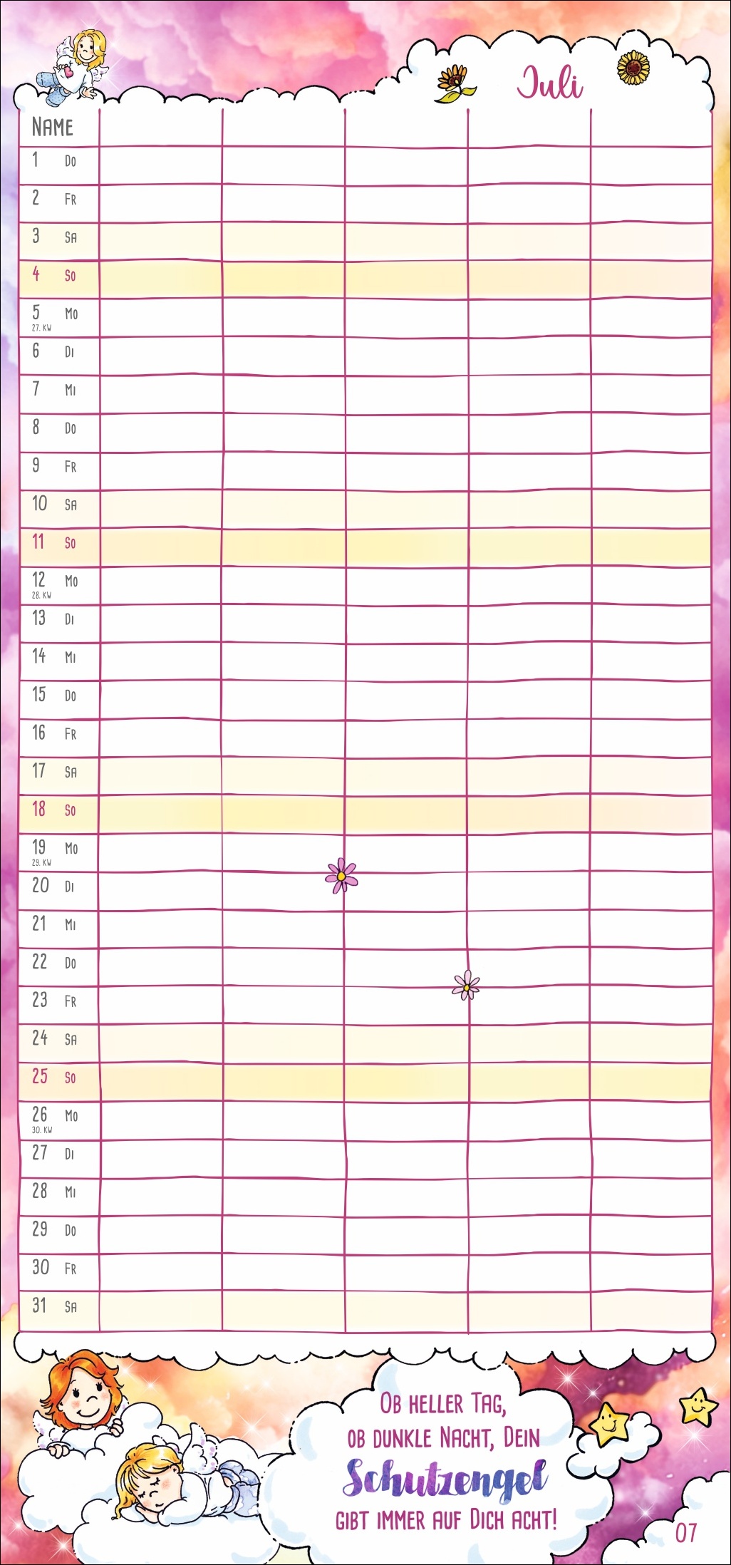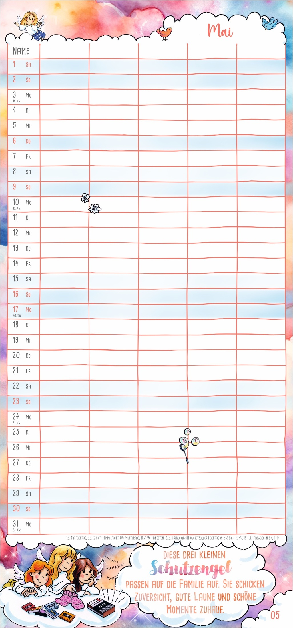 • Mehr Überblick mit unseren erfolgreichen Familienplanern: 5 Spalten Platz für alle Freizeitaktivitäten von Groß und Klein