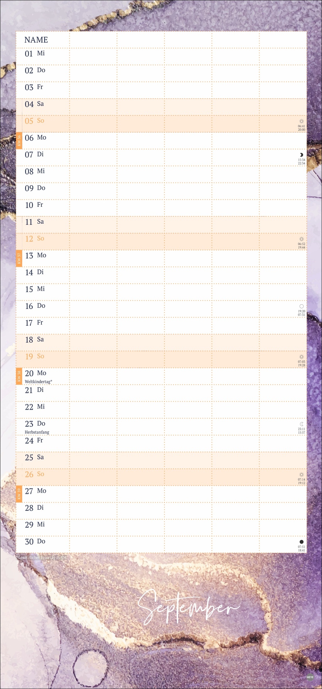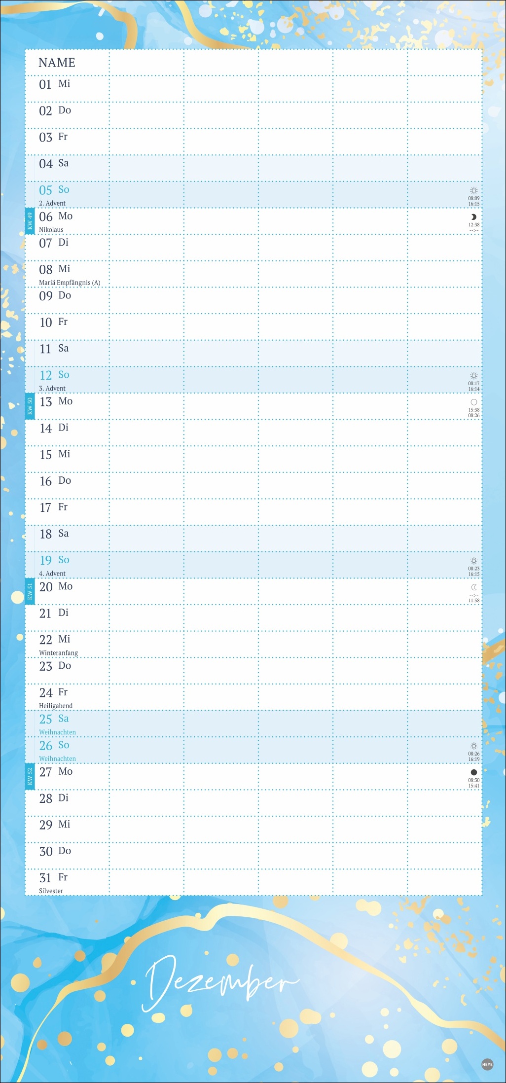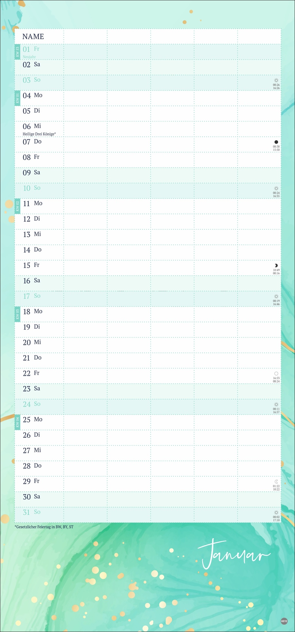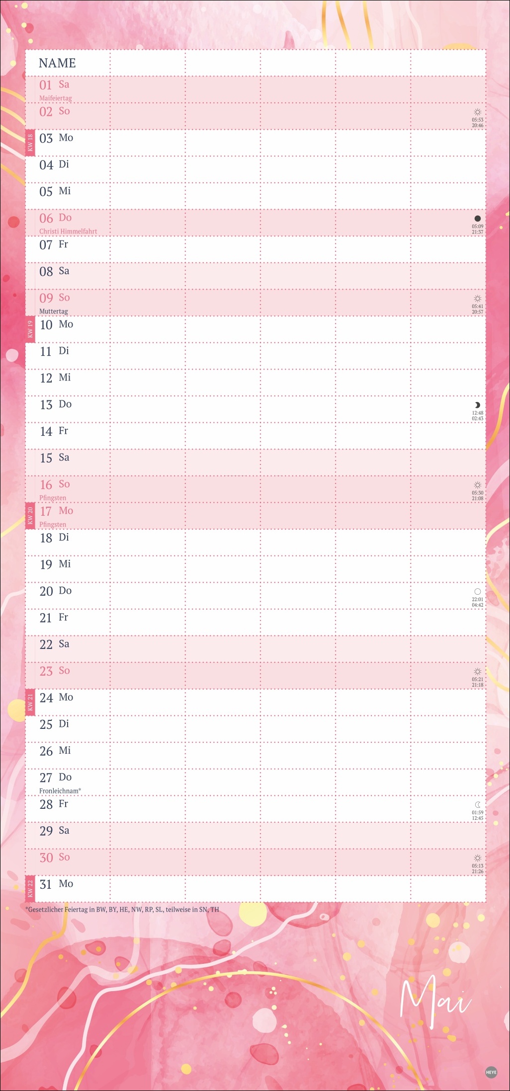 • Für alle, die richtig was vorhaben – unser erfolgreiches Konzept für Familienkalender: 5 Spalten mit ausreichend Platz, im übersichtlichen 21 x 45 cm Format
