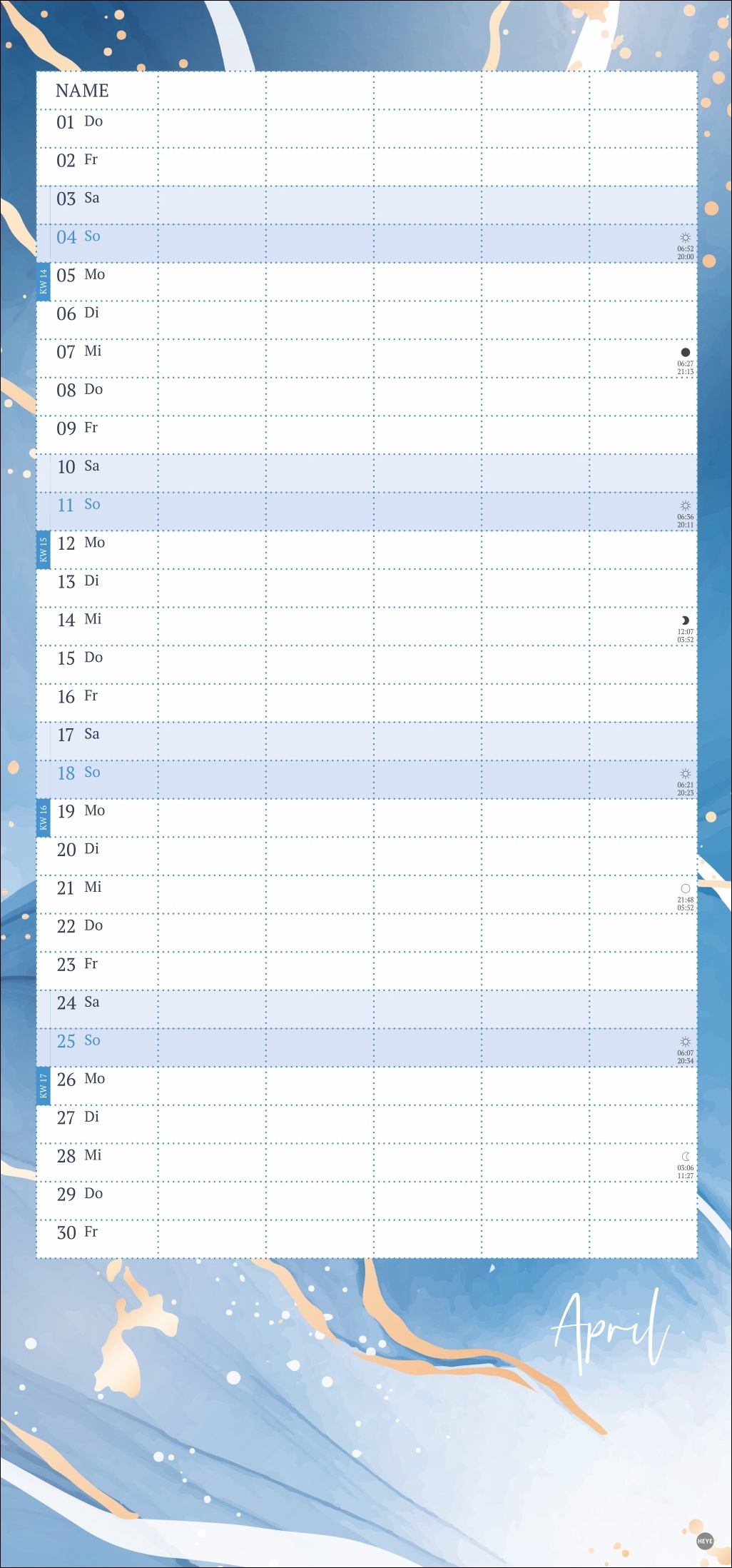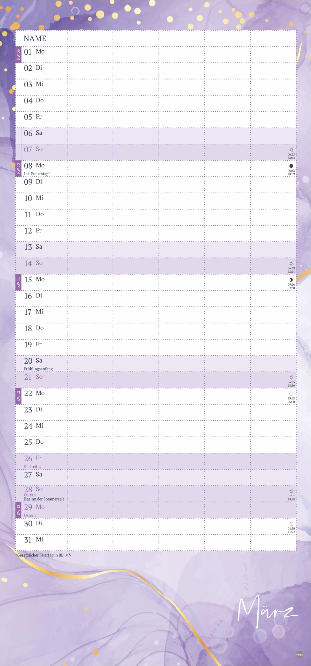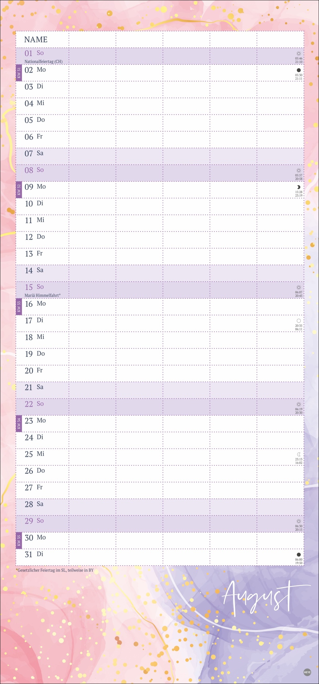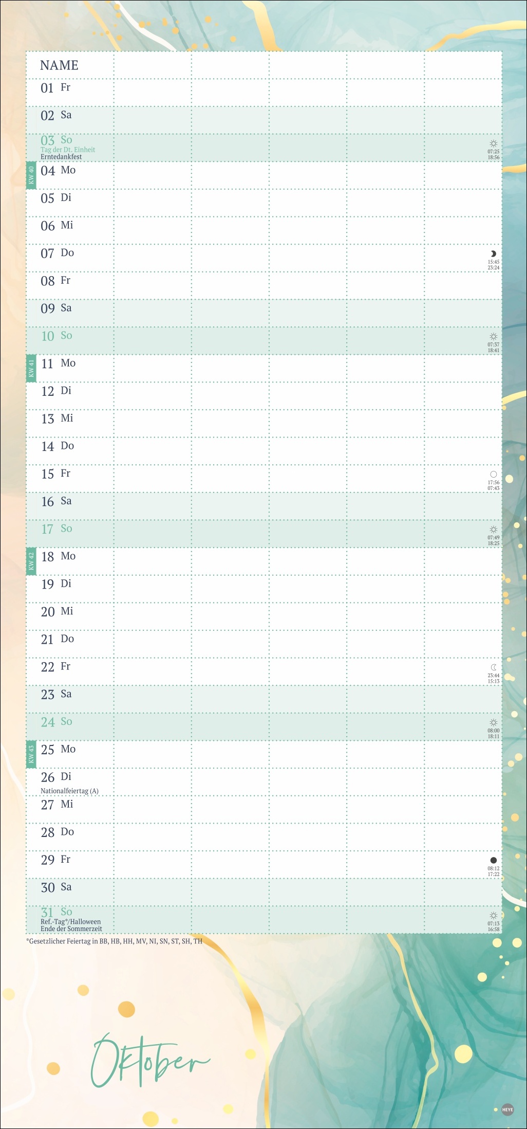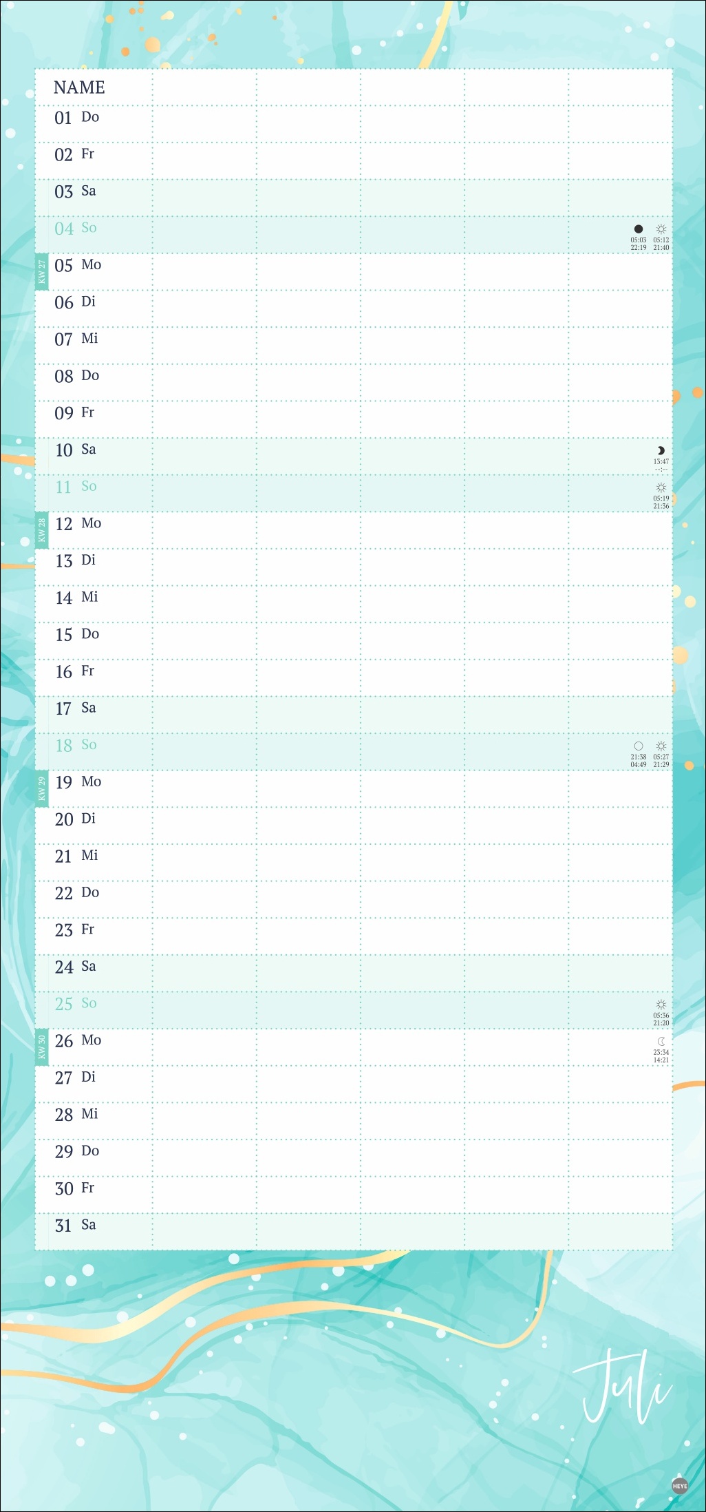 • Für alle, die richtig was vorhaben – unser erfolgreiches Konzept für Familienkalender: 5 Spalten mit ausreichend Platz, im übersichtlichen 21 x 45 cm Format