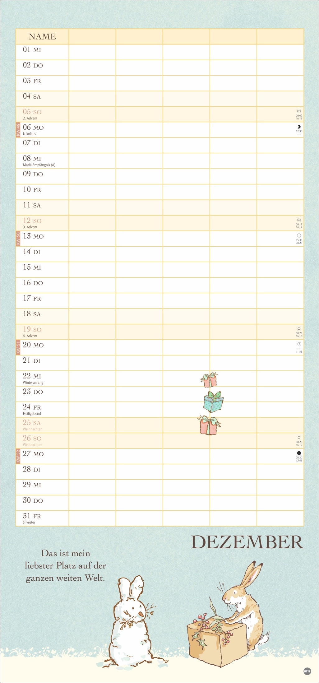 • Ein Familienplaner fürs Herz: Mit bezaubernden Hasen-Motiven und den schönsten Buchzitaten