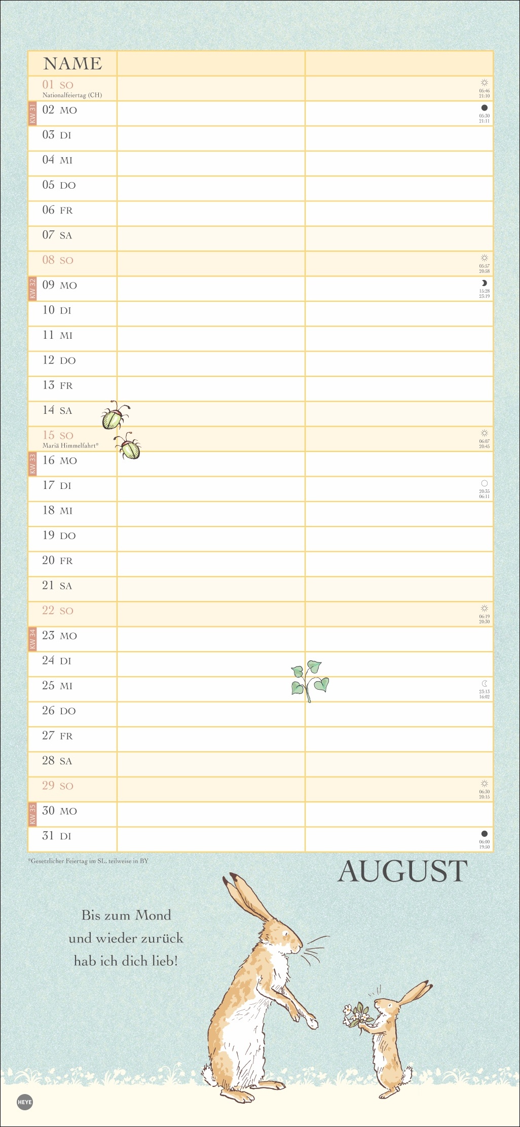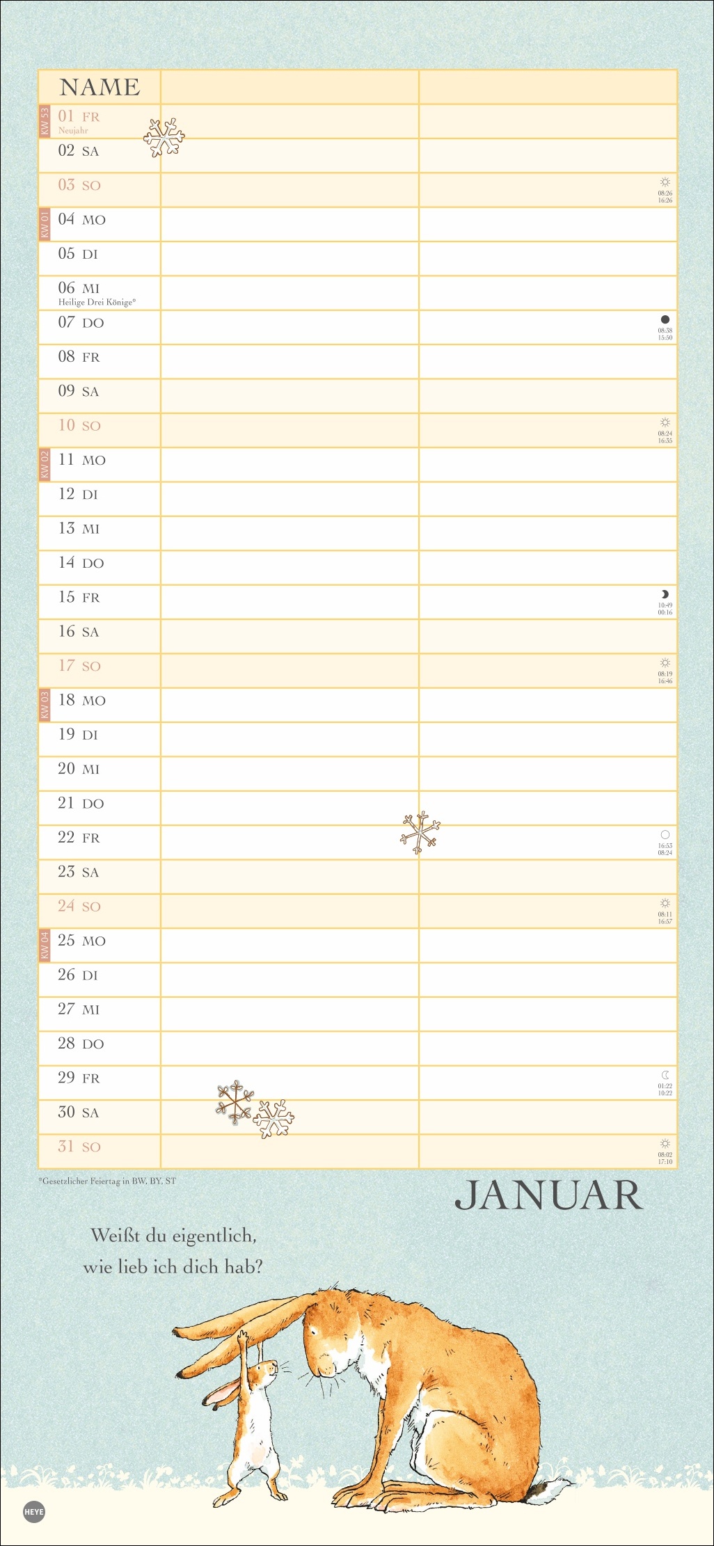 - Ein Wandkalender voller Liebe: Der Partnerplaner mit Zeichnungen und Zitaten aus dem berühmten Buch von Sam McBratney und Anita Jeram