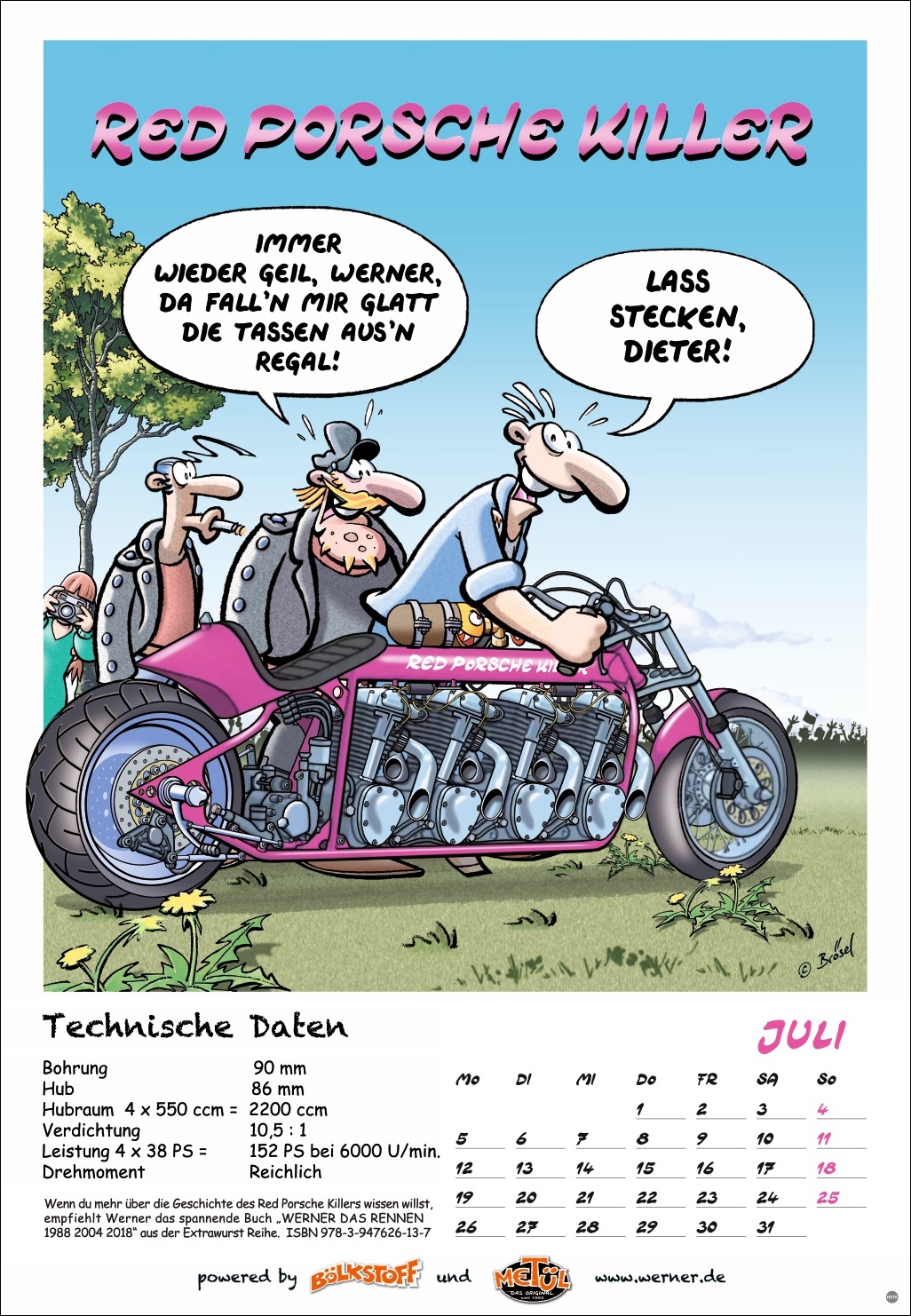• Bölkstoff für die Wand: Kalender im Großformat 37 x 53,5 cm mit Monatskalendarium und den härtesten Sprüchen aus dem Werner-Universum