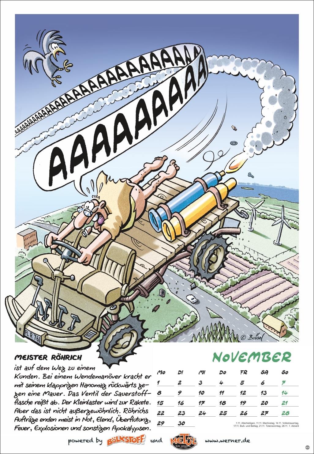 • Warmduscher und Schattenparker aufgepasst: Der neue Werner-Wandkalender 2027 im Posterformat ist da!