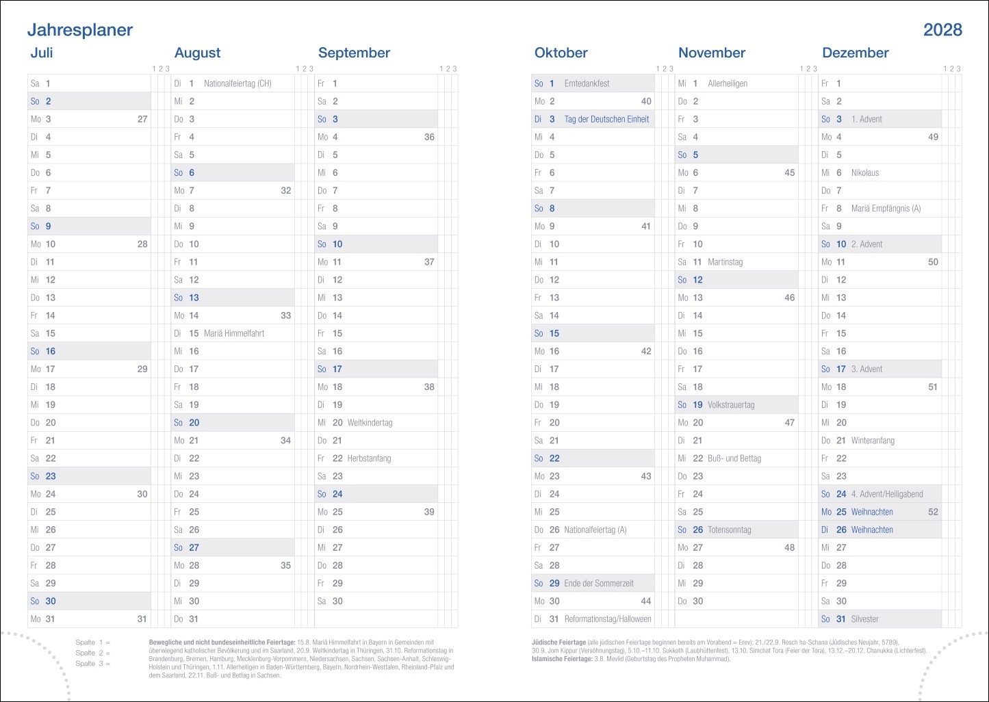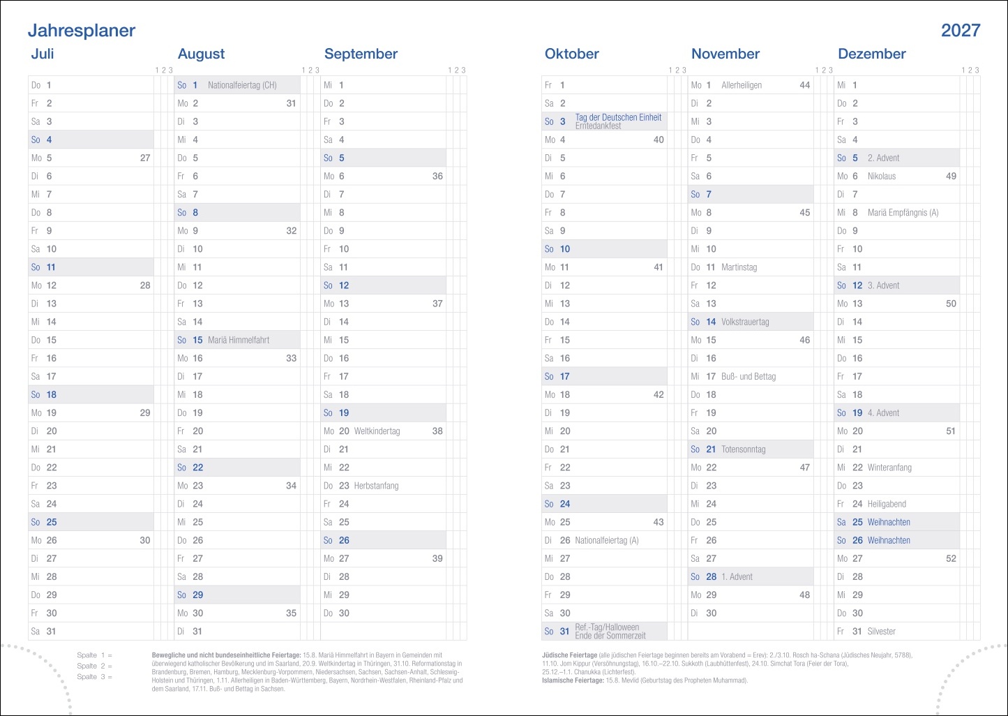 | Kalendarium | Wochenkalendarium |