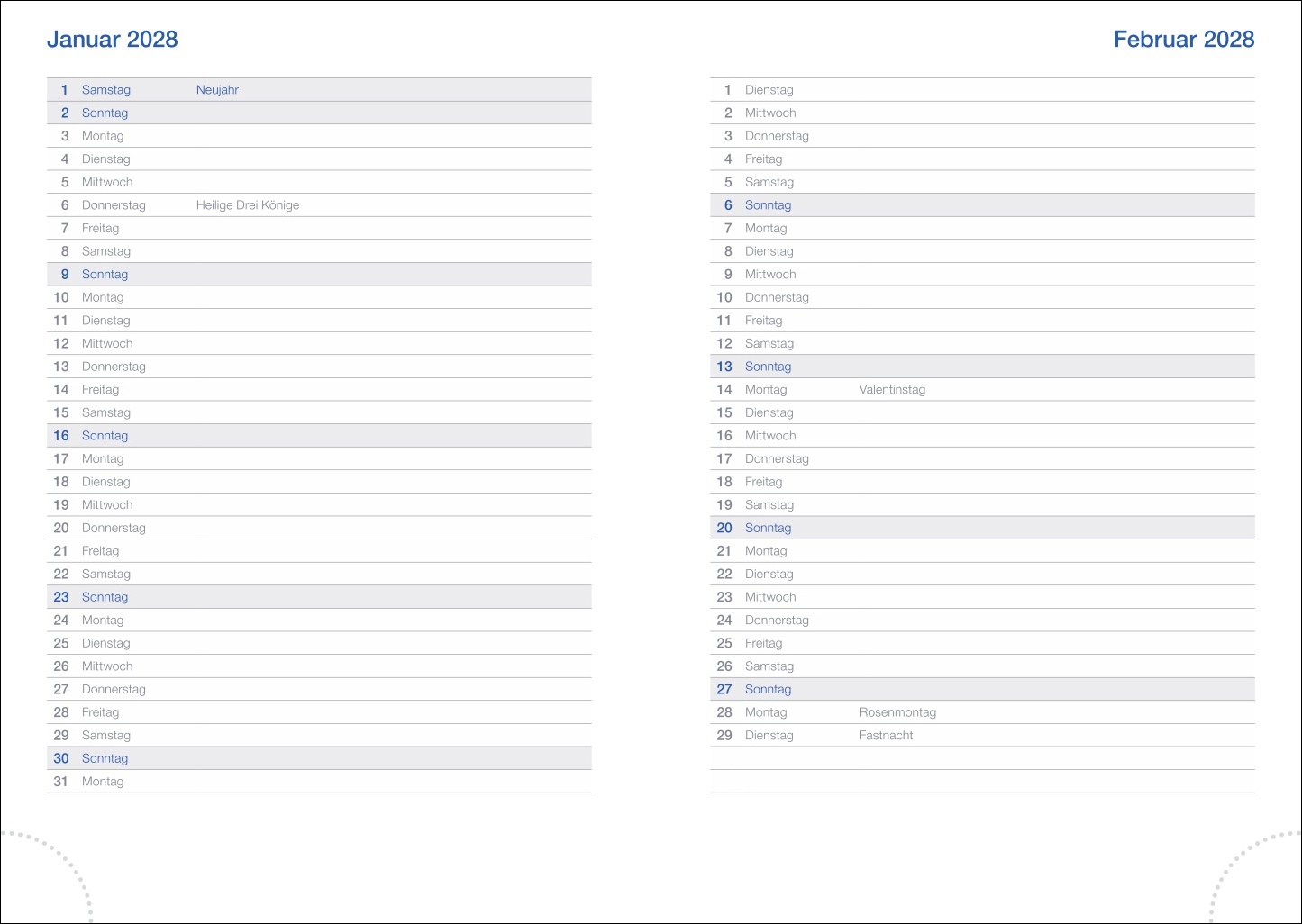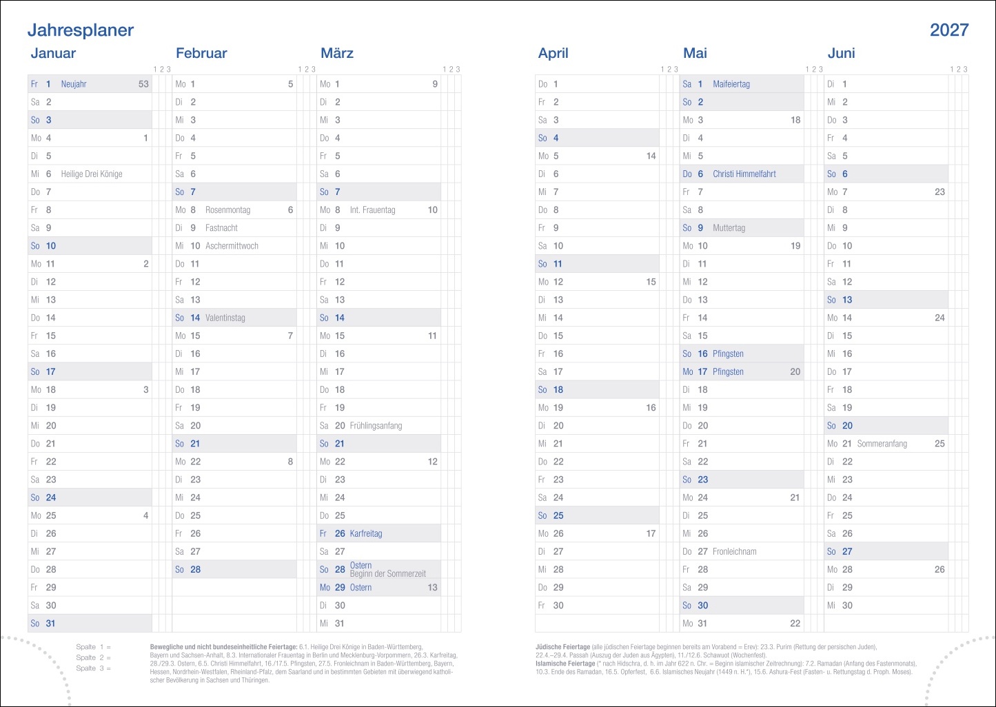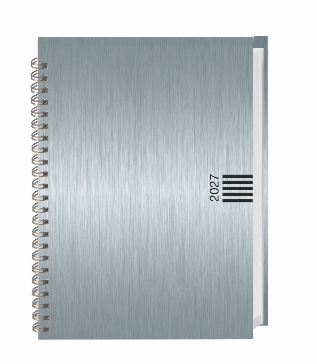 • Organisieren mit Stil: Der Buchkalender im Format A5 mit silbernem Einband vereint Terminübersicht mit edlem Design