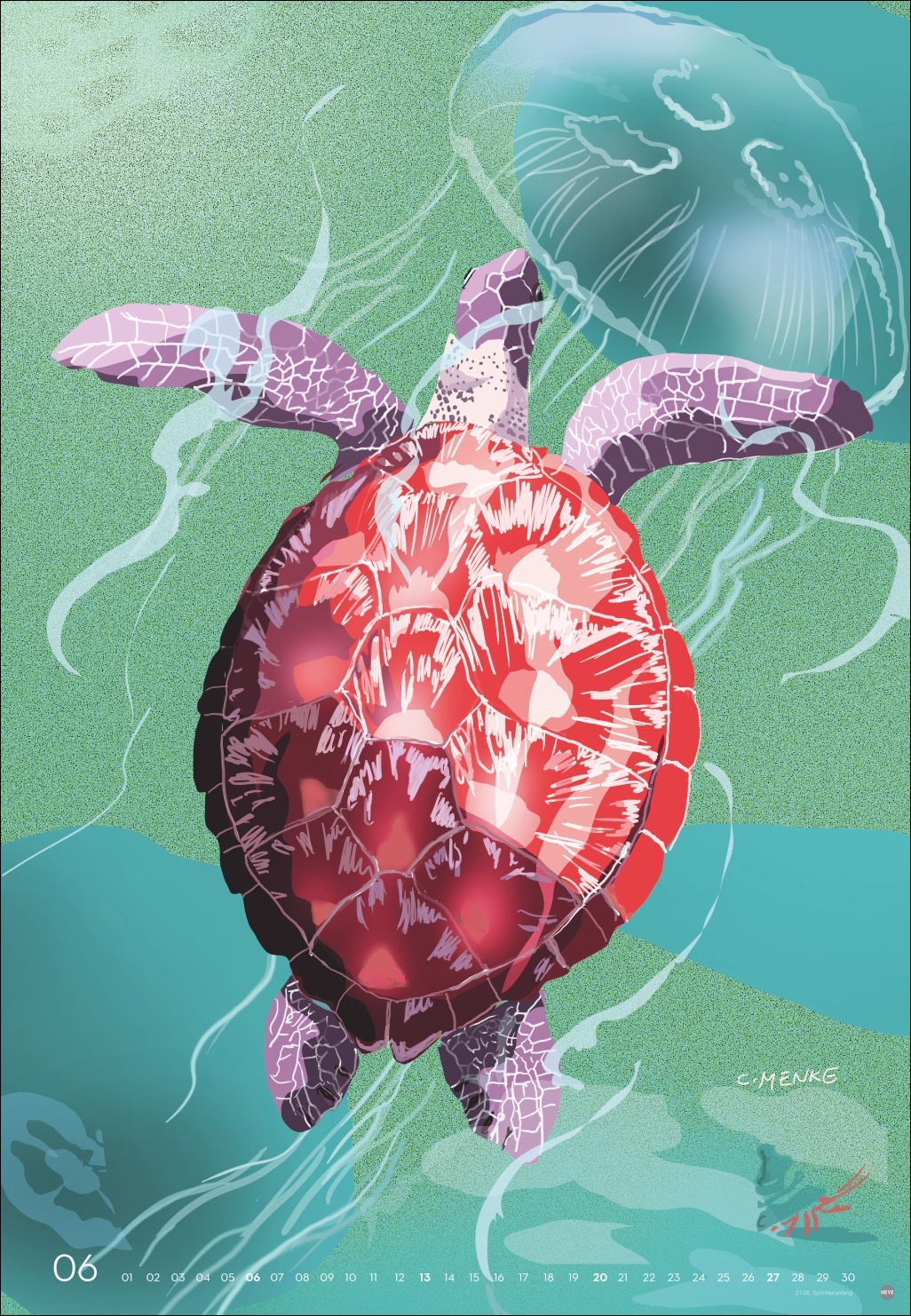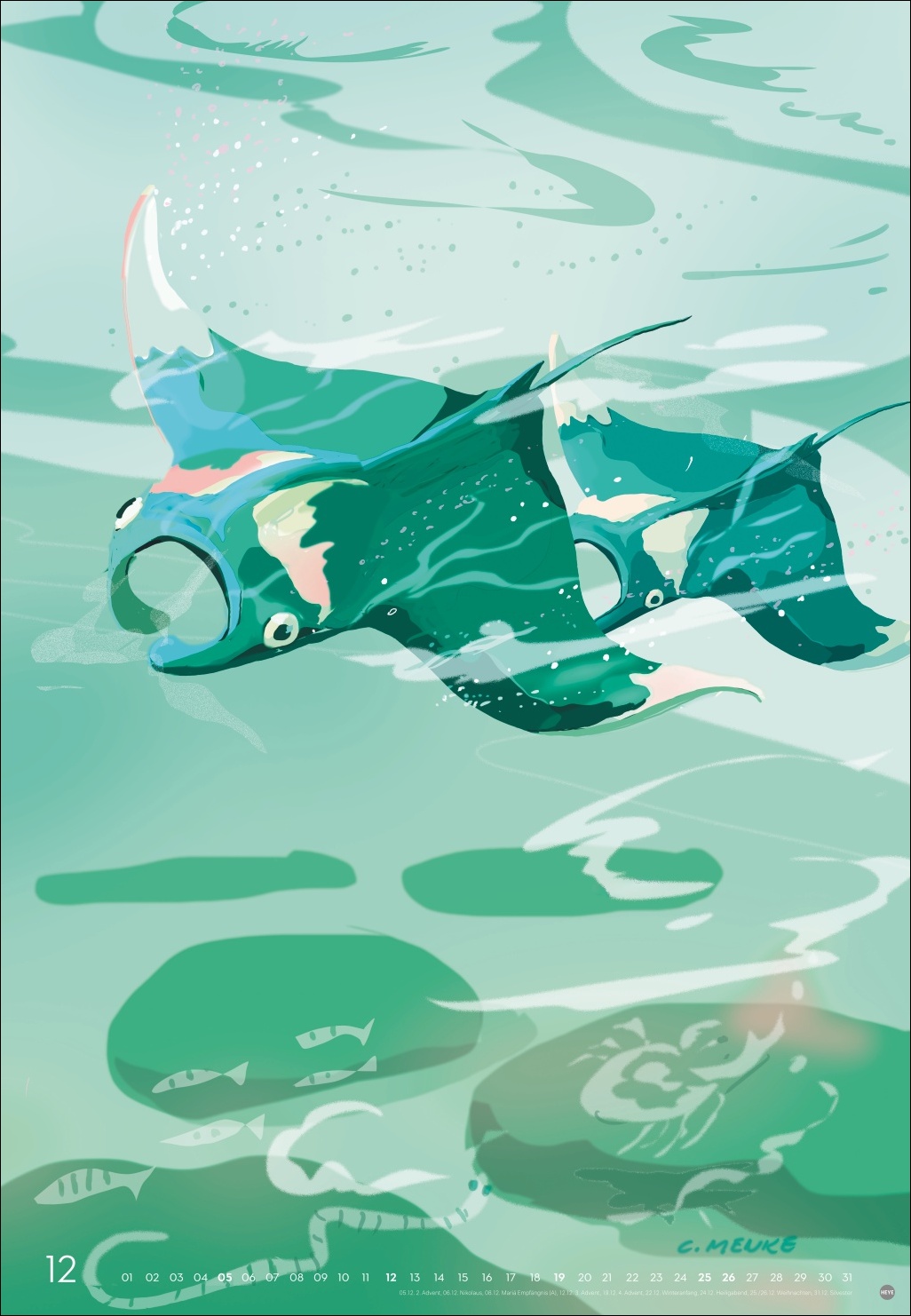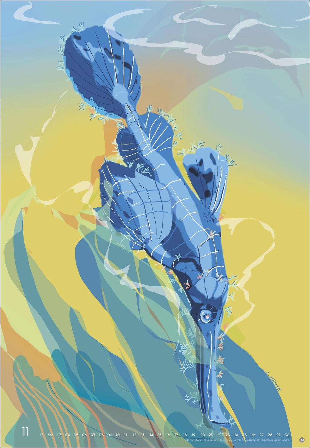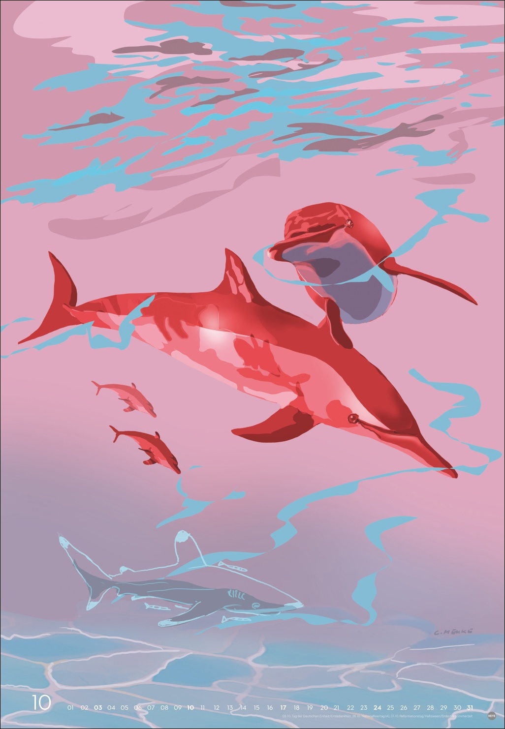• Originelle Deko für maritimes Flair: Großer Wandkalender mit poppigem Artwork der deutschen Künstlerin Chris Menke – nicht nur ein Geschenk für Tierfreunde
